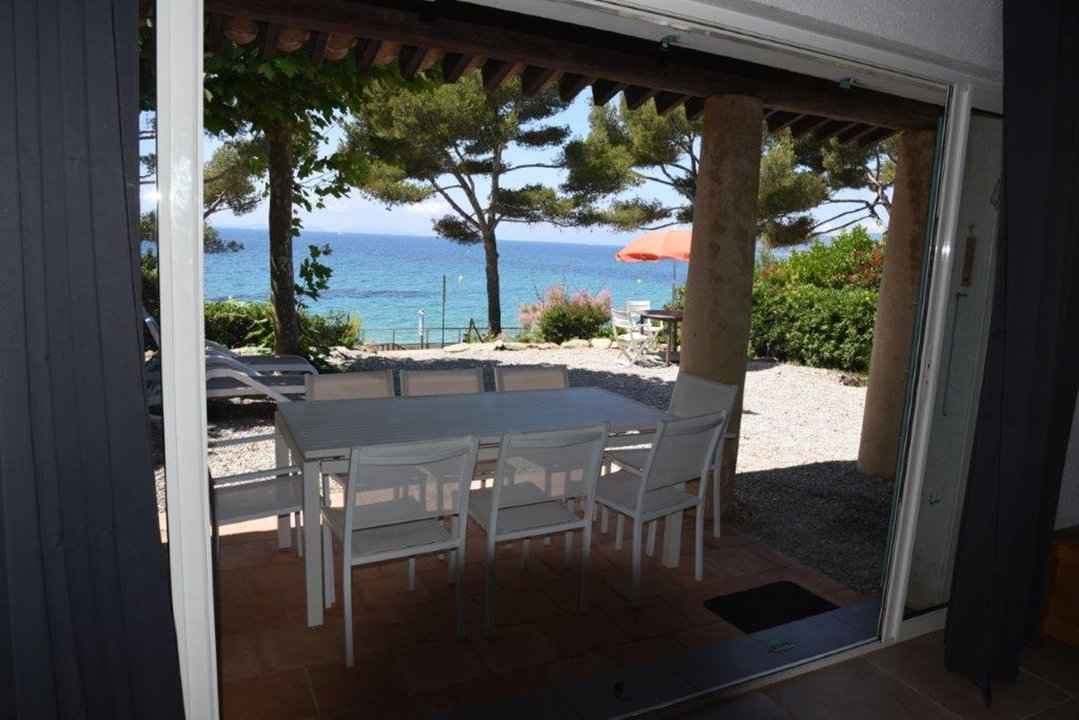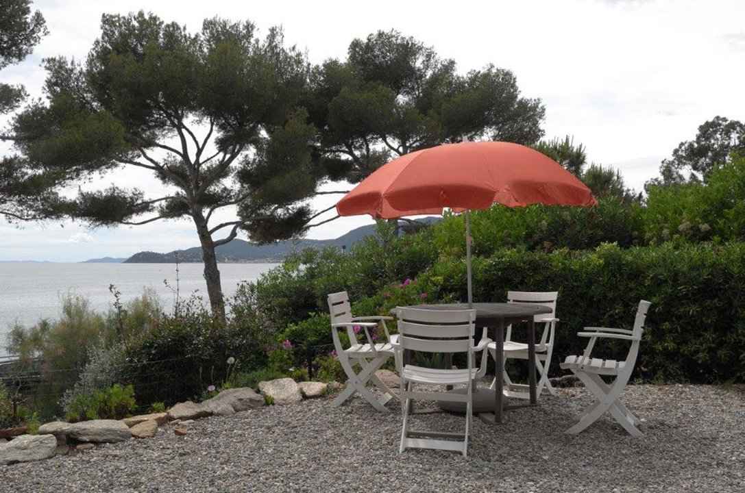 Appartement de 70 m2 en rez-de-jardin, belle vue mer, face à la plage de gigaro, avec une grande terrasse dont une partie sous auvent, et un parking couvert dans la propriété.