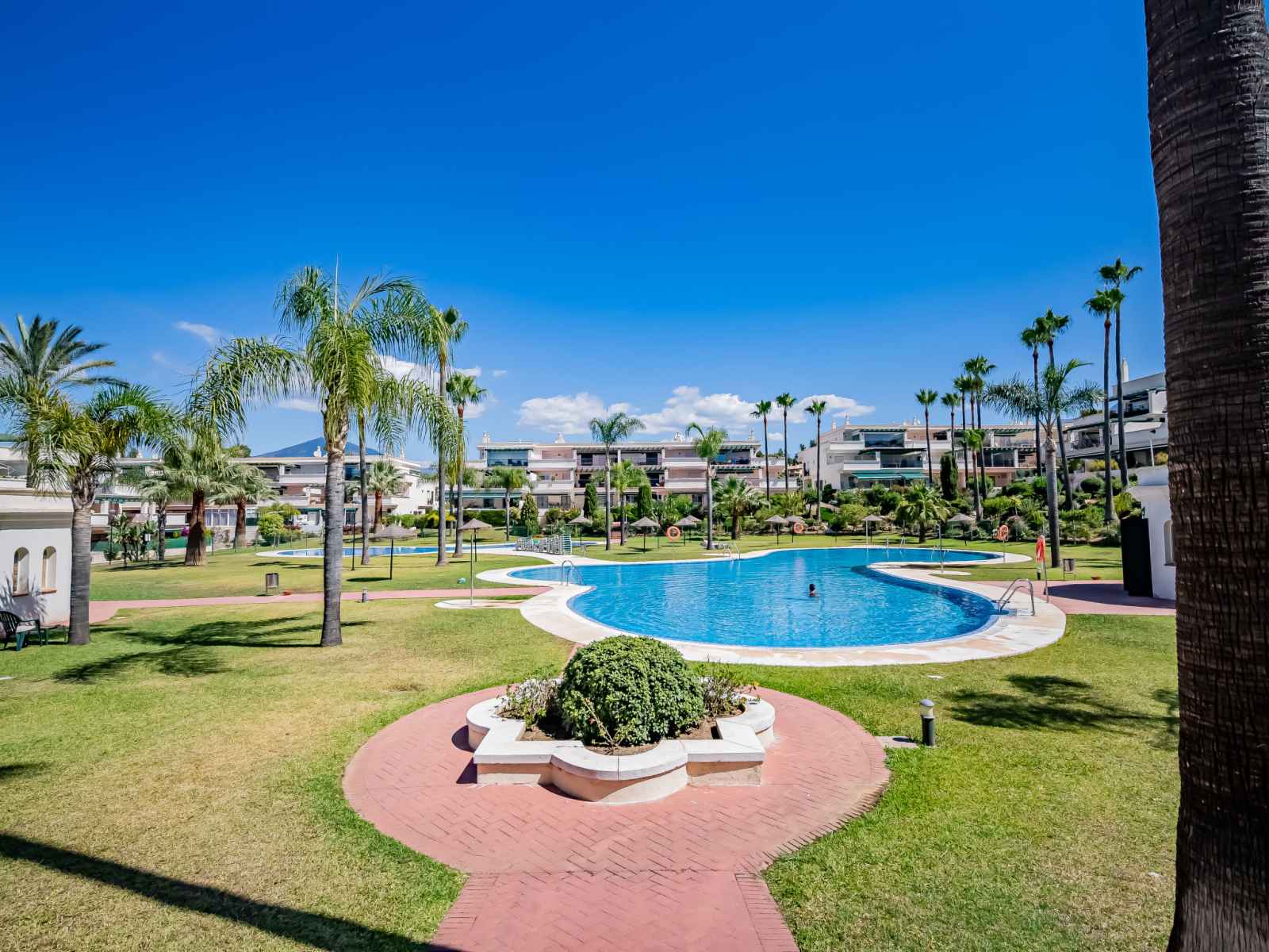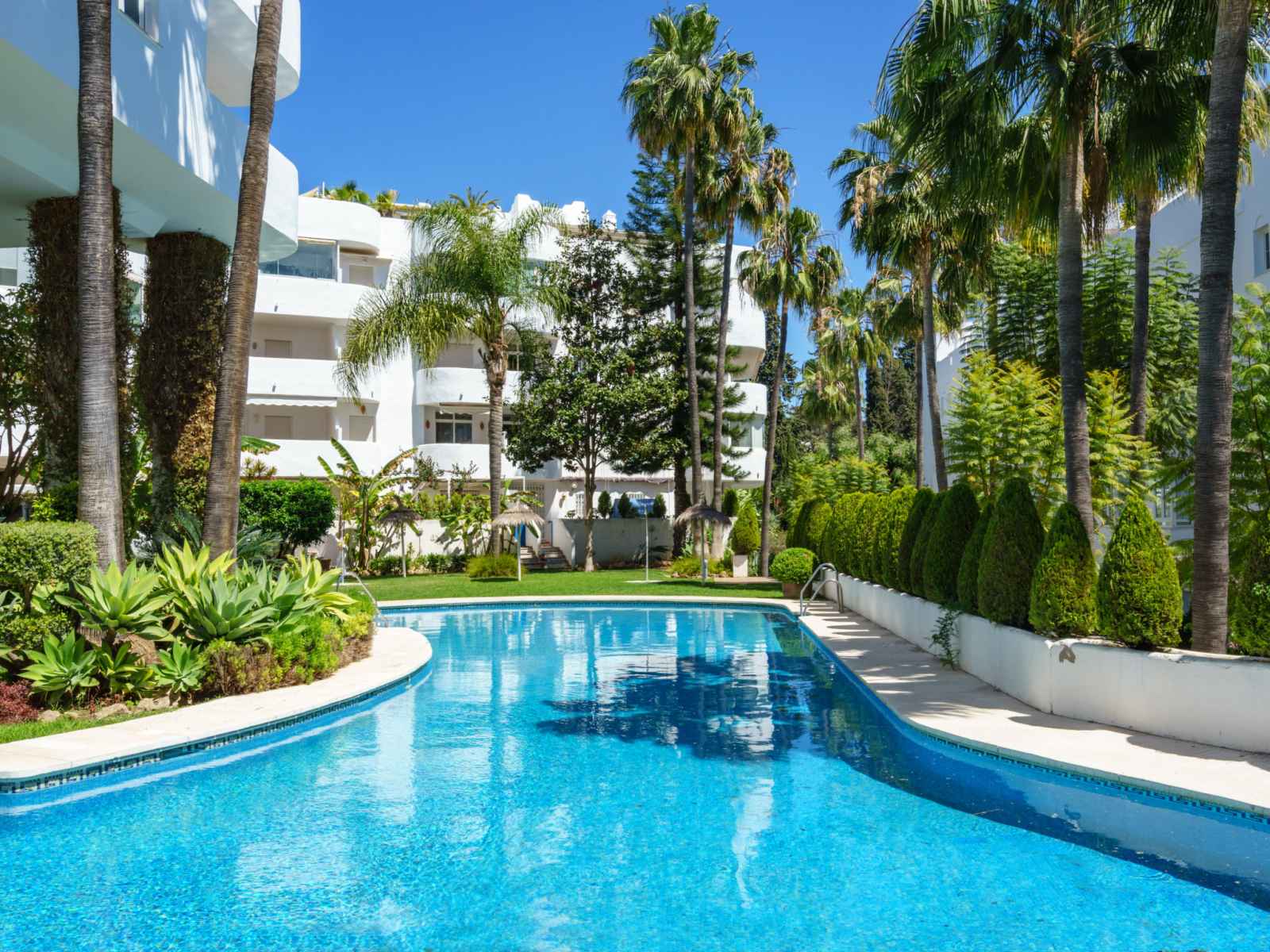 Belle petite résidence "lorcrimar". nueva andalucía, en bordure de la localité, à 1.9 km du centre de puerto banús, à 1 km de la mer, à 1 km de la plage. en commun: jardin avec pelouse, piscine (profondeur 120 - 130 cm, disponibilité saisonnière: 01.jun. - 30.sep. horaires d'ouverture de la piscine: 12:00-20:00). piscine de forme