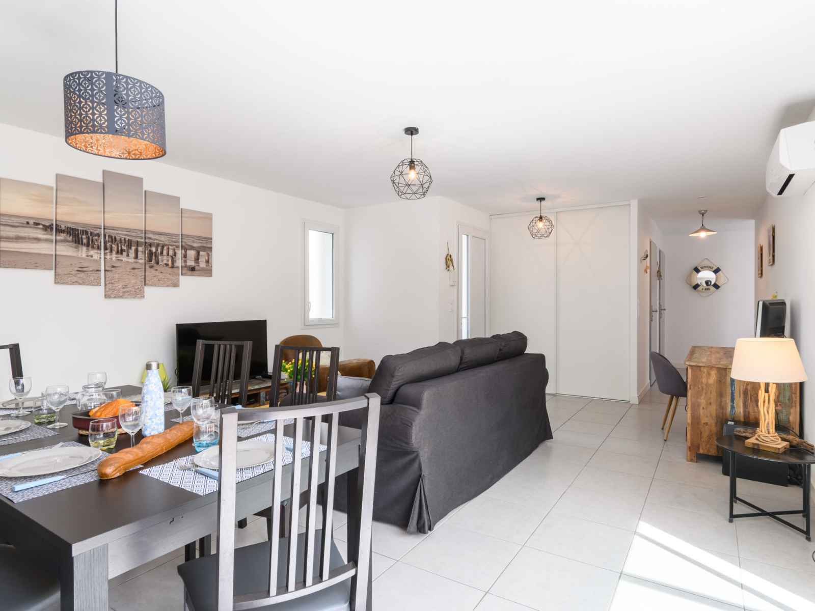 Apt 3 pièces 73 m2, au rez-de-chaussée. aménagement fonctionnel et moderne: séjour/salle à manger avec baie vitrée avec 1 divan-lit (160 cm, longueur 200 cm), tv (écran plat), air-conditionné et chauffage à air chaud. sortie sur la terrasse. 1 chambre avec 1 lit double (140 cm, longueur 190 cm). sortie sur la terrasse. 1 chambre avec 2