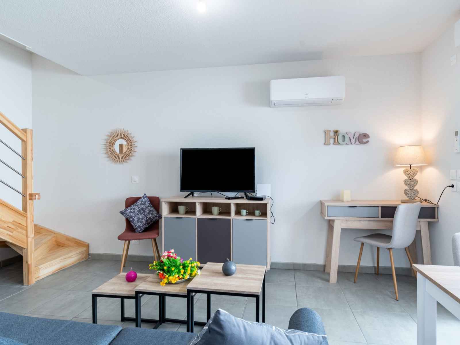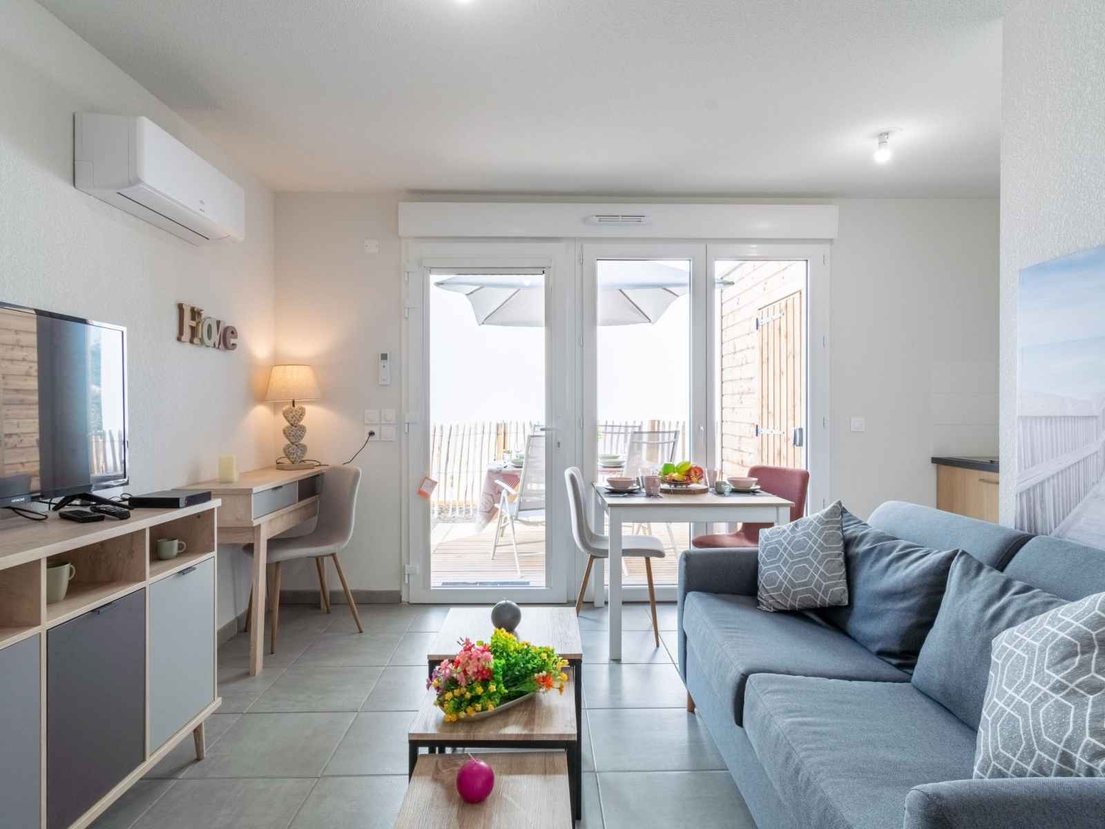 "sc h01", appartement sur 2 niveaux 3 pièces 41 m2. aménagement confortable et moderne: séjour avec tv (écran plat). sortie sur la terrasse. cuisine/séjour (four, lave-vaisselle, 1 plaques à induction, 2 feux, grille-pain, bouilloire électrique, micro-ondes, cafetière électrique, capsules pour machine à café (dolce gusto) (non