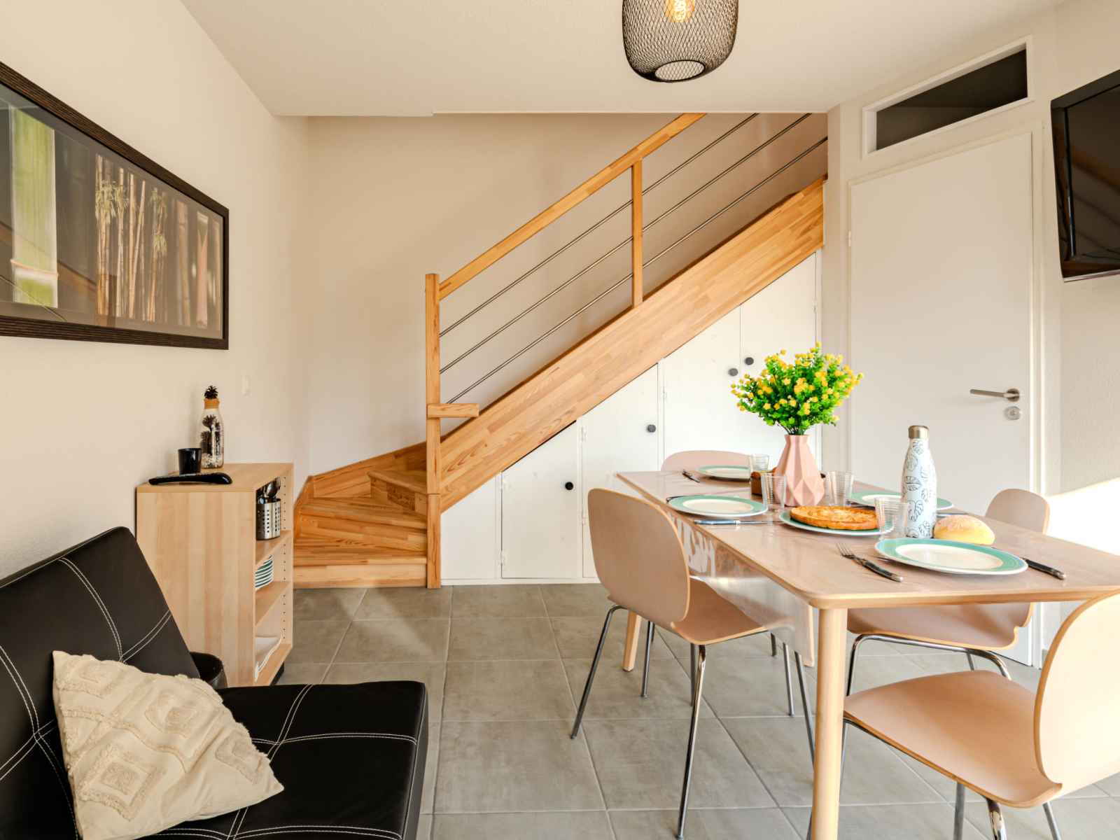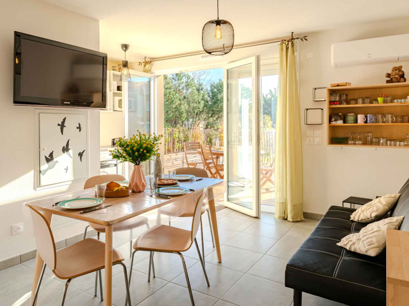 "soleil couchant i04", appartement sur 2 niveaux 3 pièces 41 m2, au rez-de-chaussée. aménagement confortable et moderne: séjour avec tv (écran plat), air-conditionné. cuisine/séjour (four, lave-vaisselle, 1 plaque vitrocéramiques, 2 feux, micro-ondes, cafetière électrique, capsules pour machine à café (filtre et dolce gust) (non