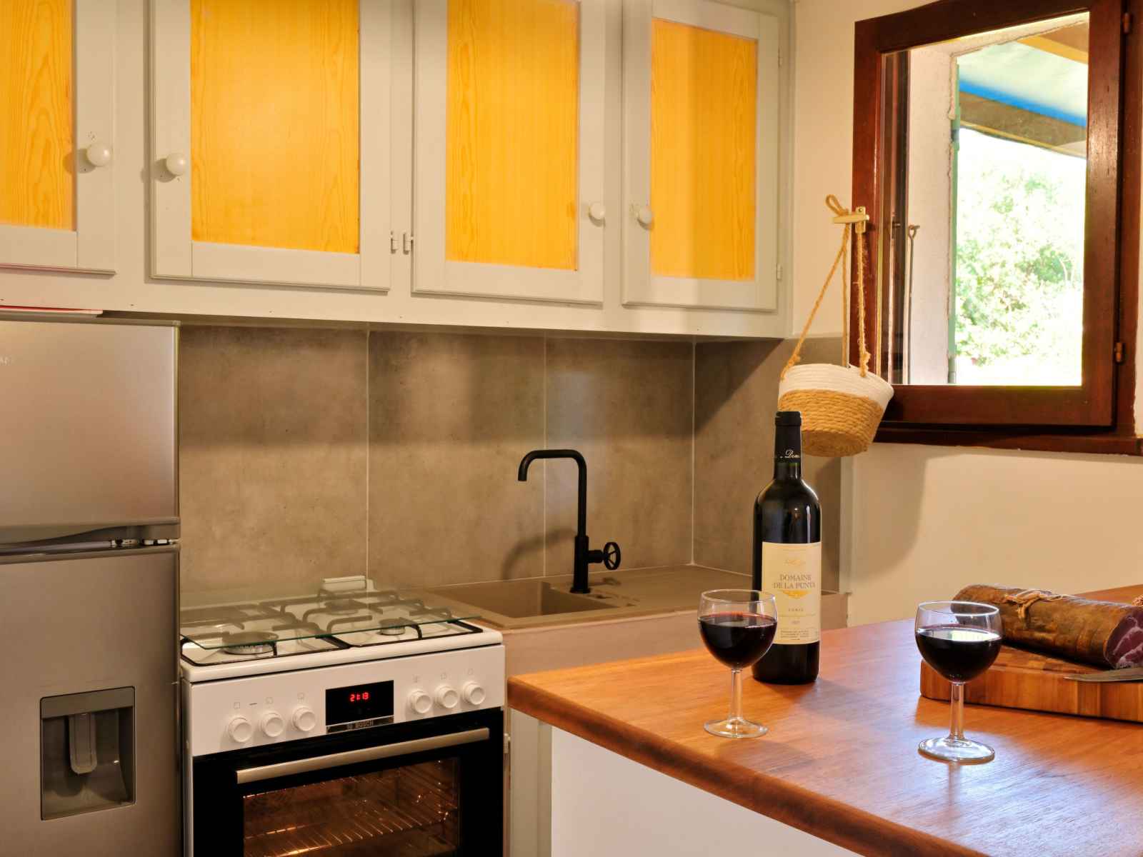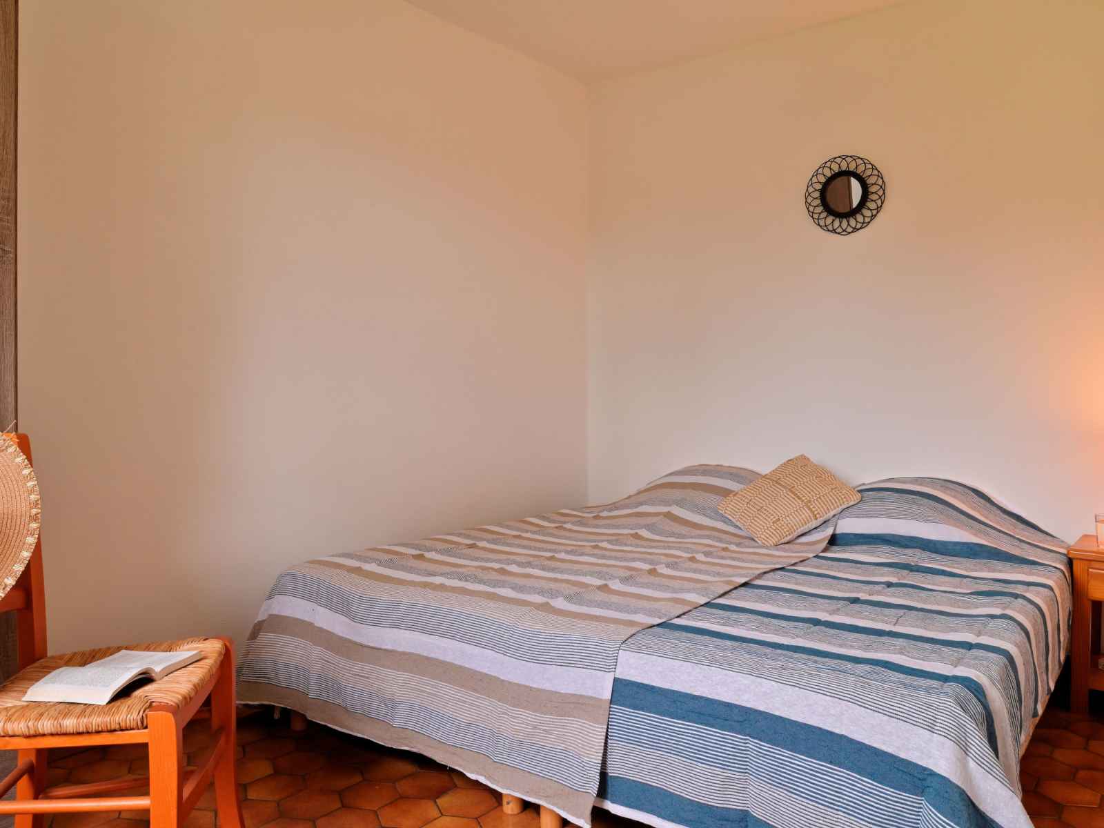 "mini villa 4/6 personnes", maison 3 pièces 50 m2. aménagement fonctionnel et confortable: séjour/salle à manger avec 1 divan-lit double (140 cm, longueur 190 cm), air-conditionné. sortie sur la terrasse. 1 chambre avec 2 lits (90 cm, longueur 190 cm). 1 chambre avec 1 grand-lit (160 cm, longueur 190 cm). coin cuisine (four, 4 feux,