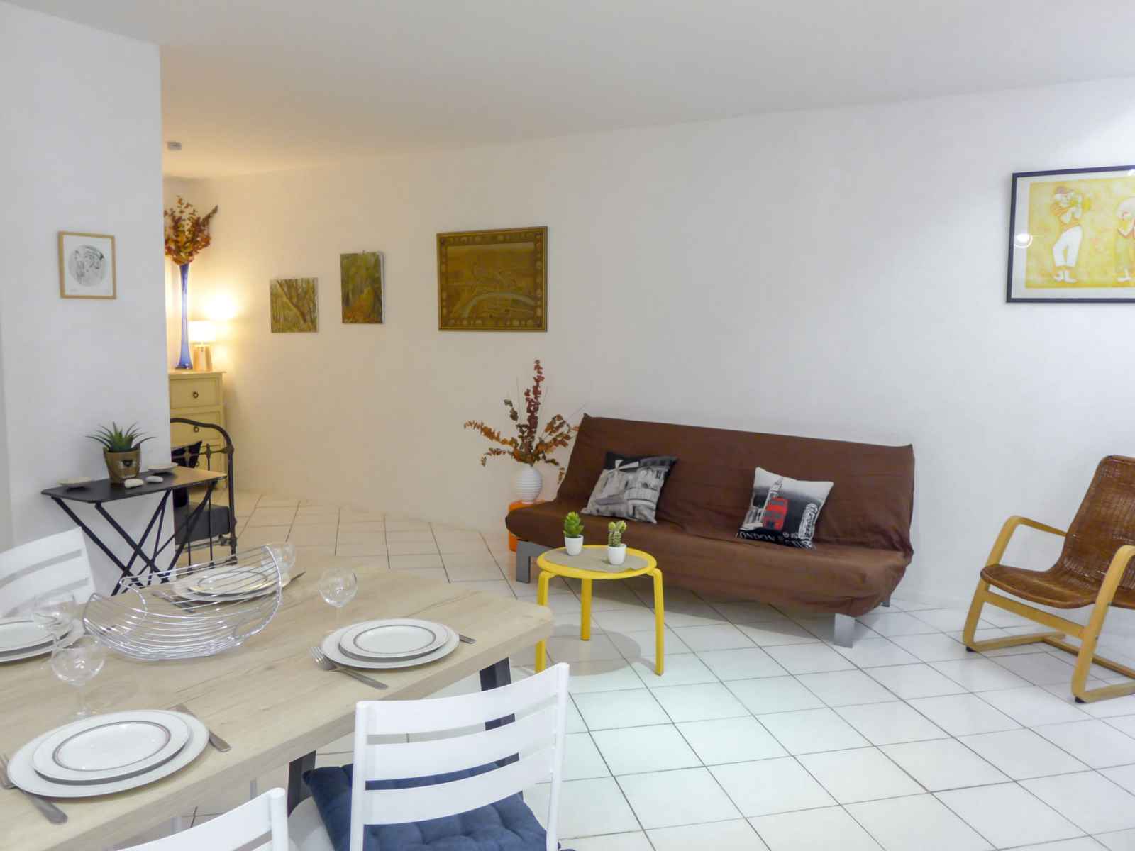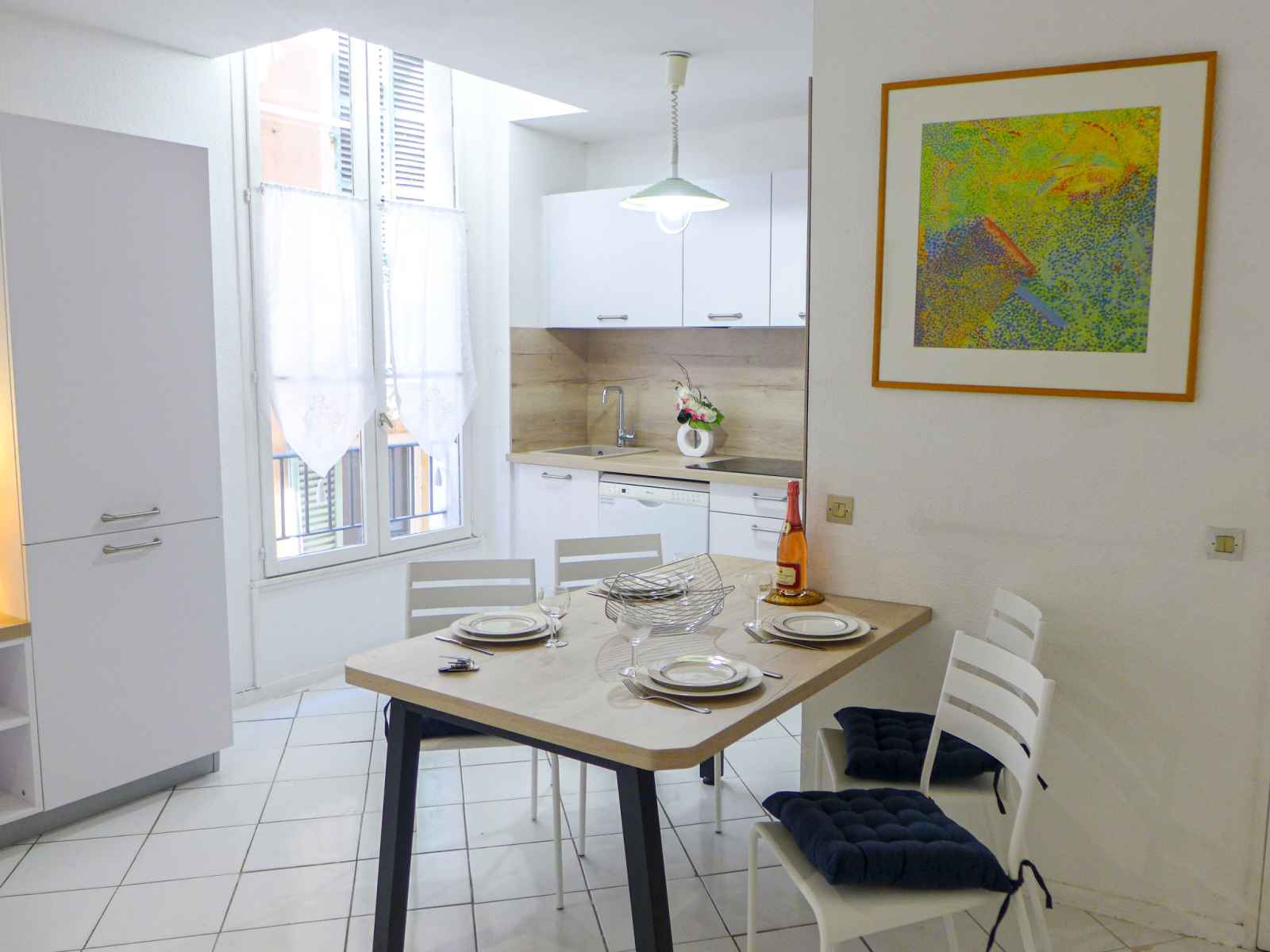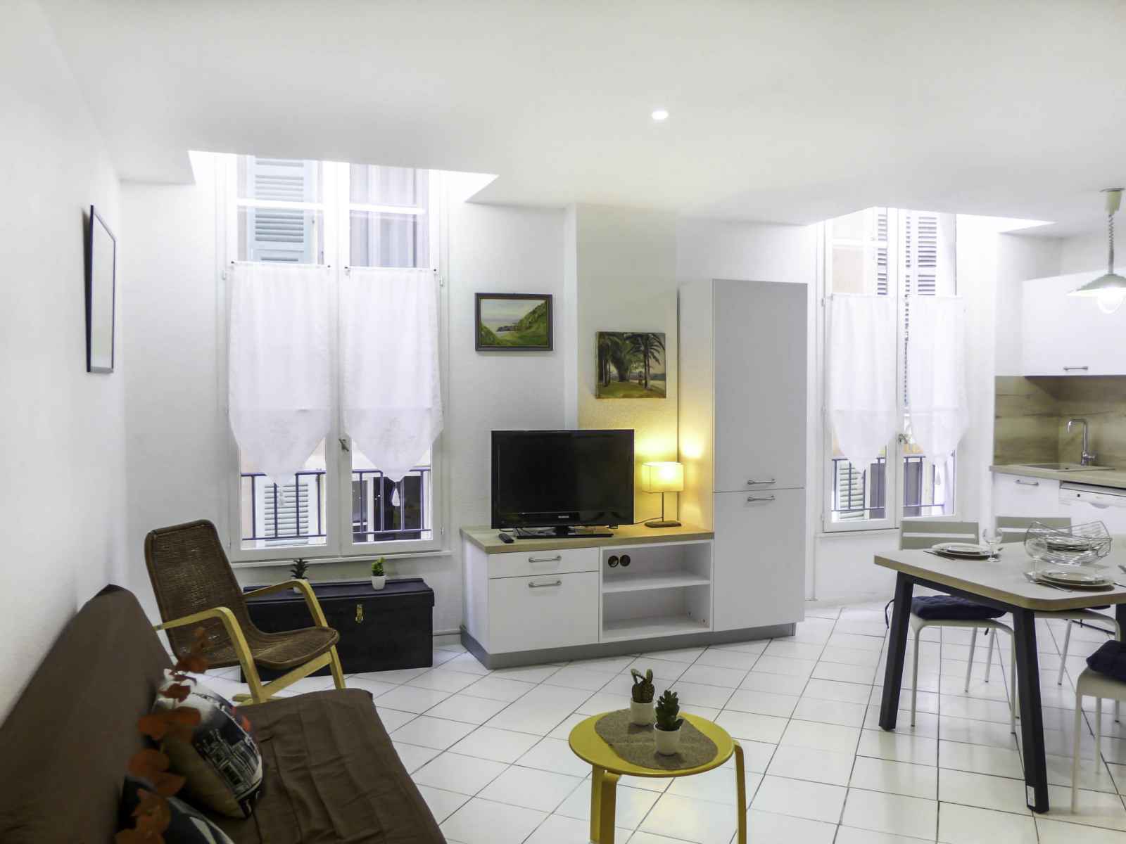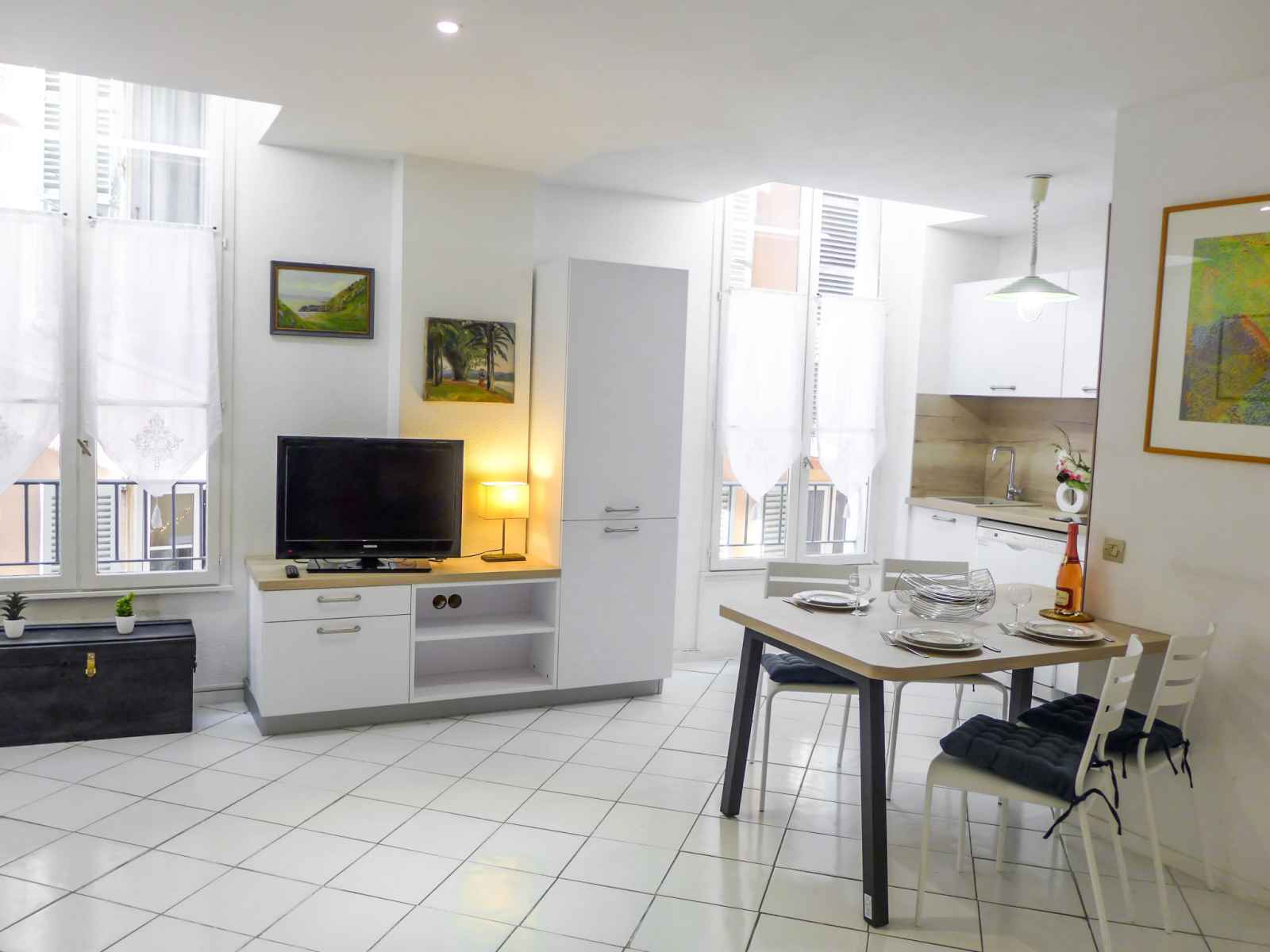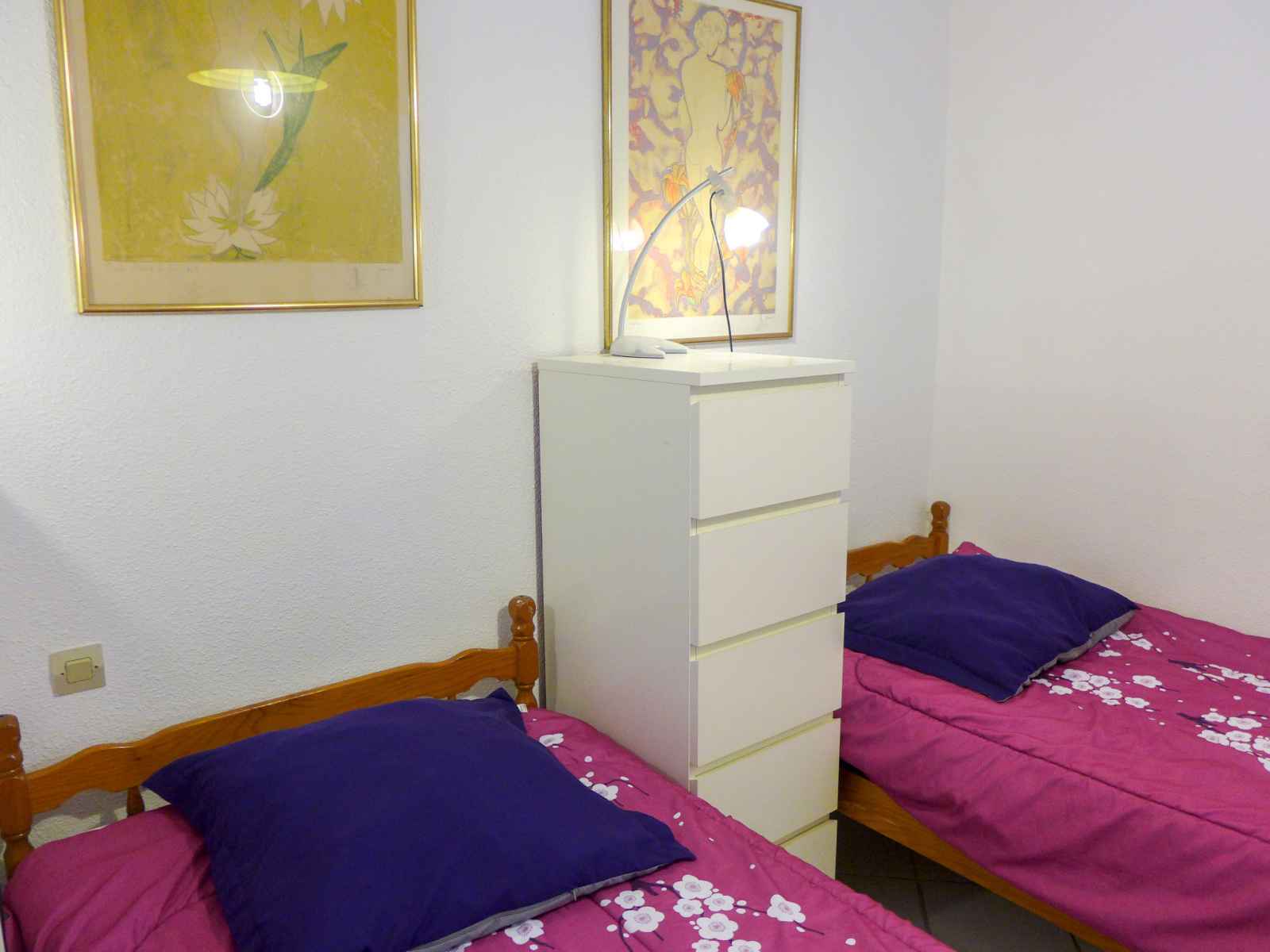 Apt 3 pièces 58 m2 au 2ème étage. rénové en 2022: séjour/salle à manger avec écran plat. 1 chambre avec 1 grand-lit (1 x 140 cm, longueur 190 cm). 1 chambre avec 2 lits (90 cm, longueur 190 cm). cuisine ouverte (4 plaques de cuisson, four, lave-vaisselle, grille-pain, bouilloire électrique, micro-ondes, cafetière électrique). douche, wc