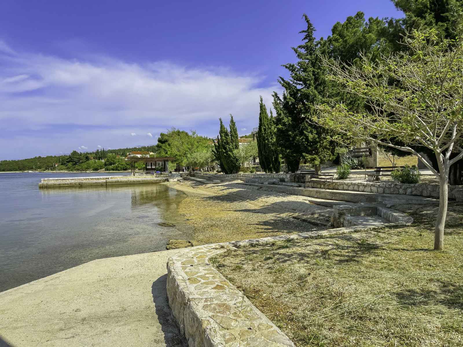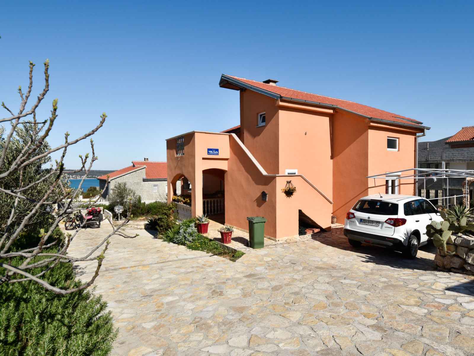 Gornji karin à 13 km de novigrad: maison à 2 apts "karla". À 1.2 km du centre de gornji karin, situation ensoleillée, surélevée, à 1 km de la mer, à 1 km de la plage. en commun: terrain 300 m2 (clôturé). barbecue. infrastructures de la maison: accès internet. place de parking près de la maison sur le terrain. magasins 1 km, restaurant