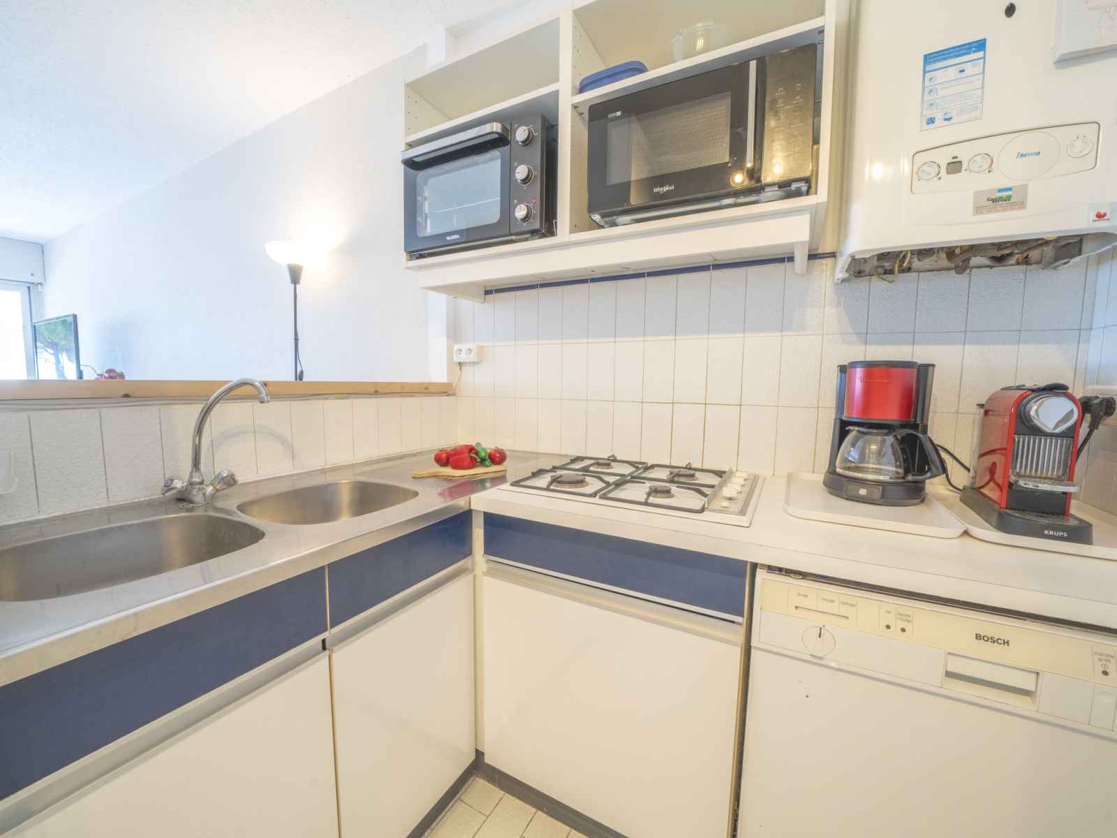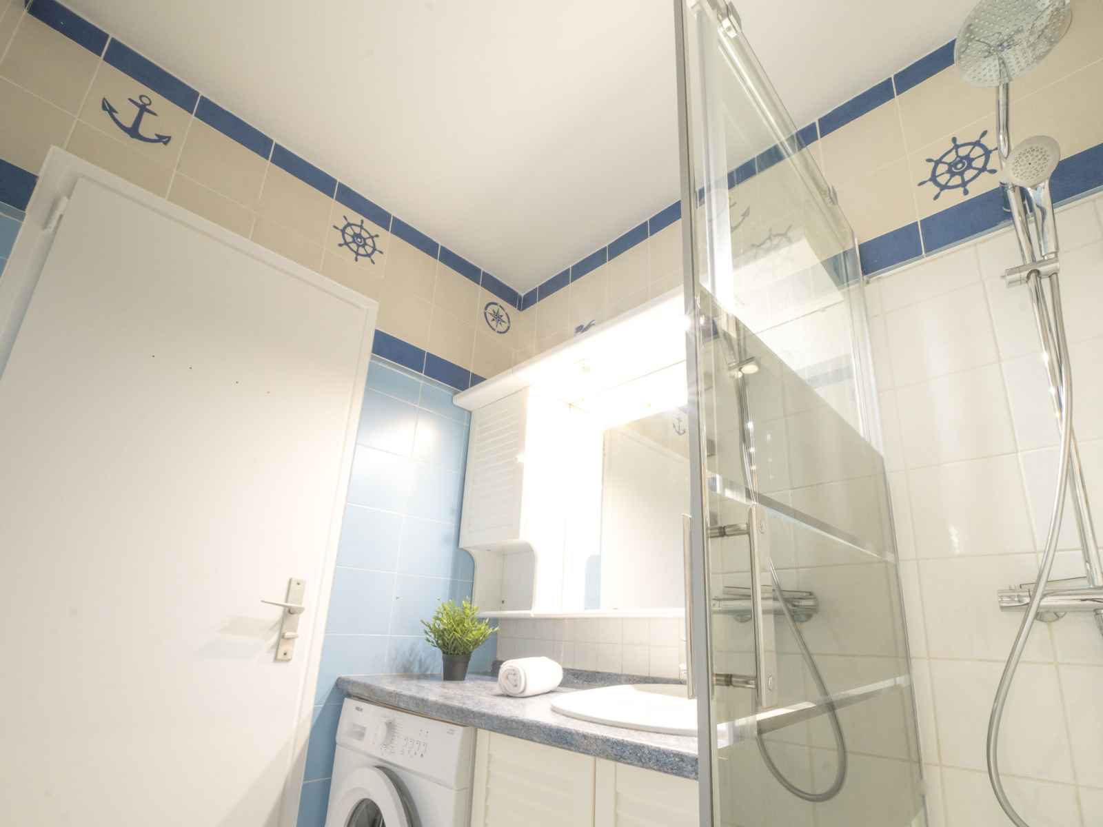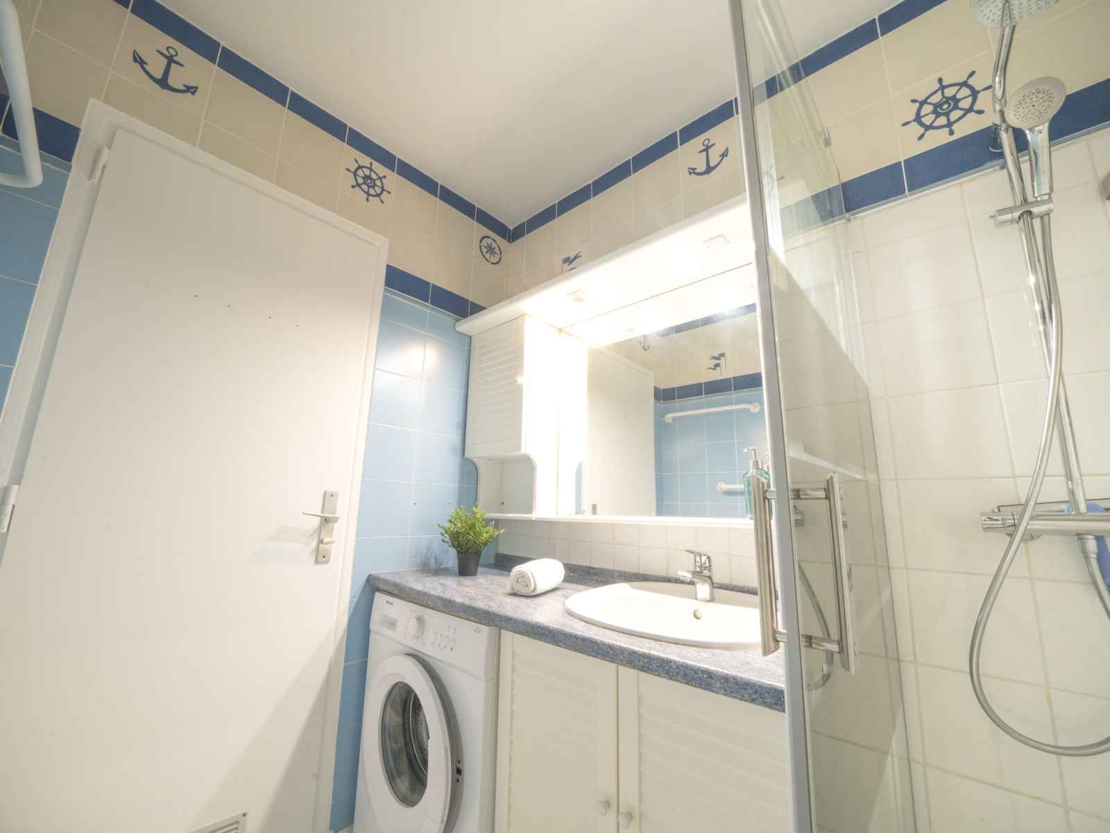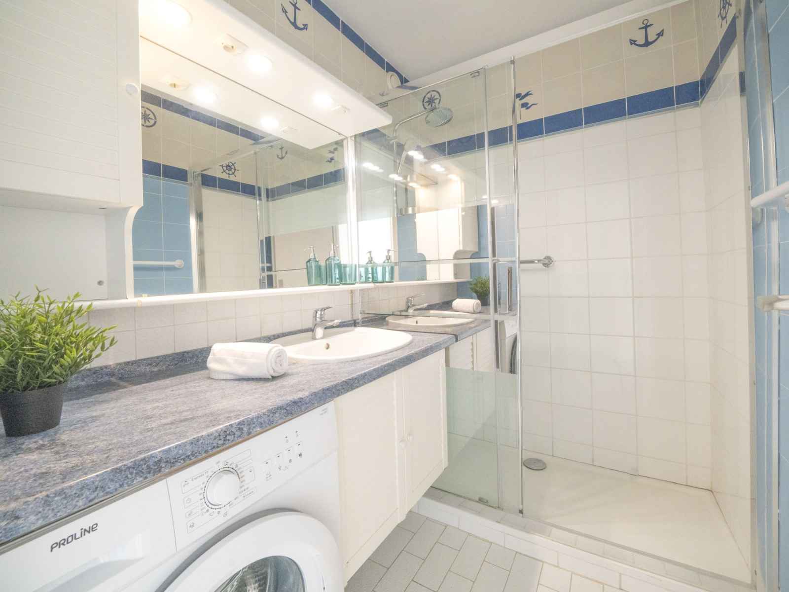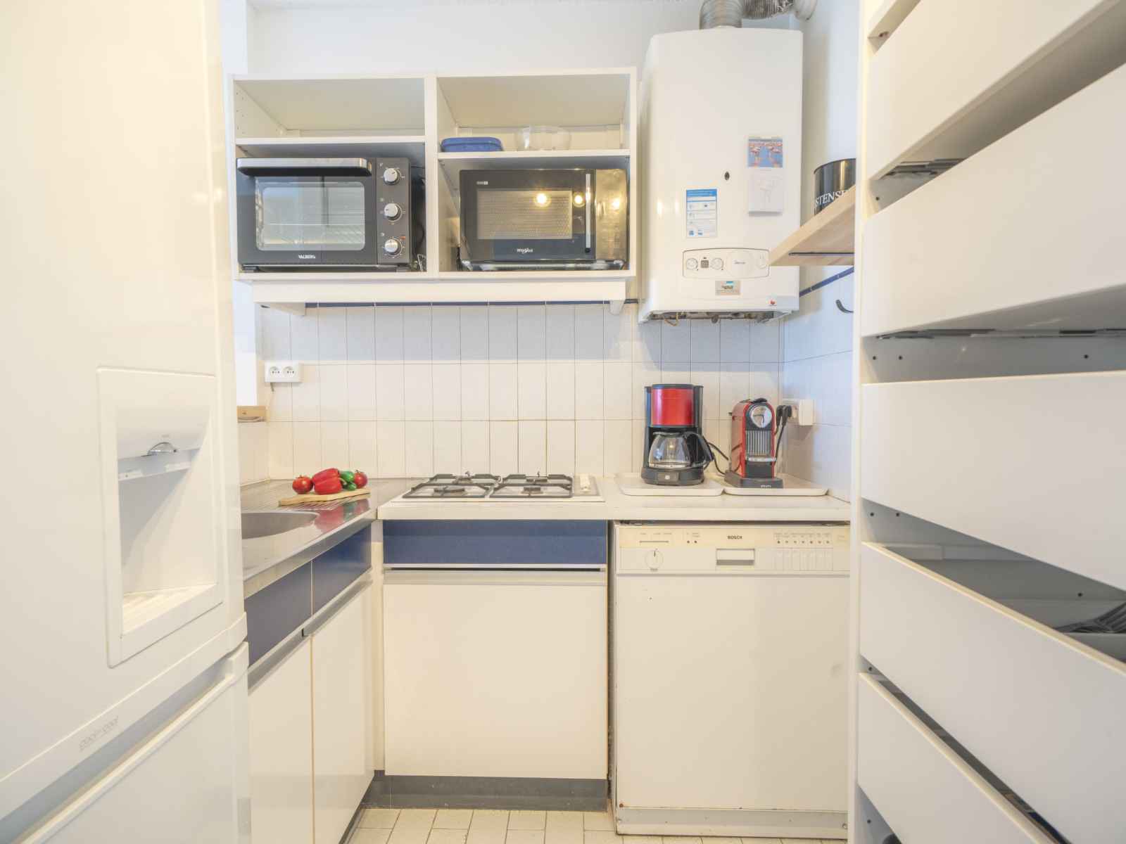 (mini-four, lave-vaisselle, 4 feux, grille-pain, bouilloire électrique, micro-ondes, congélateur, cafetière électrique). Douche, WC séparé. Chauffage électrique, chauffage au gaz, air-conditionné. 2 petits balcons 6 m2, situation sud-est, terrasse 12 m2, situation nord-ouest. Mobilier de balcon, barbecue électrique. Belle vue sur la mer. A disposition: lave-linge. Internet (Connexion WIFI, gratuit). Place de parking No 111. Veuillez noter: logement non-fumeur. Détecteur de fumée, sans ascenseur. Annonce d'un particulier (art 155, IV du CGI). 30133001037TL