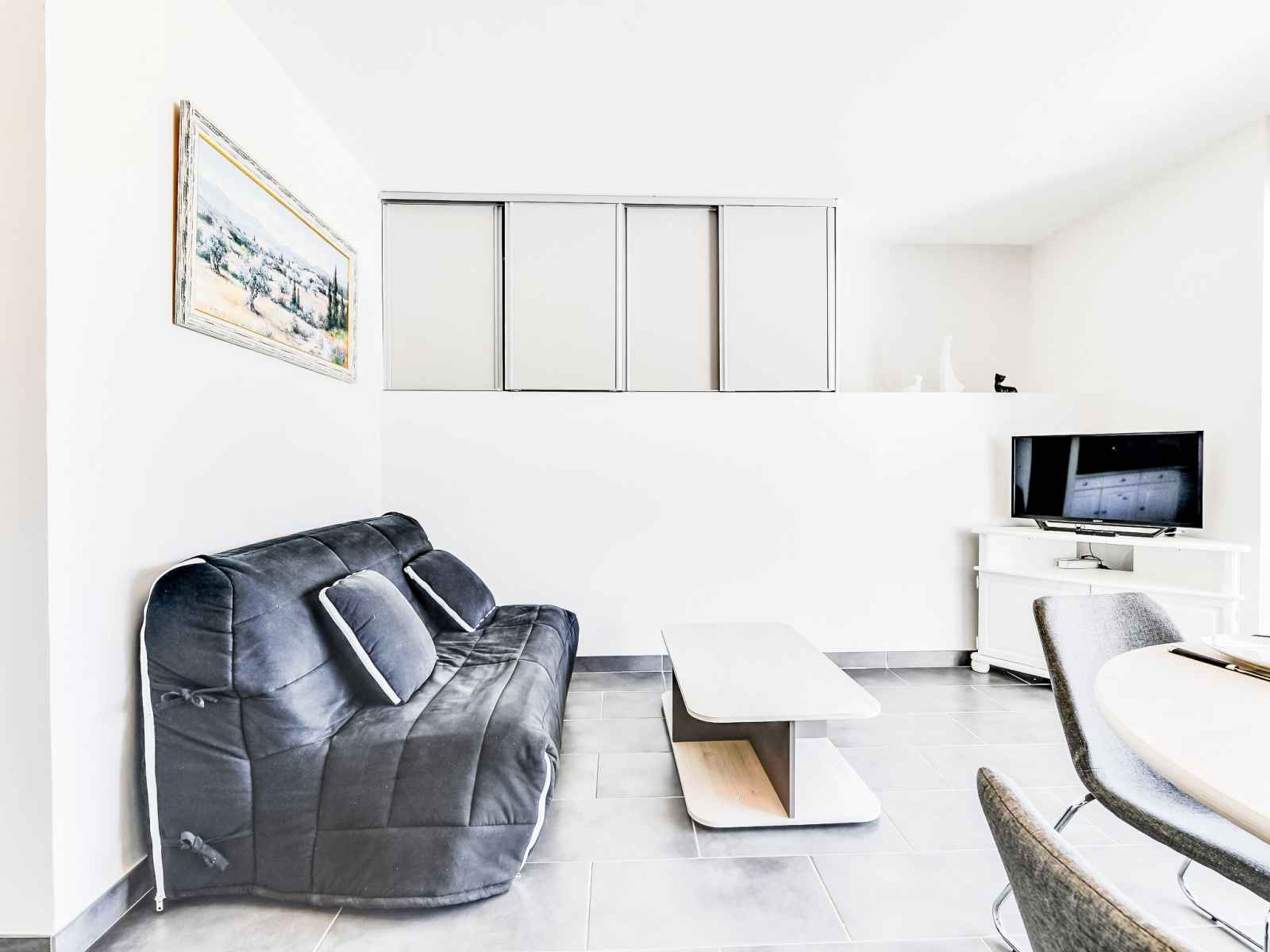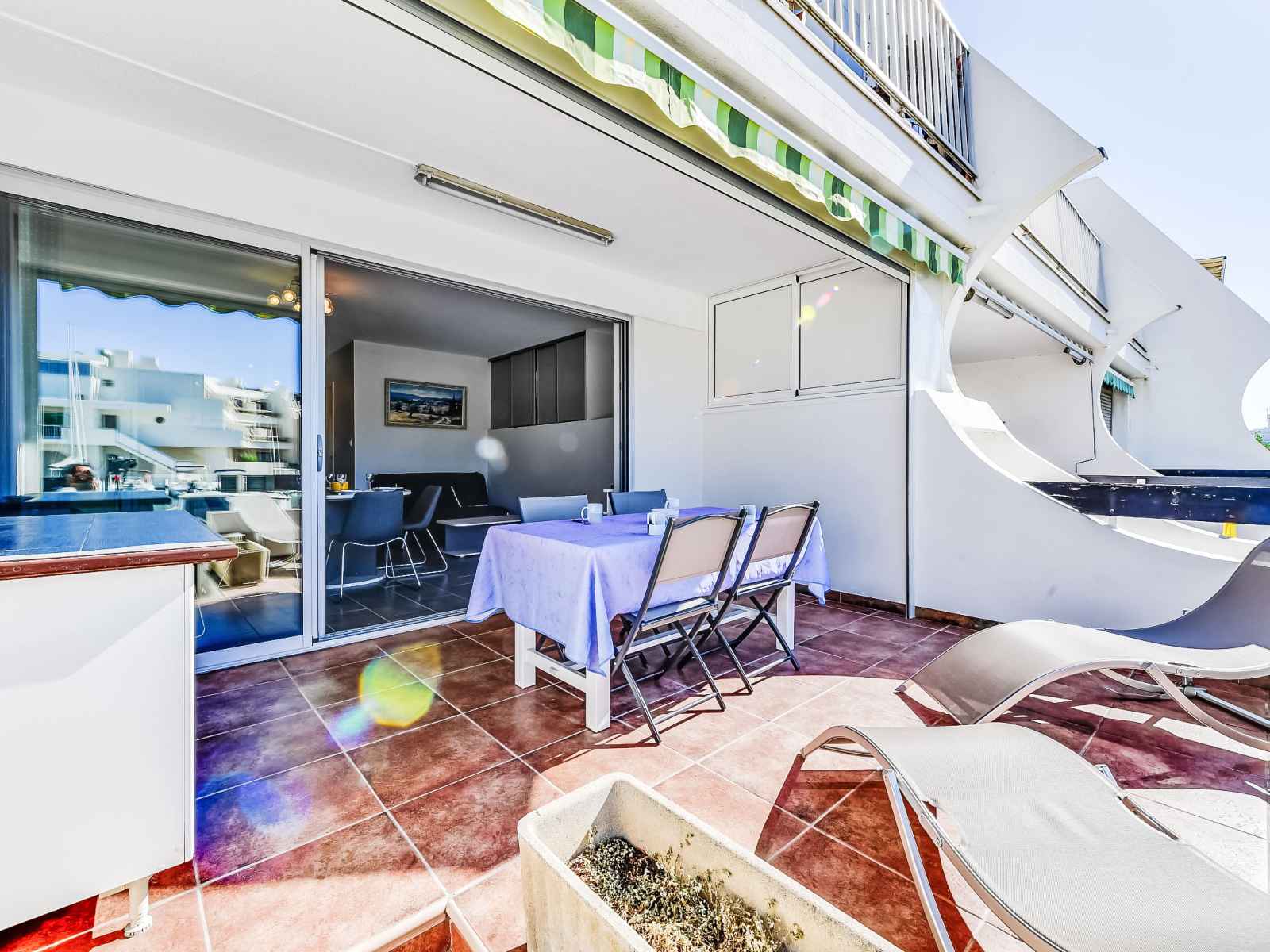 séparé. Chauffage. Terrasse 16 m2, situation sud. Meubles de terrasse, barbecue électrique. Vue sur le port. A disposition: lave-linge. Place de parking. Veuillez noter: détecteur de fumée. Annonce d'un particulier (art 155, IV du CGI). 3013300129276