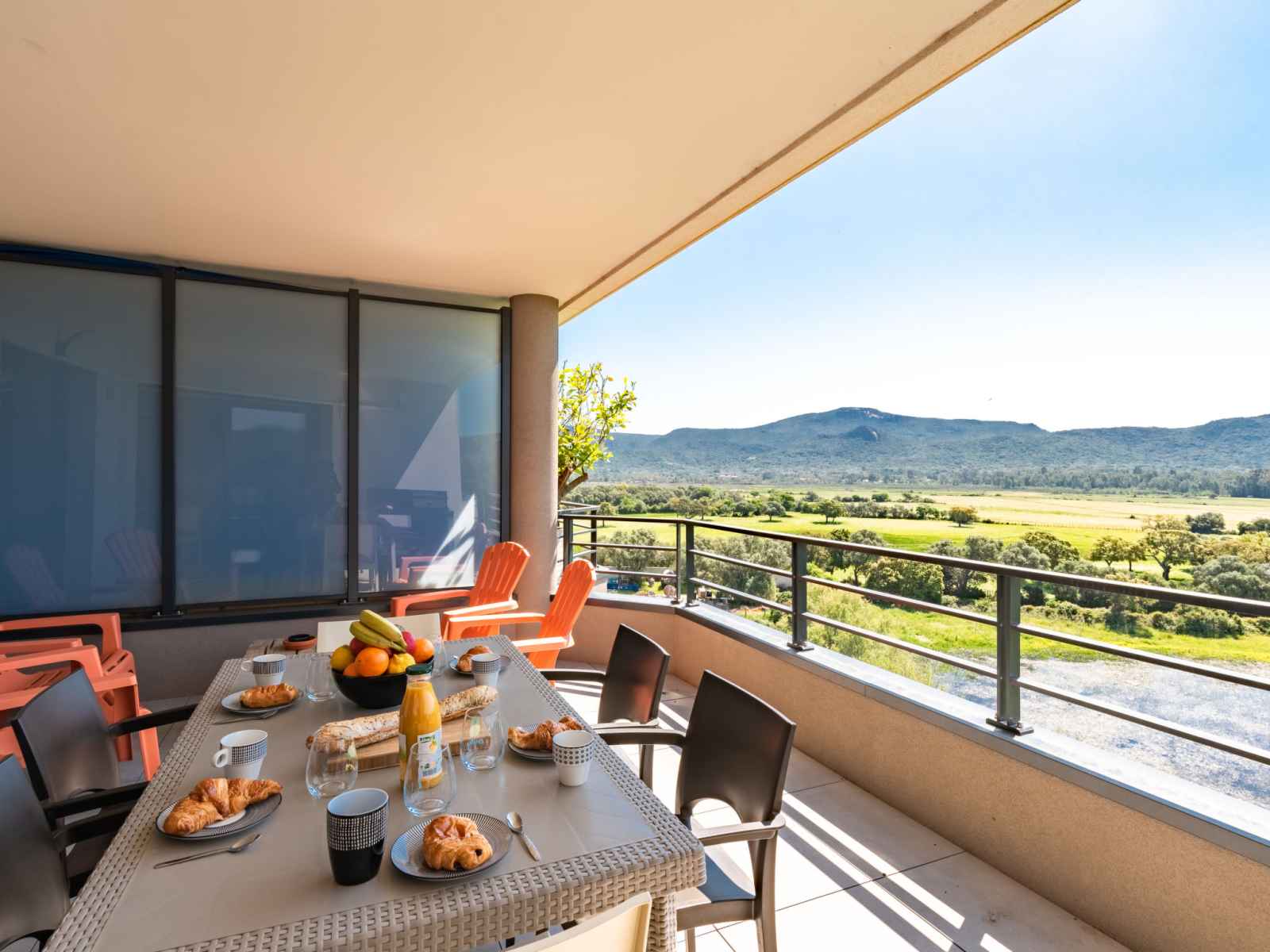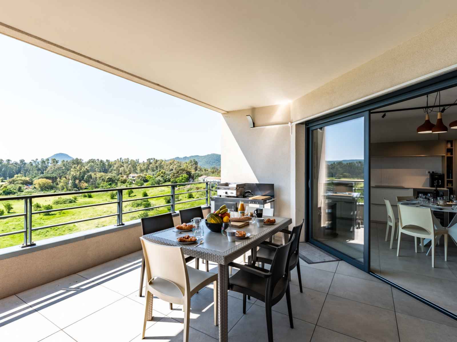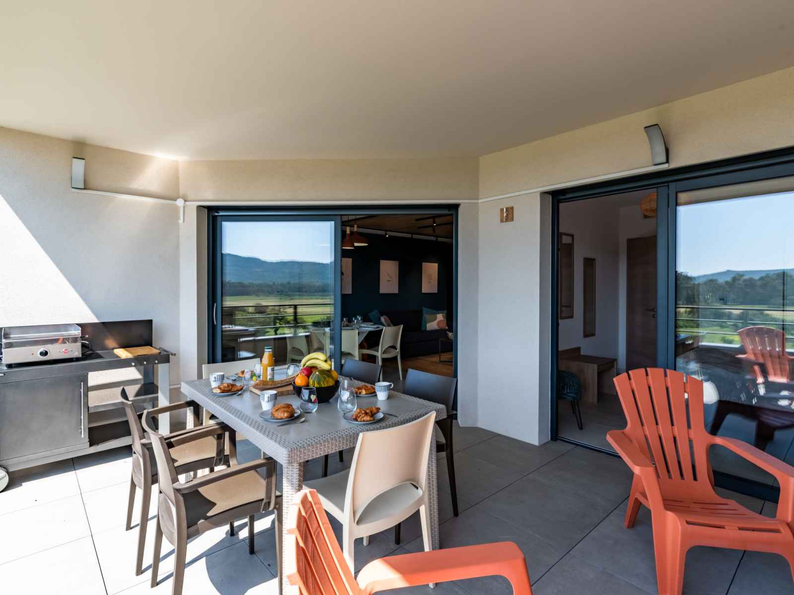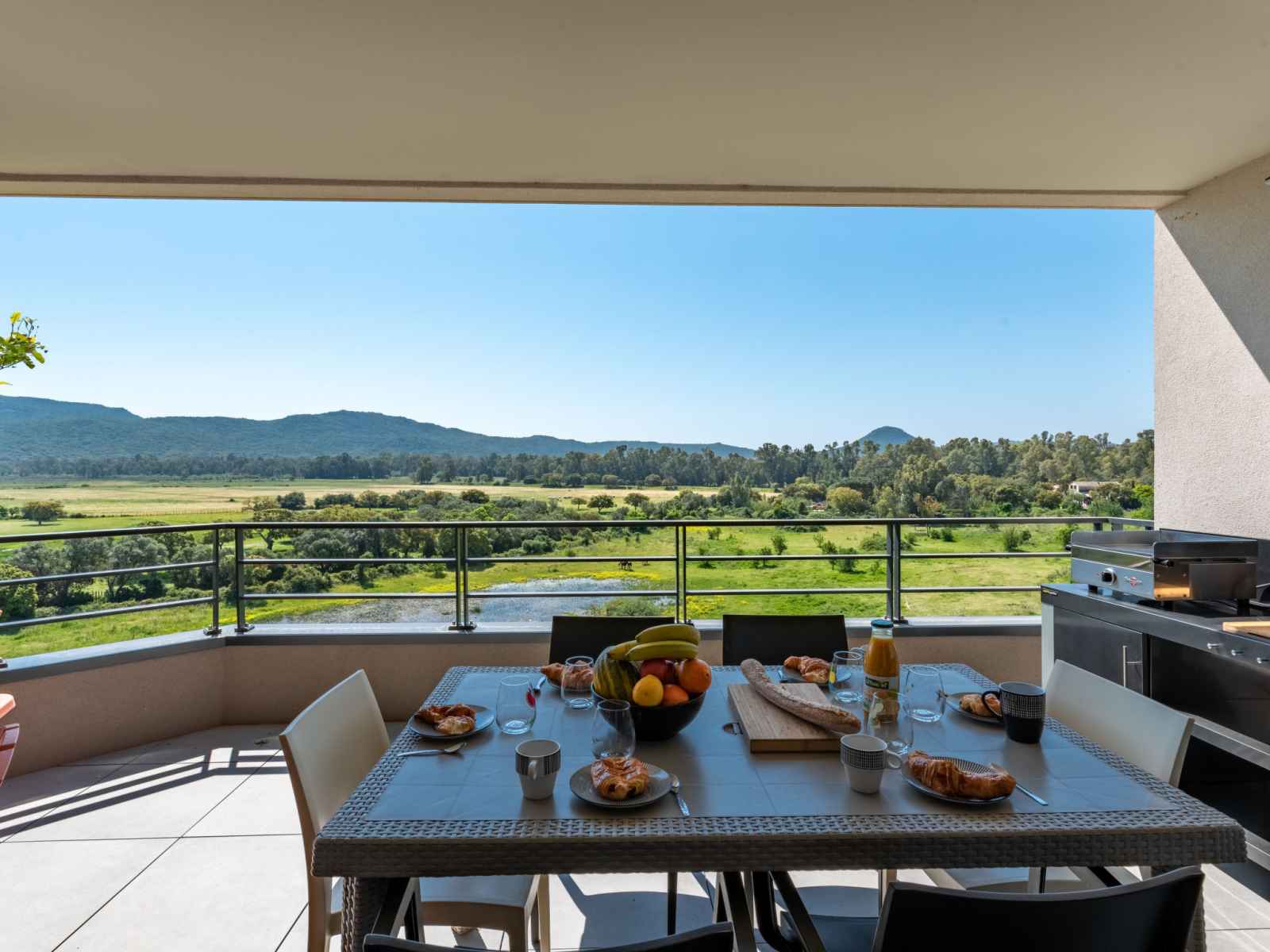 lave-vaisselle, 4 plaques à induction, grille-pain, bouilloire électrique, micro-ondes, congélateur, cafetière électrique). Douche/WC. Chauffage électrique, air-conditionné. Terrasse 25 m2. Meubles de terrasse. Belle vue sur les montagnes. A disposition: lave-linge, sèche-linge. Internet (Connexion WIFI, gratuit). Place de parking. Veuillez noter: adapté(e) aux familles. Logement non-fumeur. Détecteur de fumée. Plancha. Cave à vin. 2A247000320EC