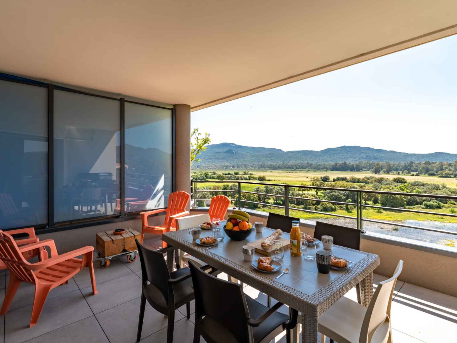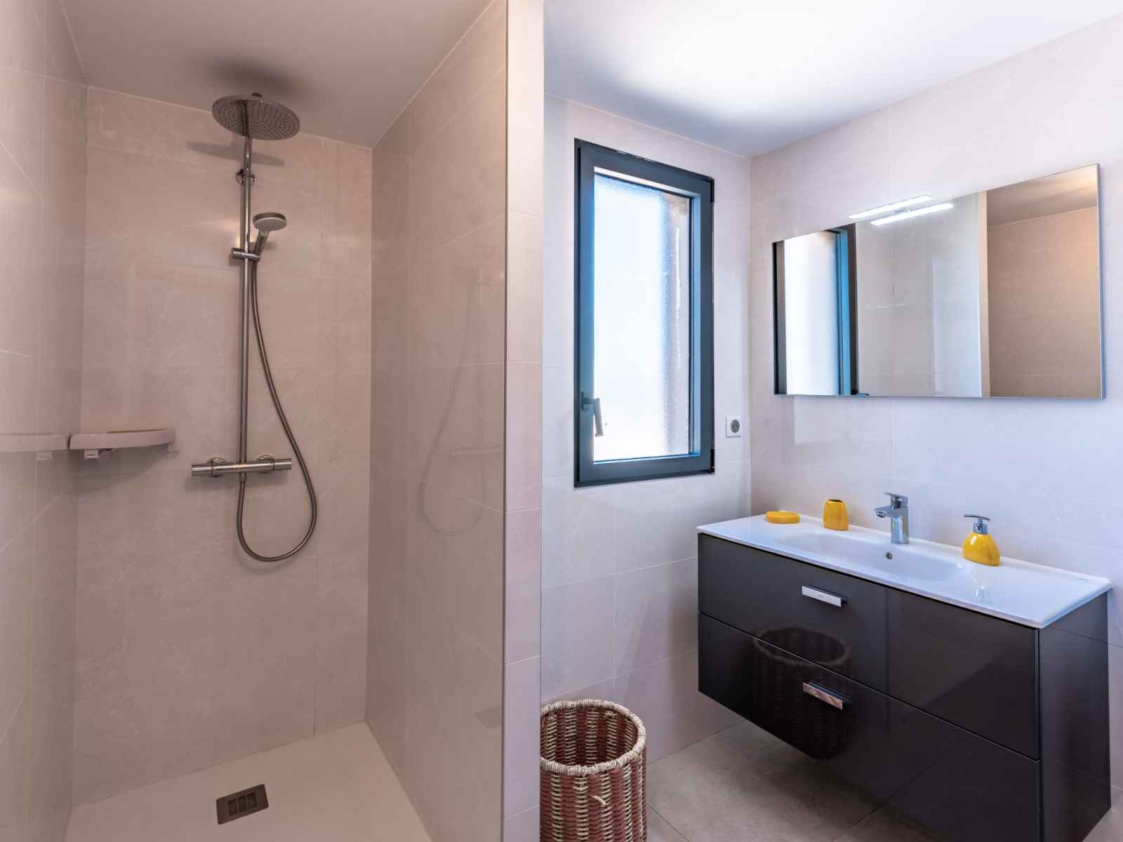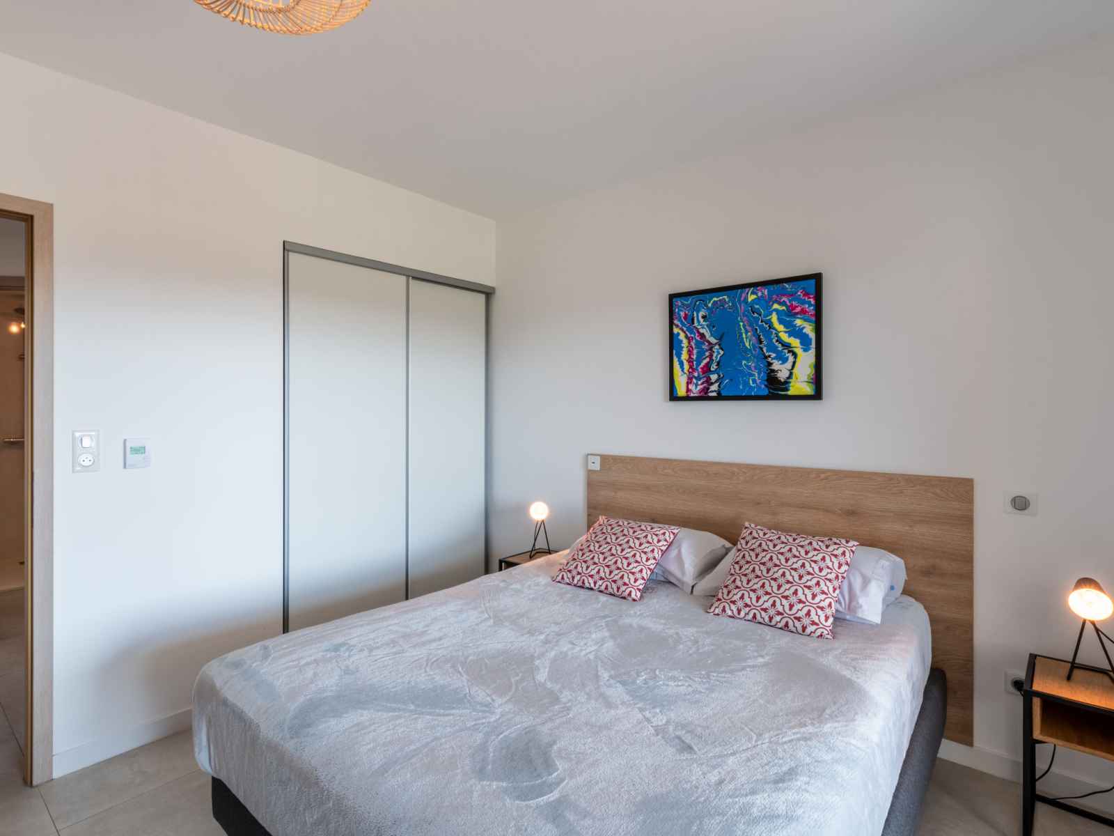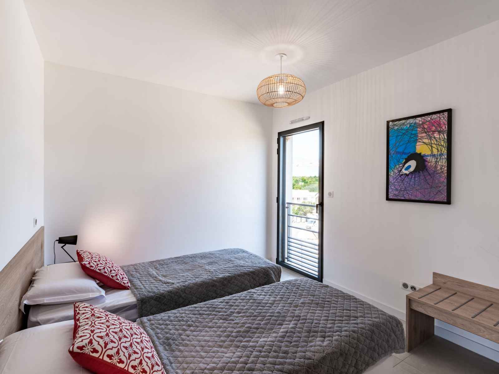 lave-vaisselle, 4 plaques à induction, grille-pain, bouilloire électrique, micro-ondes, congélateur, cafetière électrique). Douche/WC. Chauffage électrique, air-conditionné. Terrasse 25 m2. Meubles de terrasse. Belle vue sur les montagnes. A disposition: lave-linge, sèche-linge. Internet (Connexion WIFI, gratuit). Place de parking. Veuillez noter: adapté(e) aux familles. Logement non-fumeur. Détecteur de fumée. Plancha. Cave à vin. 2A247000320EC