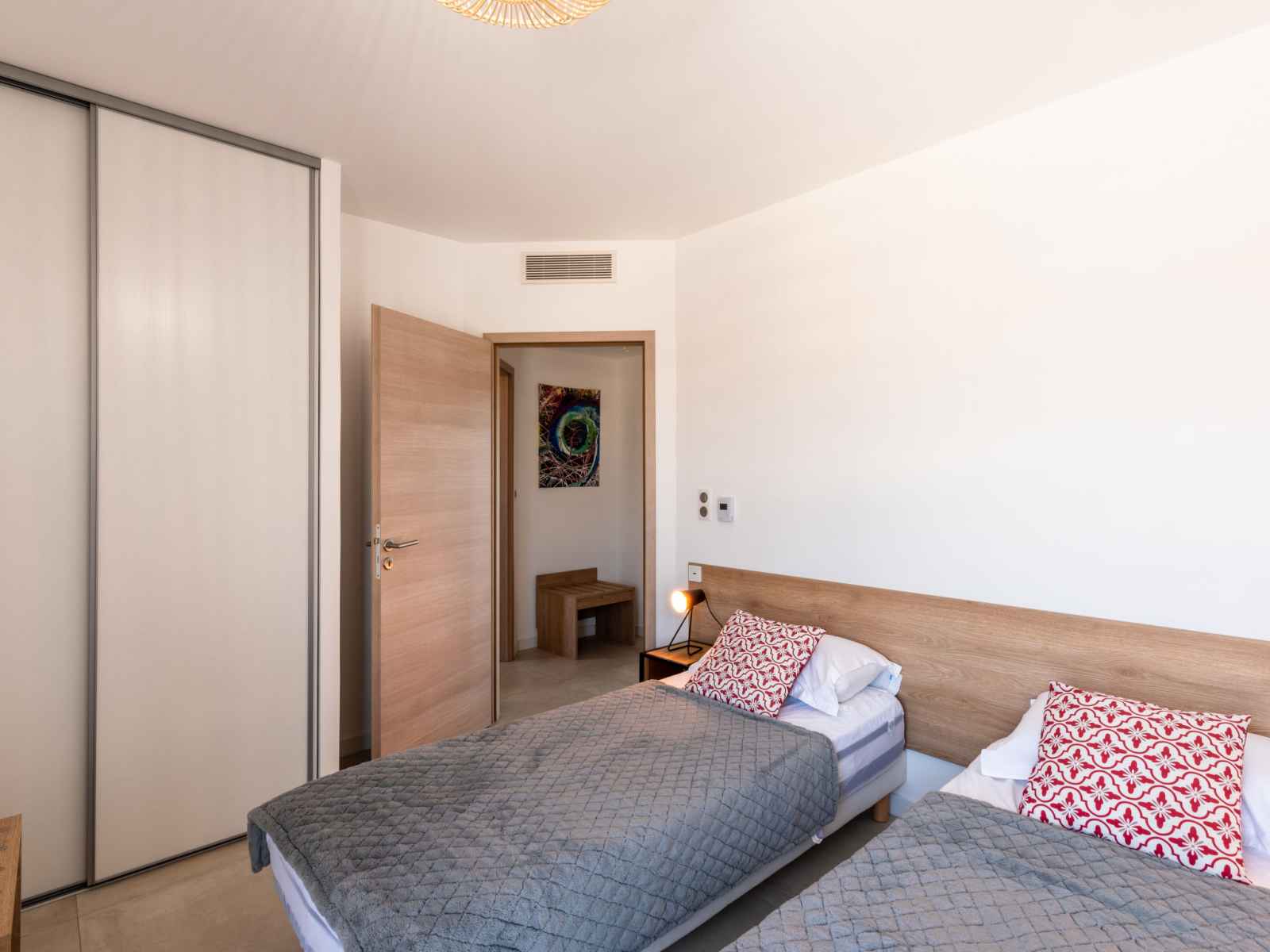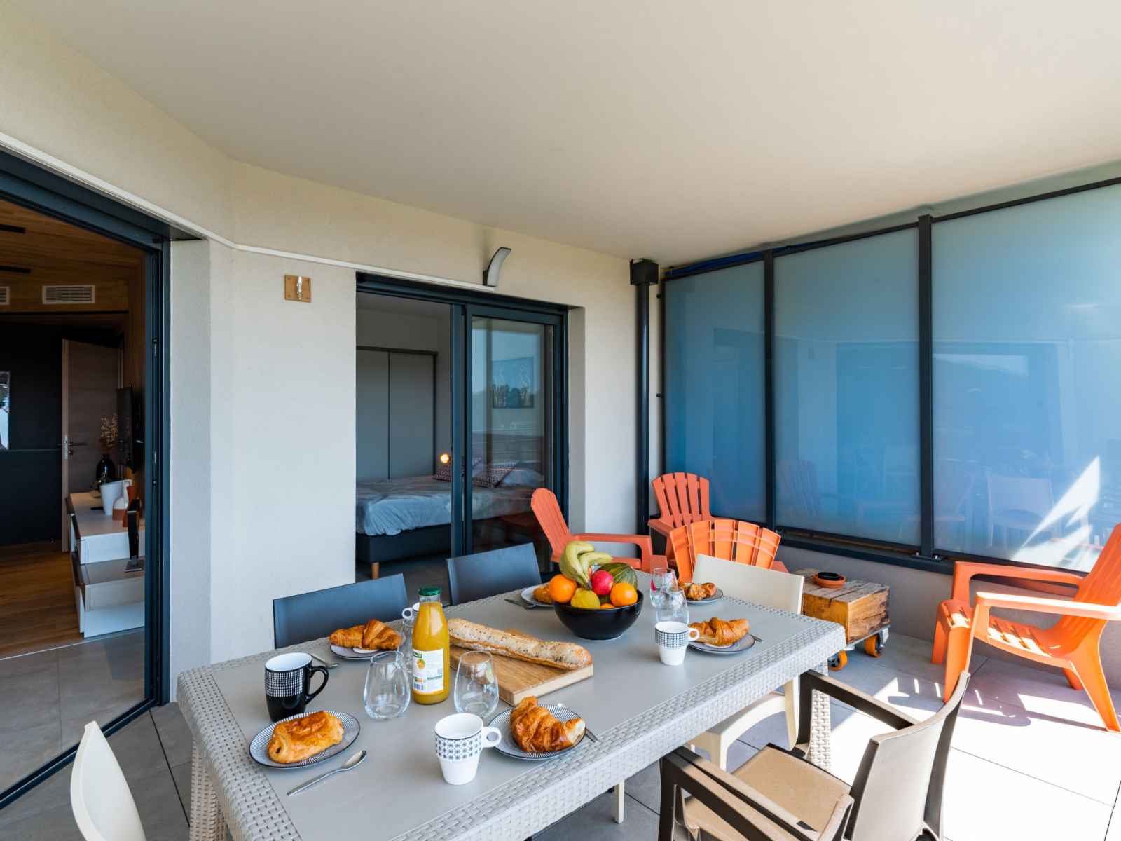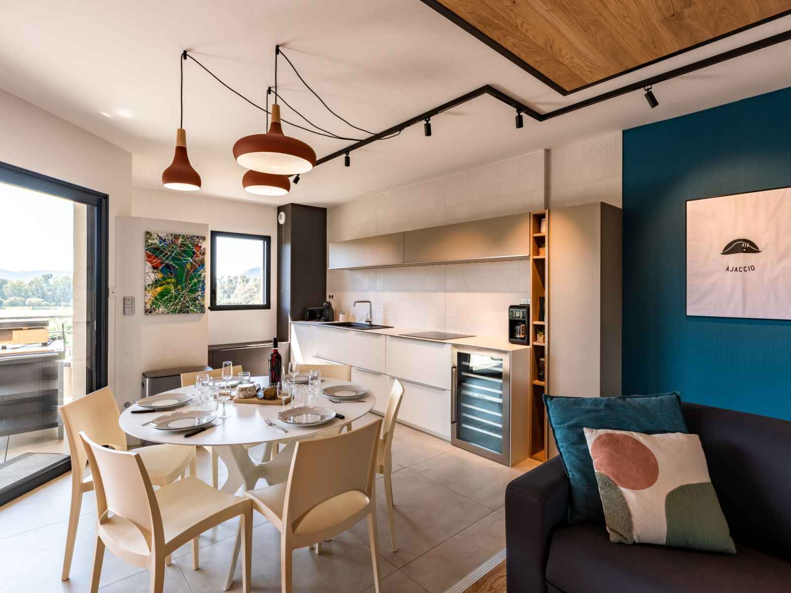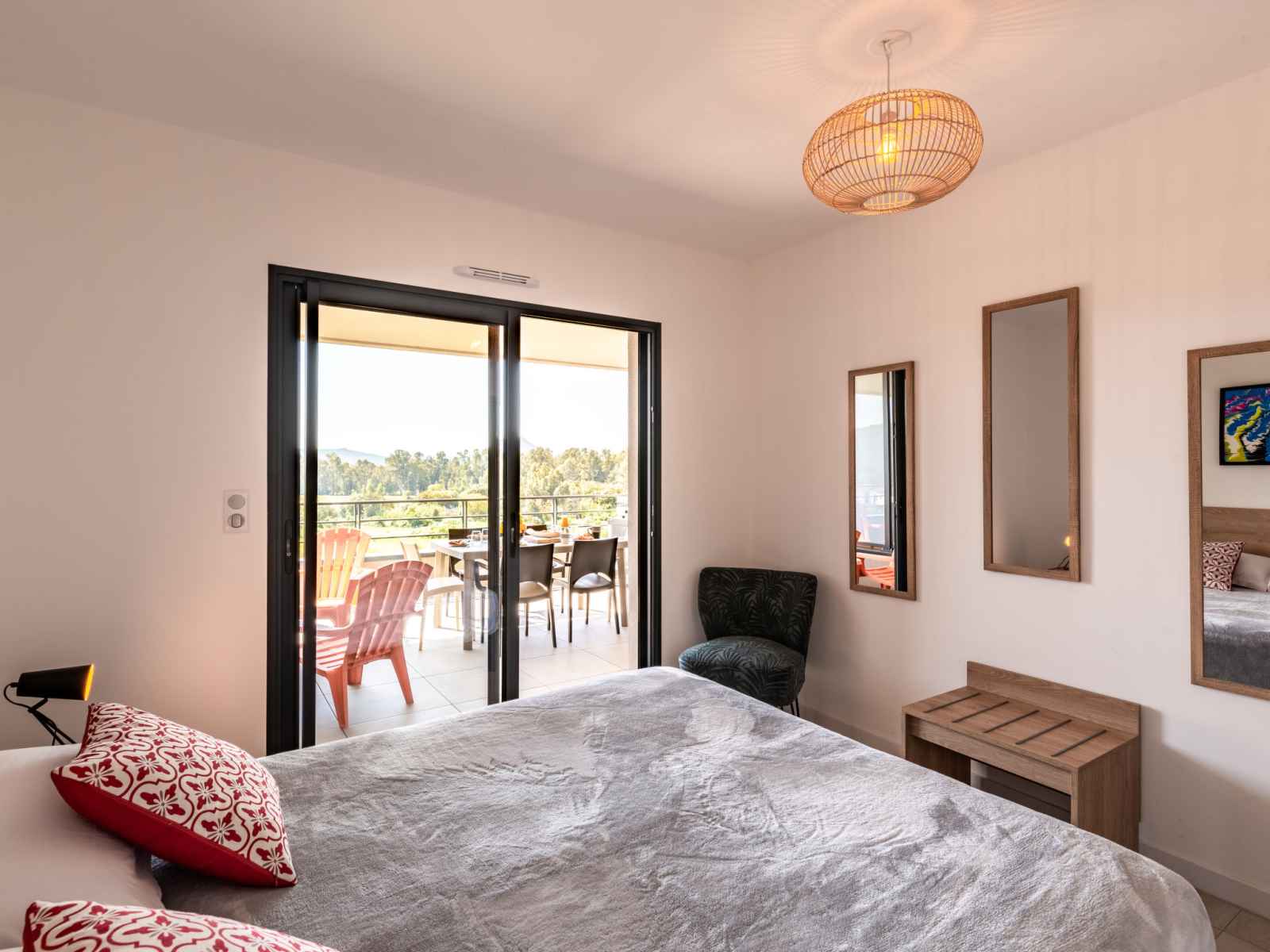 lave-vaisselle, 4 plaques à induction, grille-pain, bouilloire électrique, micro-ondes, congélateur, cafetière électrique). Douche/WC. Chauffage électrique, air-conditionné. Terrasse 25 m2. Meubles de terrasse. Belle vue sur les montagnes. A disposition: lave-linge, sèche-linge. Internet (Connexion WIFI, gratuit). Place de parking. Veuillez noter: adapté(e) aux familles. Logement non-fumeur. Détecteur de fumée. Plancha. Cave à vin. 2A247000320EC