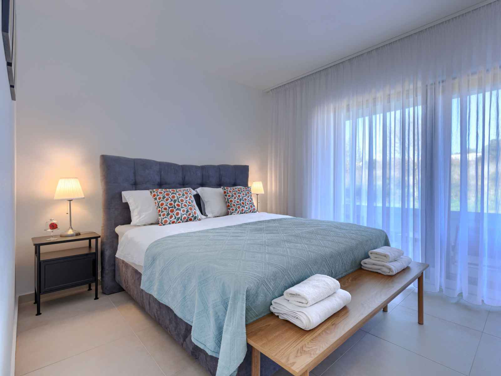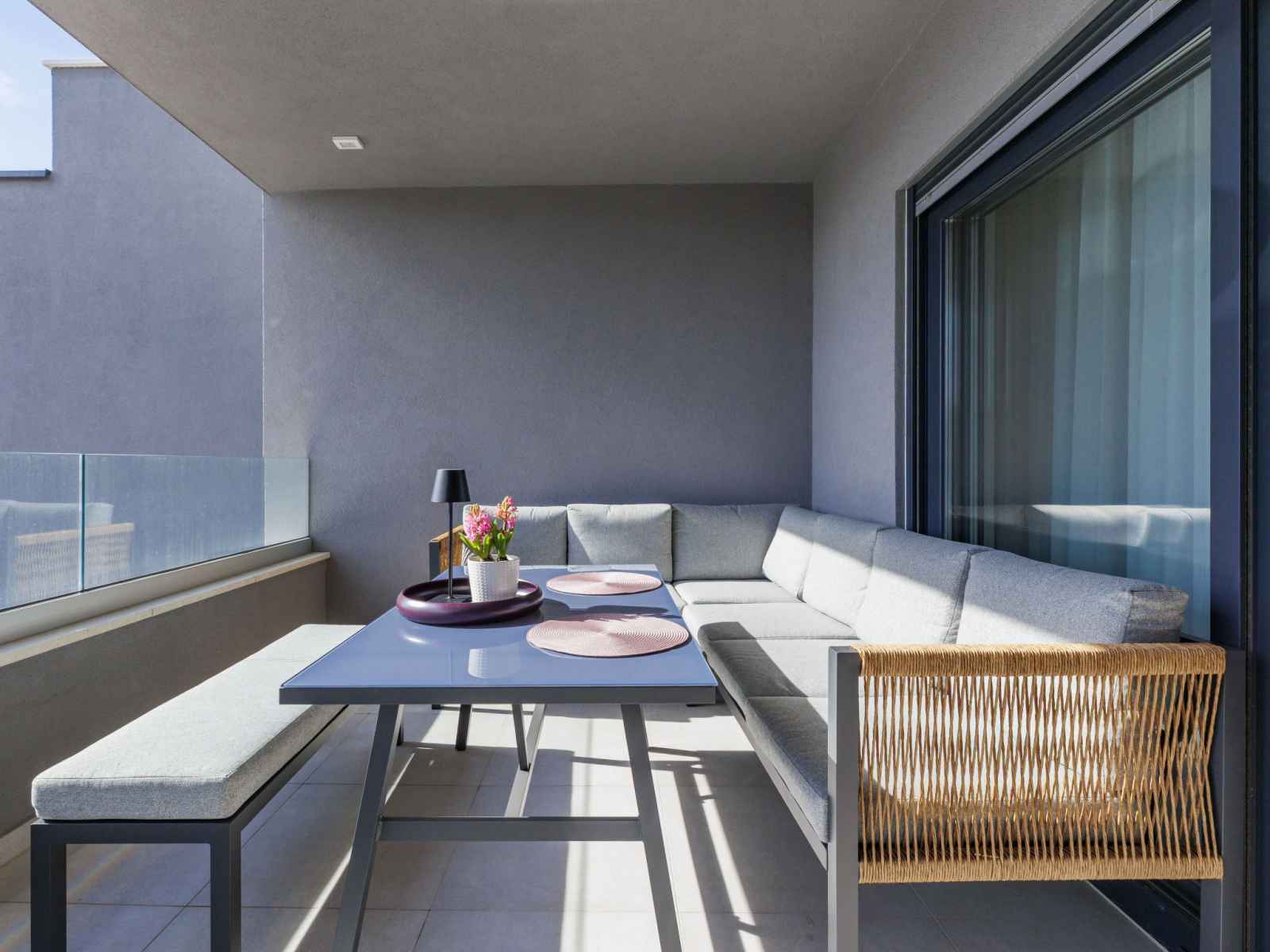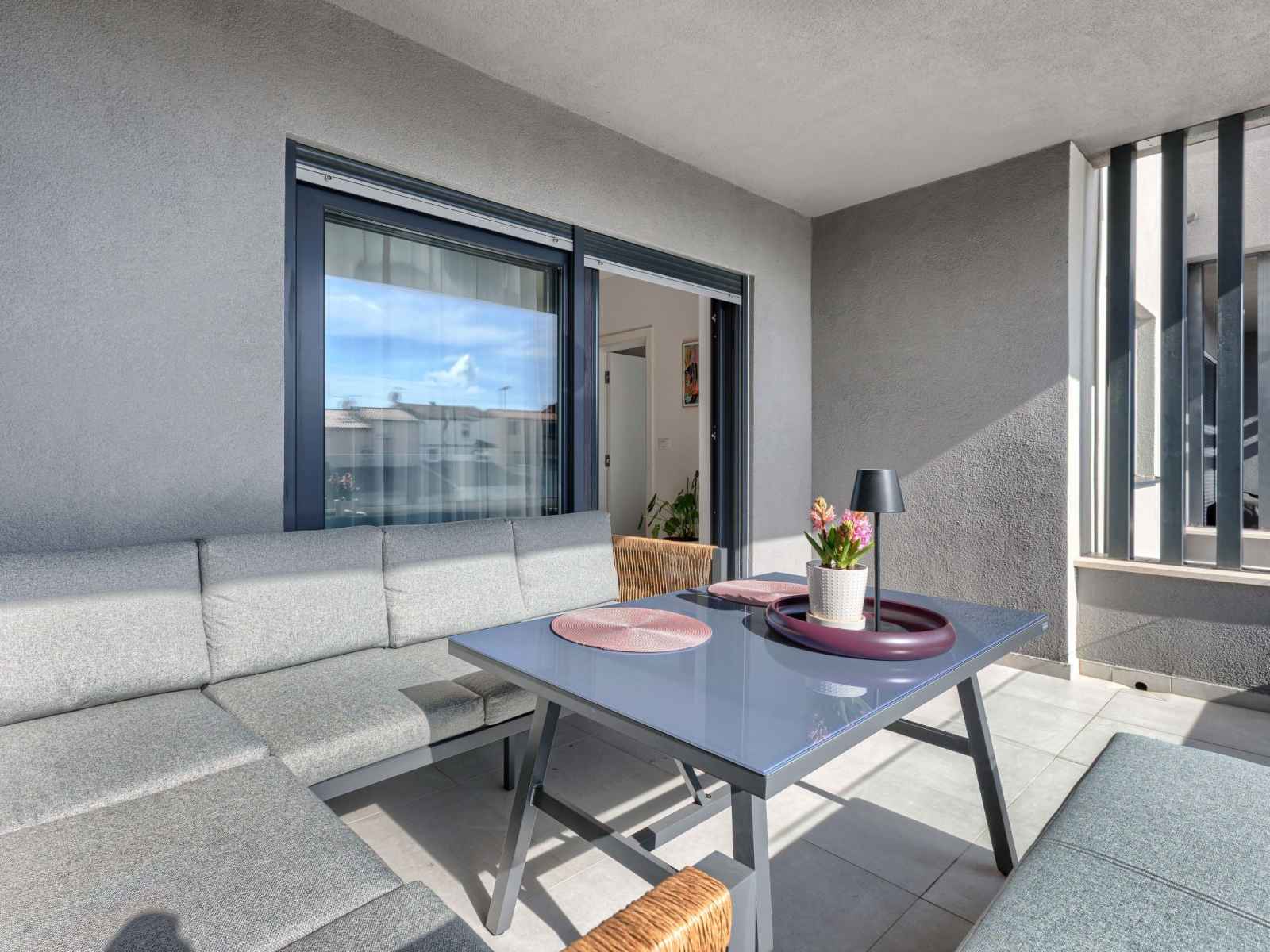Cuisine ouverte (four, lave-vaisselle, 4 plaques vitrocéramiques, grille-pain, bouilloire électrique, micro-ondes, congélateur, cafetière électrique). Douche/WC. Chauffage par le sol. Terrasse 12 m2, couverte, terrasse 6 m2, couverte. Meubles de terrasse. A disposition: lave-linge, moustiquaire, sèche-cheveux. Internet (Connexion WIFI, gratuit). Veuillez noter: extincteur.