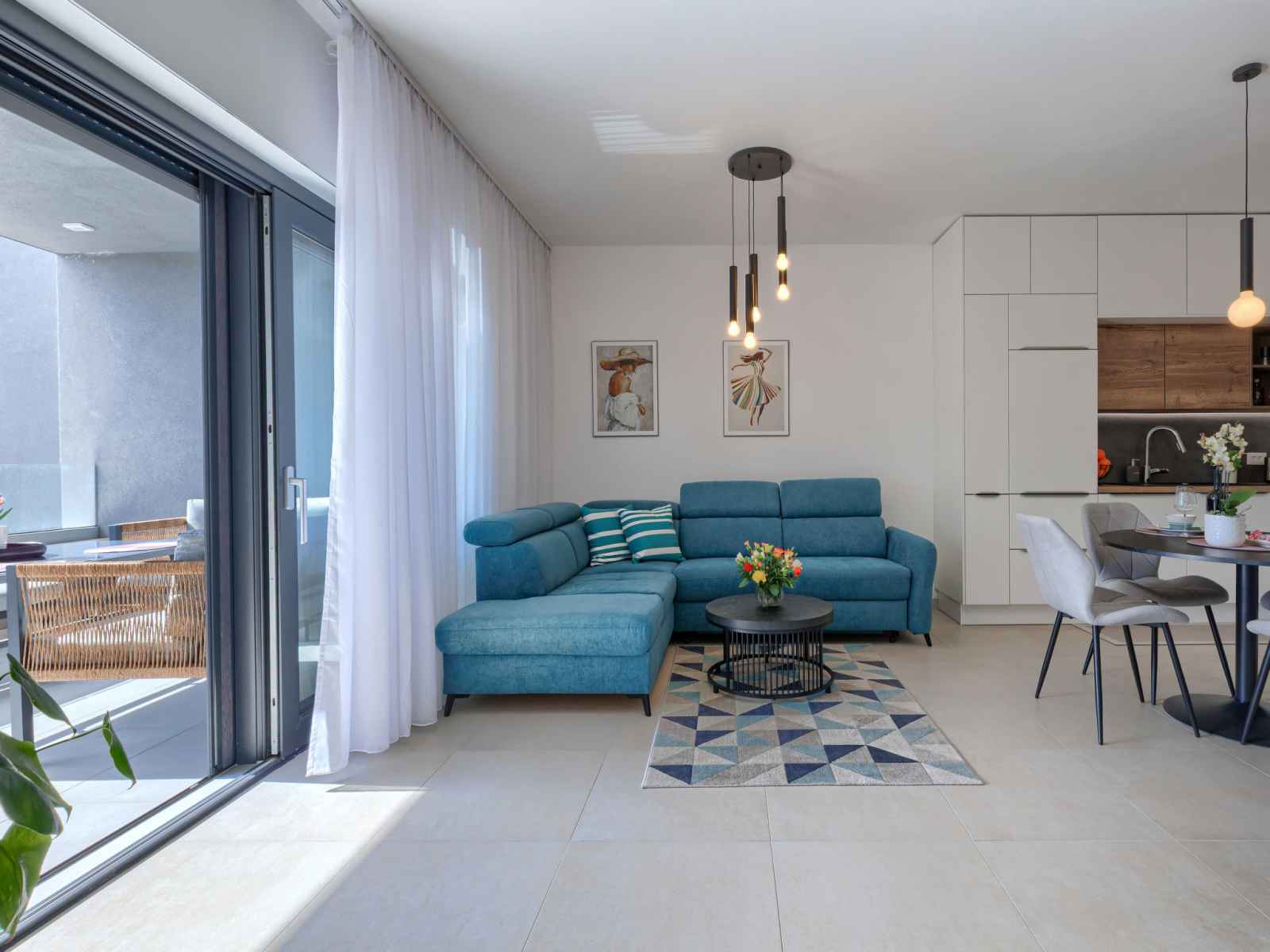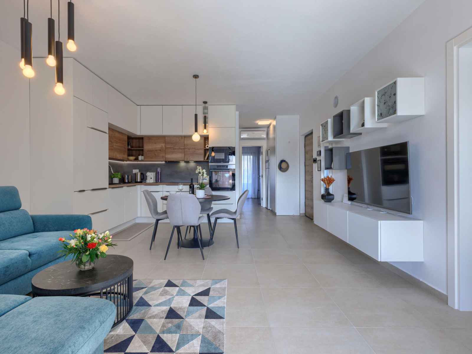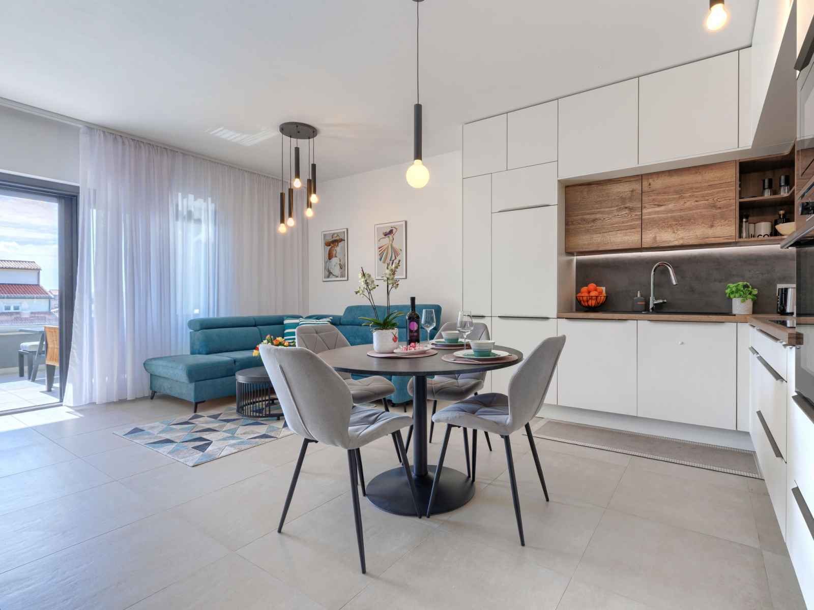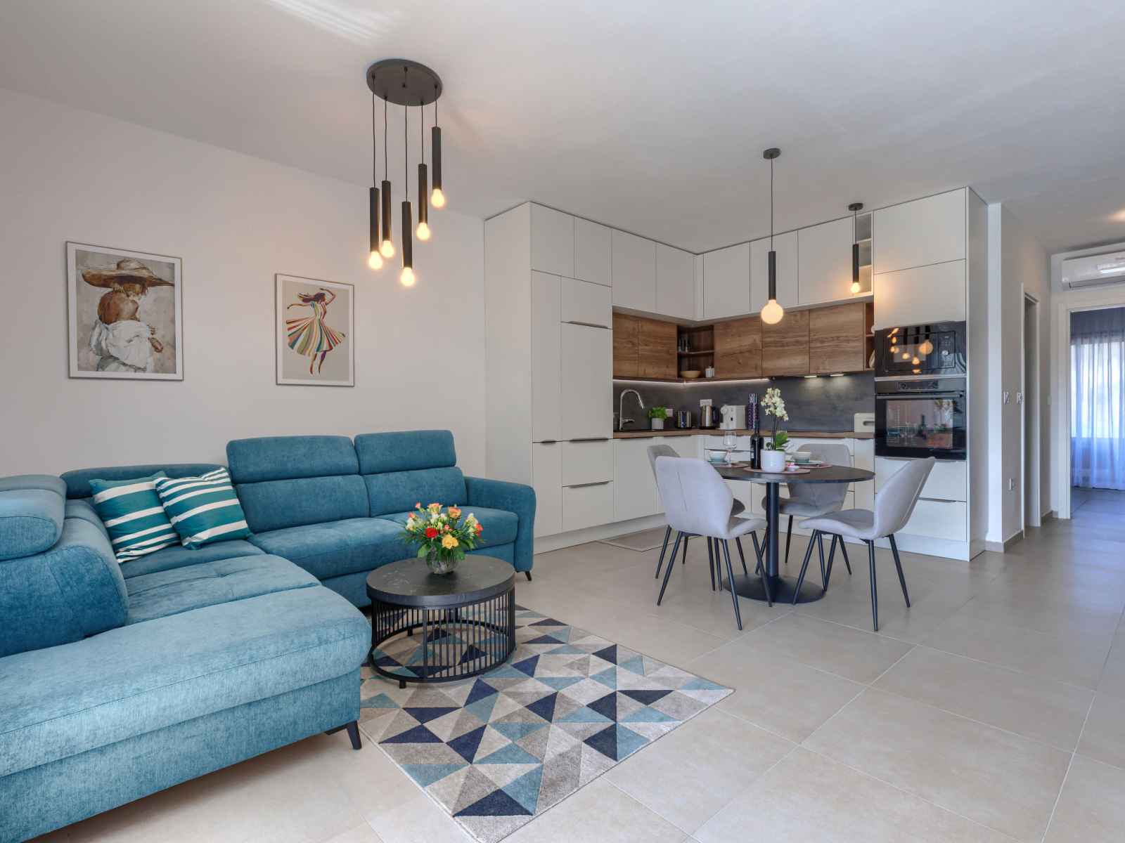 Cuisine ouverte (four, lave-vaisselle, 4 plaques vitrocéramiques, grille-pain, bouilloire électrique, micro-ondes, congélateur, cafetière électrique). Douche/WC. Chauffage par le sol. Terrasse 12 m2, couverte, terrasse 6 m2, couverte. Meubles de terrasse. A disposition: lave-linge, moustiquaire, sèche-cheveux. Internet (Connexion WIFI, gratuit). Veuillez noter: extincteur.