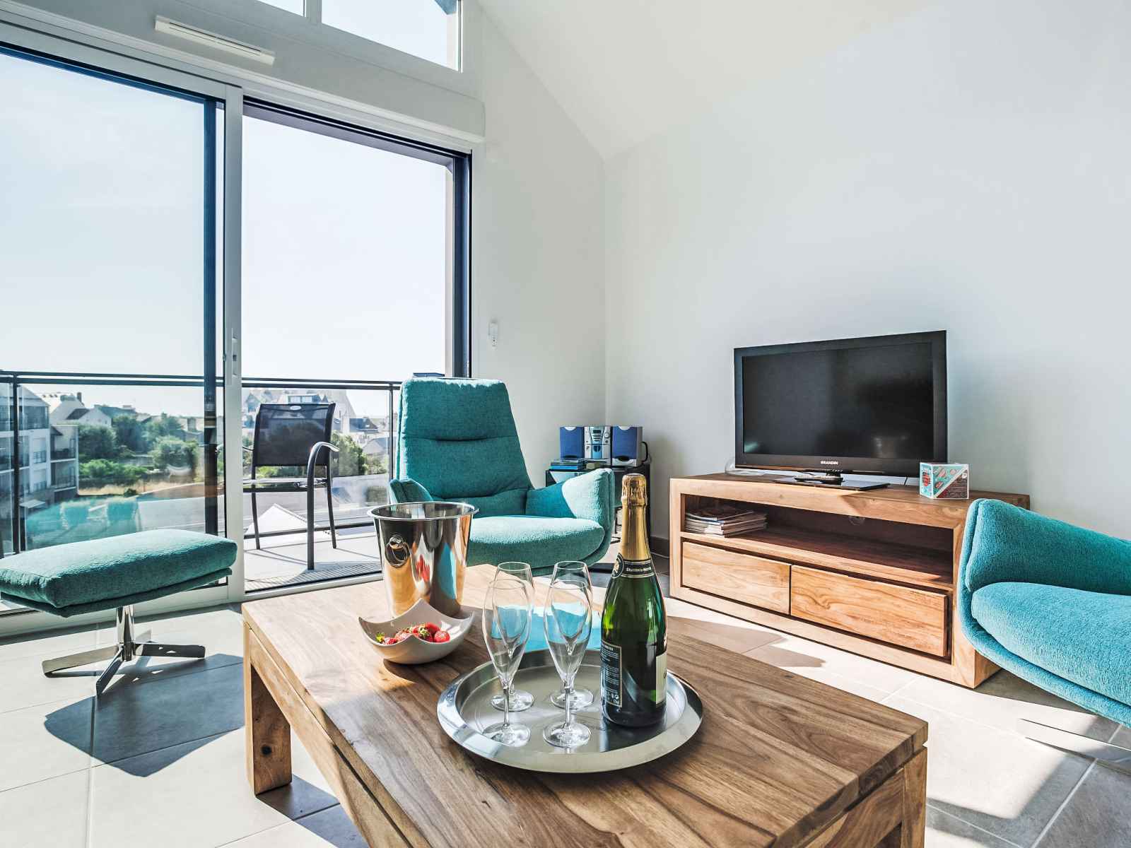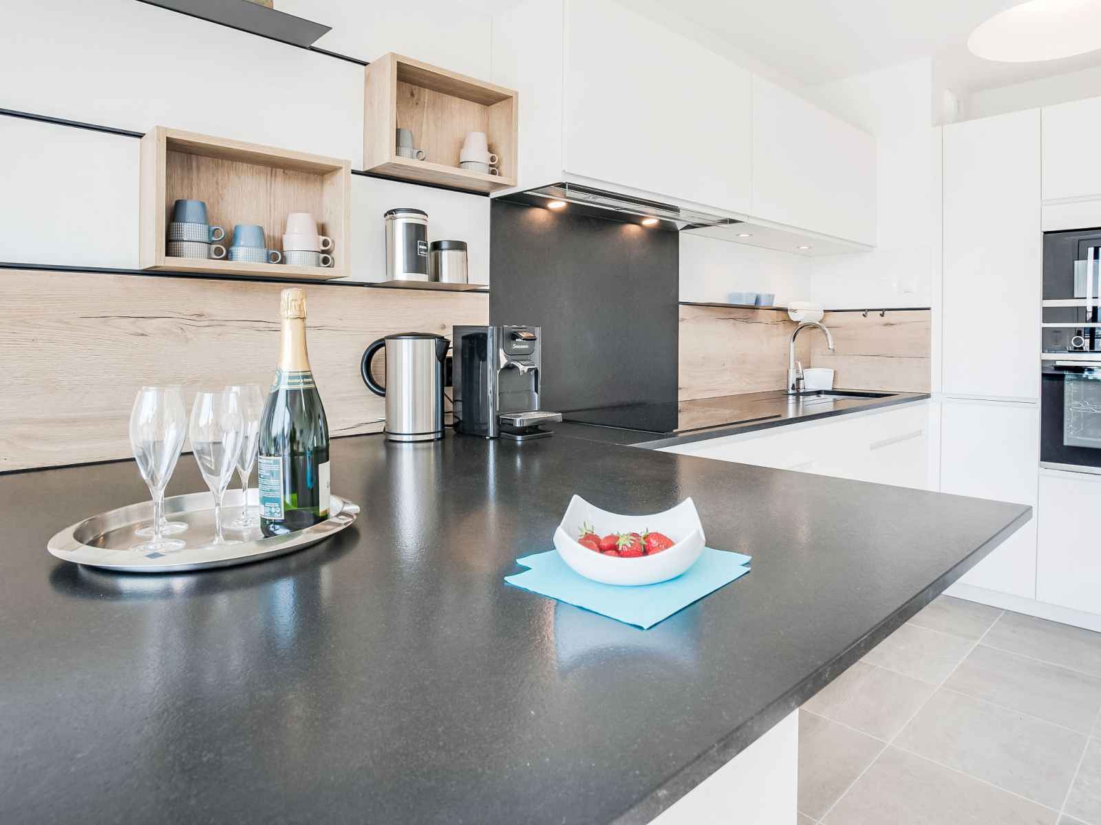 Apt 3 pièces 100 m2 sur 2 niveaux au 3ème étage. aménagement agréable et moderne: séjour/salle à manger avec tv (écran plat). sortie sur le balcon. cuisine ouverte (four, lave-vaisselle, 3 plaques à induction, micro-ondes, congélateur, cafetière électrique, capsules pour machine à café (senseo) (non incluses)). sortie sur la