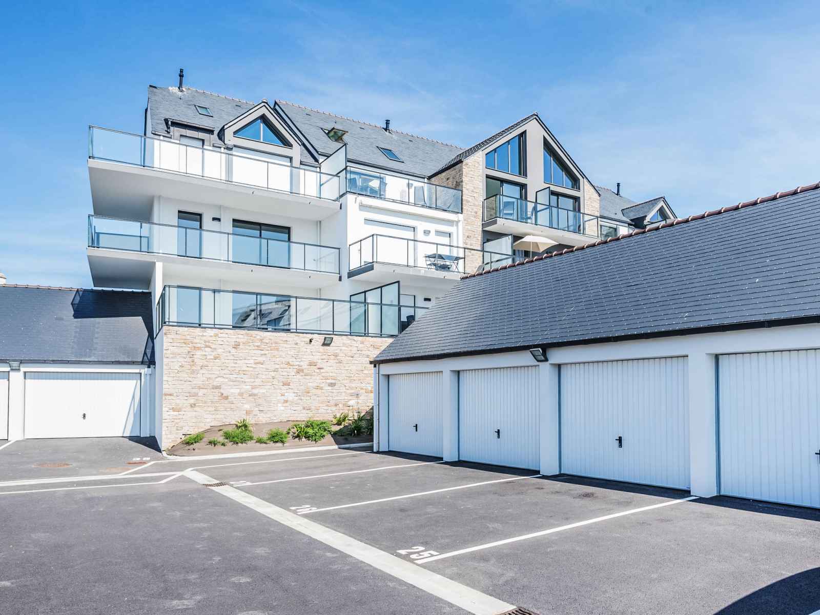 Résidence "parc océan", 50 m au dessus du niveau de la mer, de 3 étages, année de construction 2018. au centre de quiberon, dans un quartier résidentiel, excellente situation: centrale mais tranquille, à 50 m de la mer, à, de la plage. infrastructures de la résidence: ascenseur, réduit pour bicyclettes. magasins 50 m, magasin