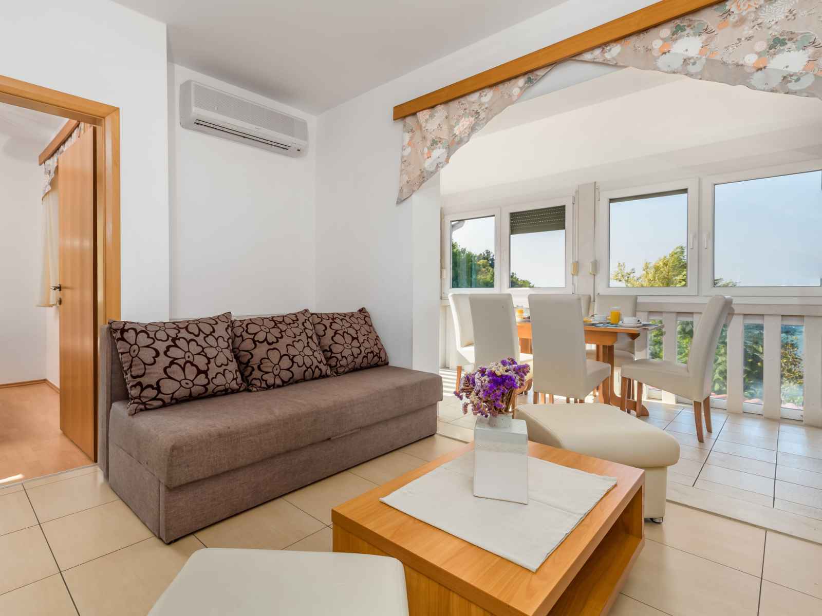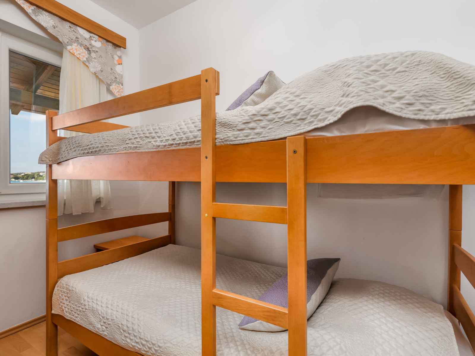 "mare 6", apt 3 pièces 50 m2 au 1er étage. aménagement agréable et moderne: séjour/salle à manger 25 m2 avec 1 divan-lit double, tv (satellite) et air-conditionné. sortie sur la loggia. 1 chambre avec 1 lit double (160 cm, longueur 200 cm). 1 chambre avec 1 x 2 lits superposés. cuisine ouverte (4 plaques de cuisson, micro-ondes,