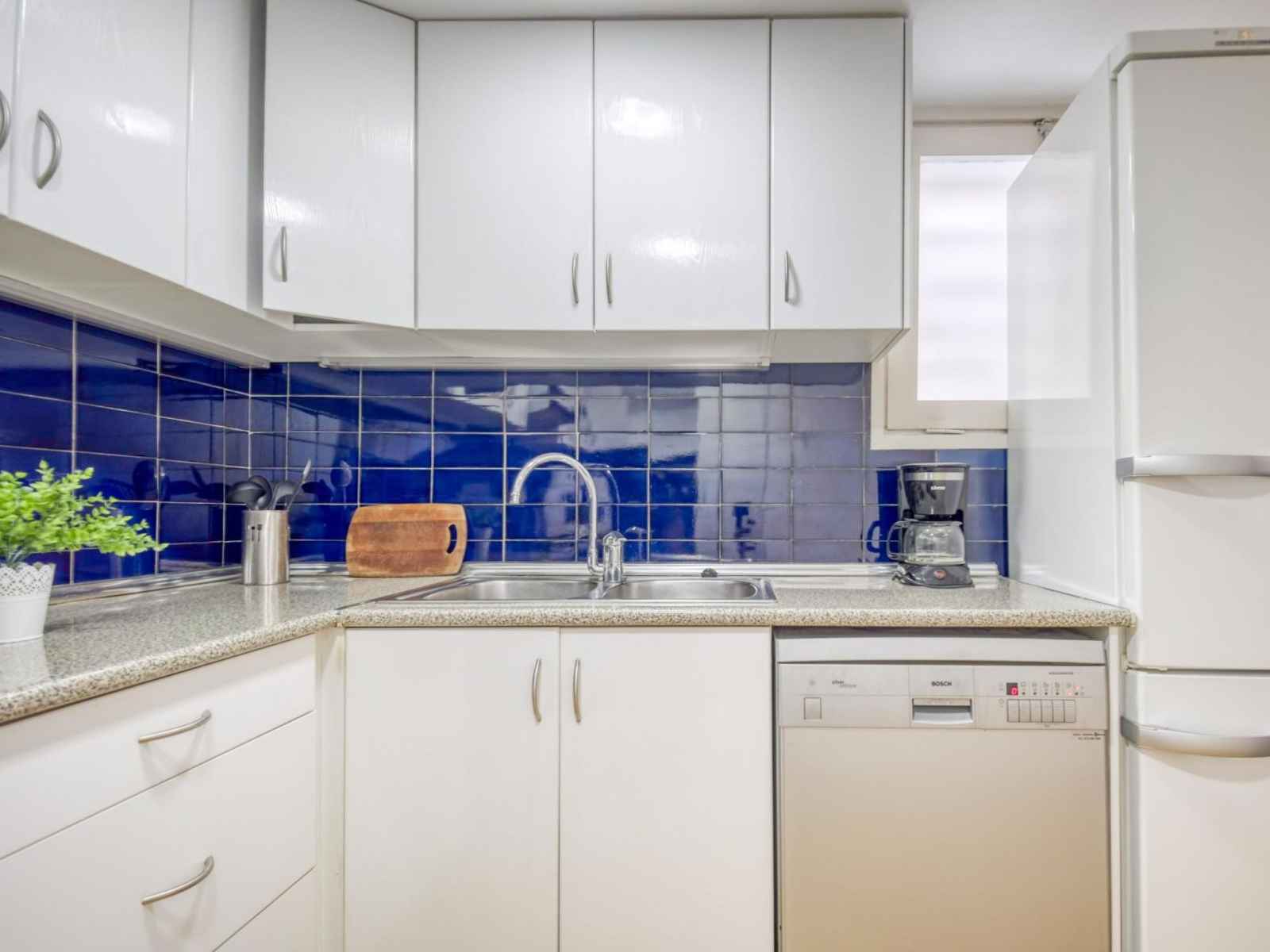Terrasse. Meubles de terrasse. A disposition: lave-linge. Internet (Connexion WIFI, gratuit). Veuillez noter: logement côté rue. Pas de parking. TV seulement ES, DE. Important à savoir : terrasse au niveau de la rue. Appartement sans CHAUFFAGE . WIFI GRATUIT du 1.04 au 30.09. HUTG007528 // Reg. Nr.: ESFCTU000017019000267757000000000000000000HUTG0075282