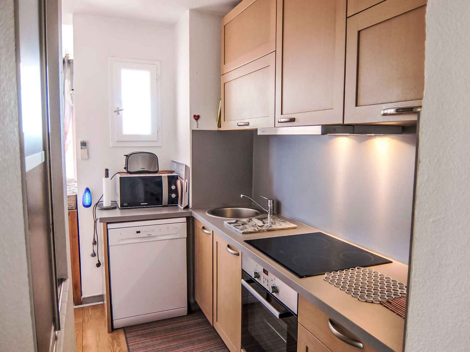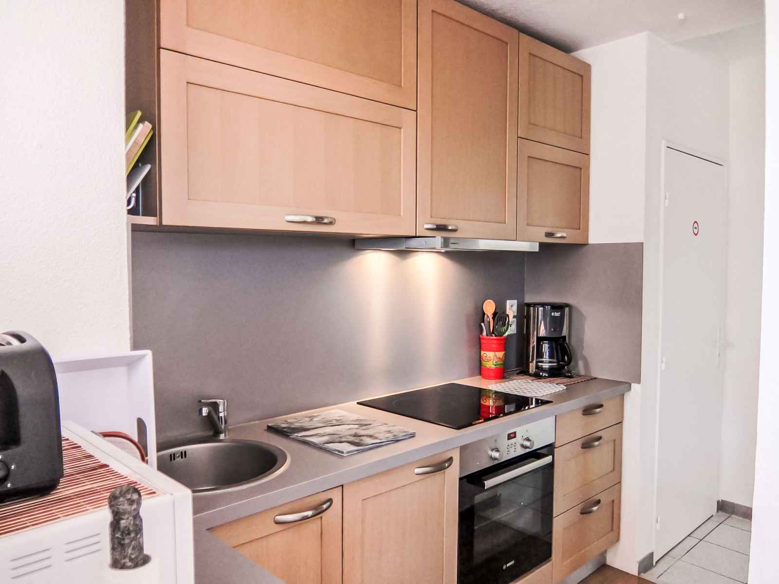 congélateur, gril). Douche, WC séparé. Air-conditionné. Terrasse 12 m2, situation est terrasse 12 m2, situation sud. Meubles de terrasse. A disposition: lave-linge. Internet (Connexion WIFI, gratuit). Place de parking No 25 extérieur. Veuillez noter: détecteur de fumée, sans ascenseur.