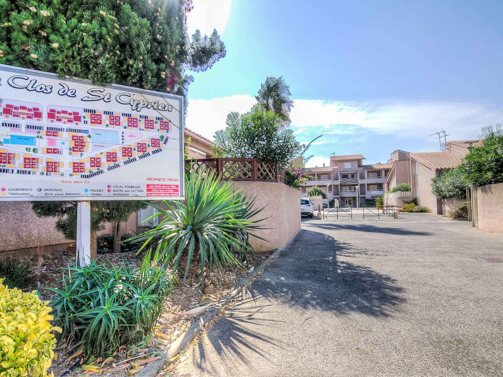 Résidence "le clos de st cyprien". au centre de saint cyprien port, situation centrale, animée, à 500 m de la mer, à 500 m de la plage, sur une route principale. en commun: piscine (disponibilité saisonnière: 15.jun. - 15.sep.). bassin pour les enfants, tennis, espace de jeux pour les enfants. magasins 400 m, supermarché 500 m, restaurant