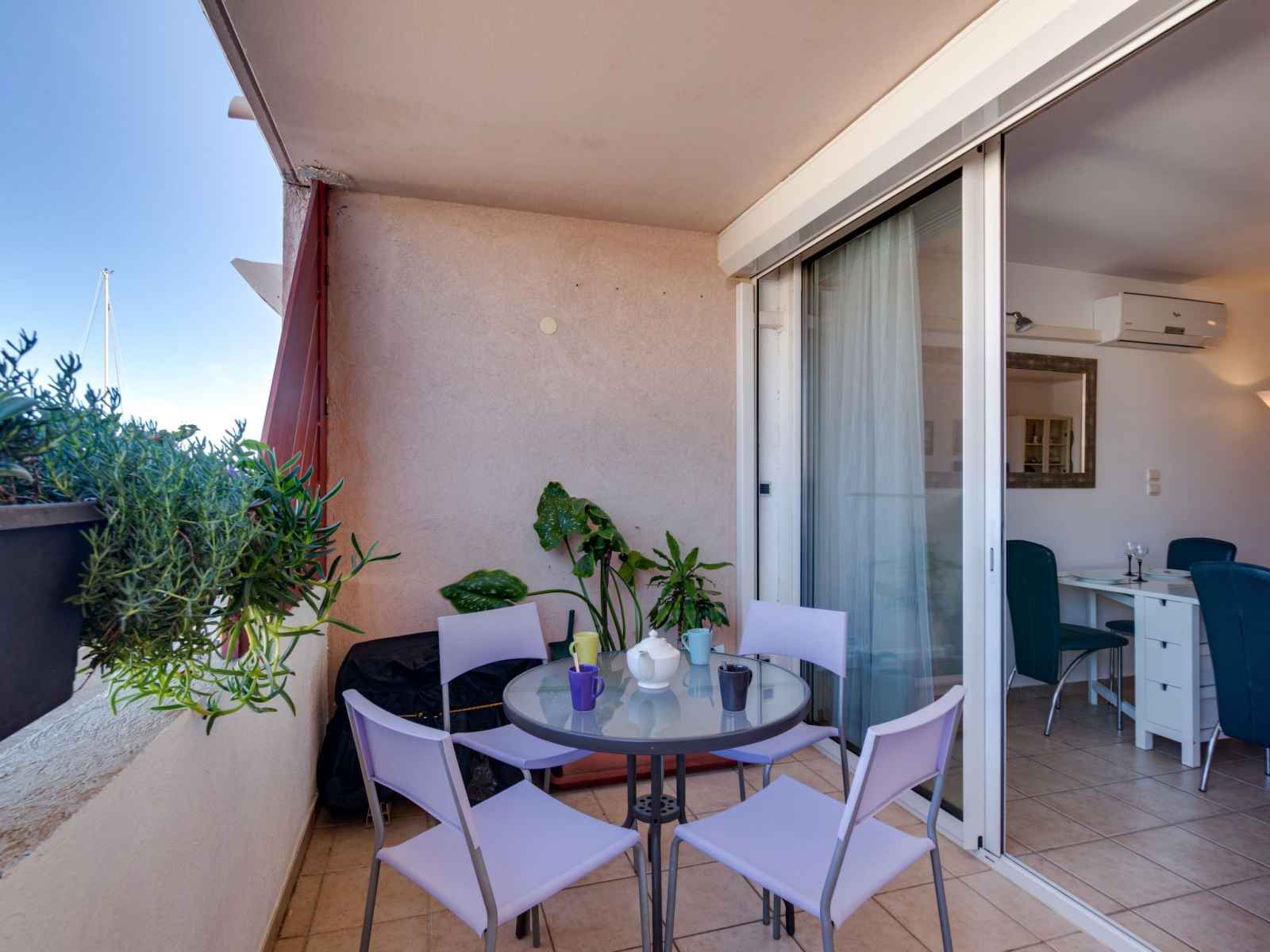 lave-vaisselle, 4 plaques à induction, bouilloire électrique, micro-ondes, congélateur, cafetière électrique). Bain/WC, douche/WC. Air-conditionné. Balcon 6 m2, terrasse 10 m2, couverte. Meubles de terrasse. Belle vue sur Lagune. A disposition: lave-linge, chaise haute pour enfant, lit bébé. Internet (Connexion WIFI, gratuit). Place de parking (cloturée). Veuillez noter: détecteur de fumée.