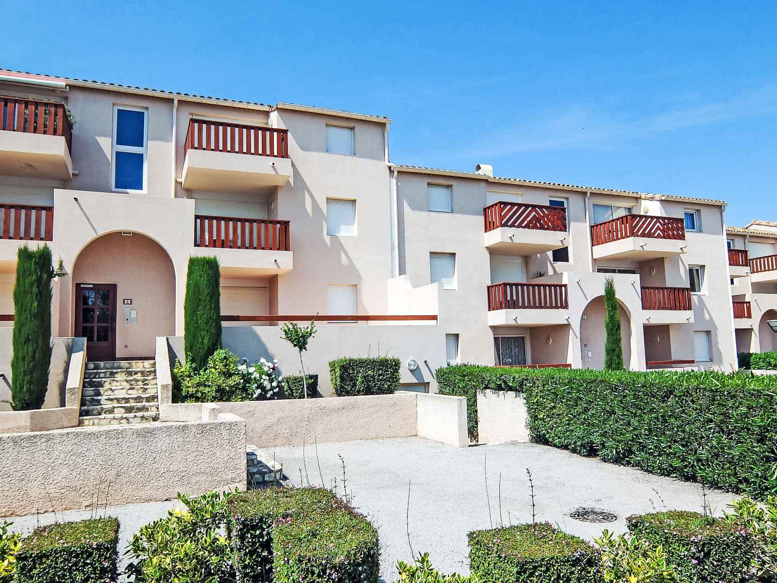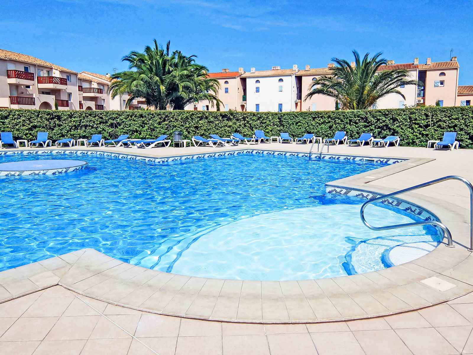 Résidence "les quais de l'amirauté", de 2 étages. dans le quartier de les capellans, à 1.5 km de la mer, à 1.5 km de la plage, accès direct à la lagune. en commun: piscine (18 x 10 m, profondeur 145 - 145 cm, disponibilité saisonnière: 01.jun. - 15.sep.). douche extérieure. magasins, magasin d'alimentation 350 m, supermarché 1.6 km,