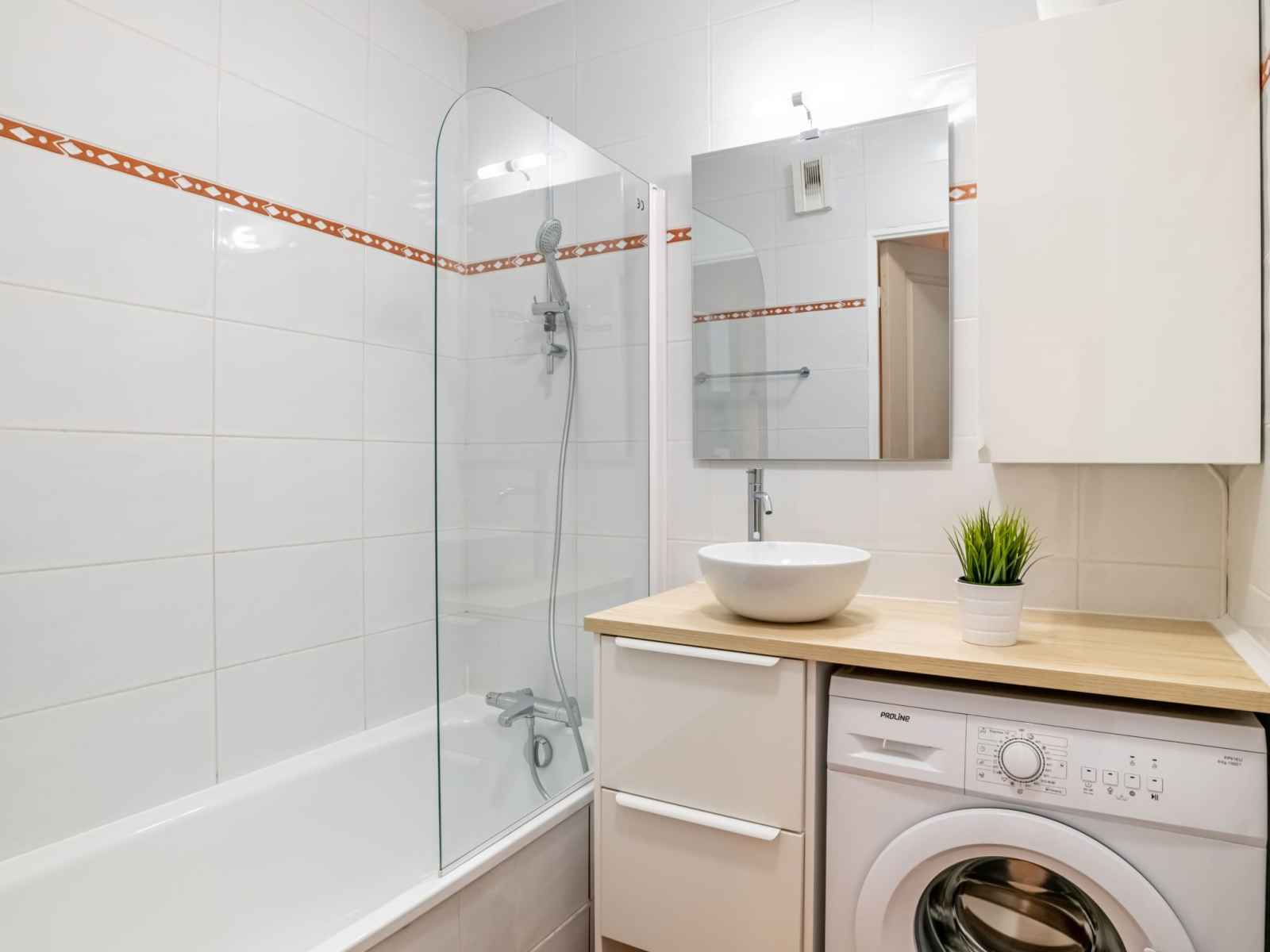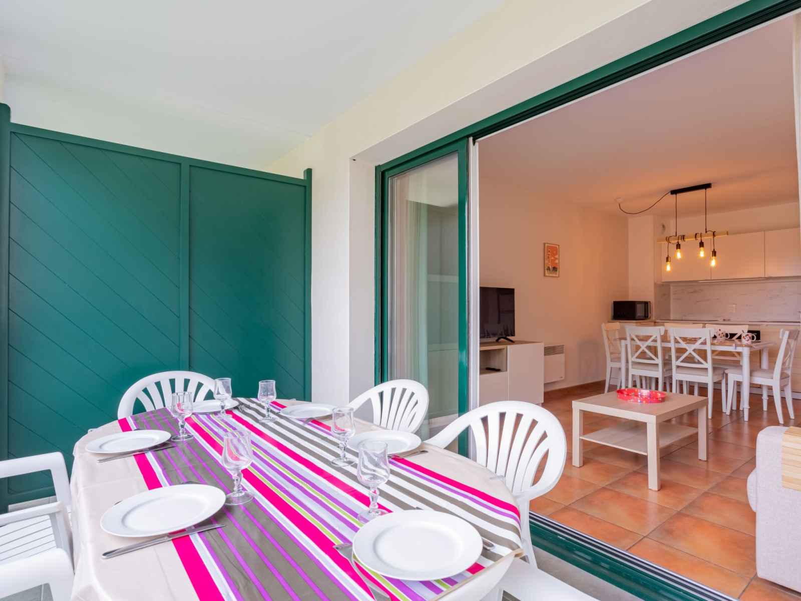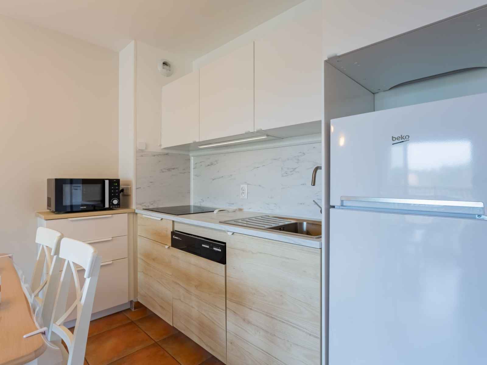 190 cm). Sortie sur la terrasse. Cuisine ouverte (lave-vaisselle, 3 plaques vitrocéramiques, grille-pain, bouilloire électrique, micro-ondes, cafetière électrique). Salle de bains, WC séparé. Chauffage électrique. Terrasse 17 m2. Meubles de terrasse. Belle vue sur le jardin. A disposition: lave-linge, fer à repasser, sèche-cheveux. Internet (Connexion WIFI, gratuit). Place de parking (couvert). Veuillez noter: détecteur de fumée. 6448300186952