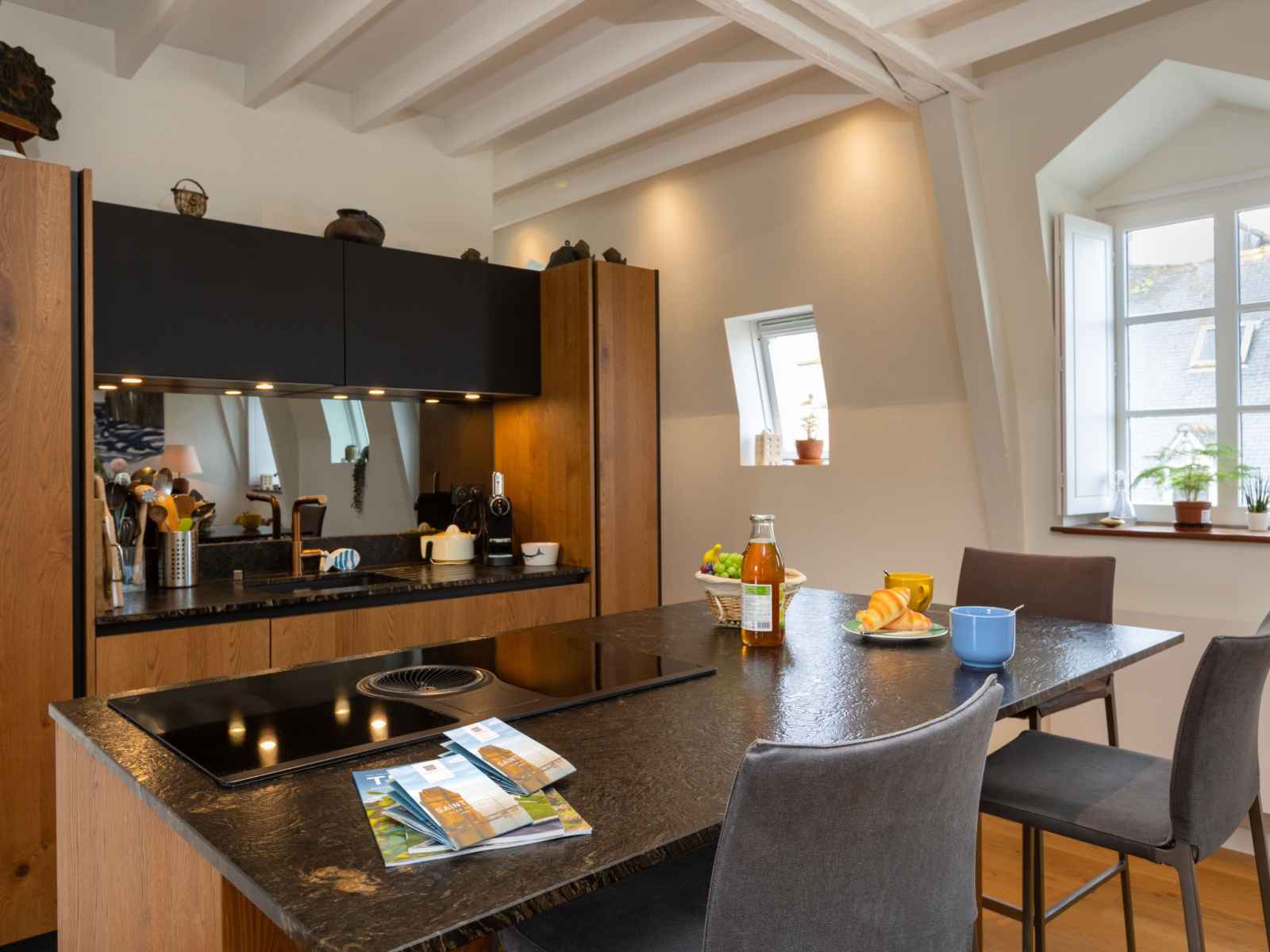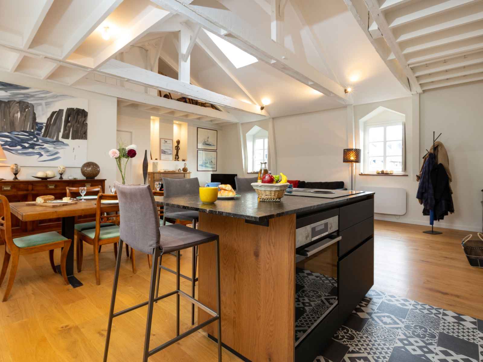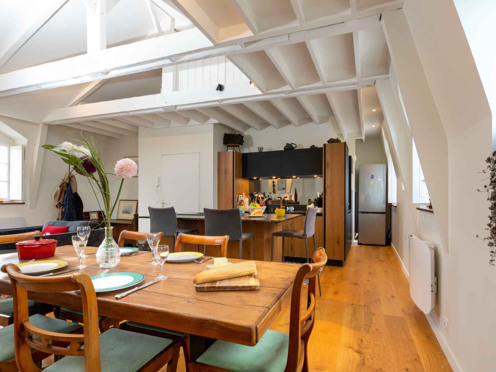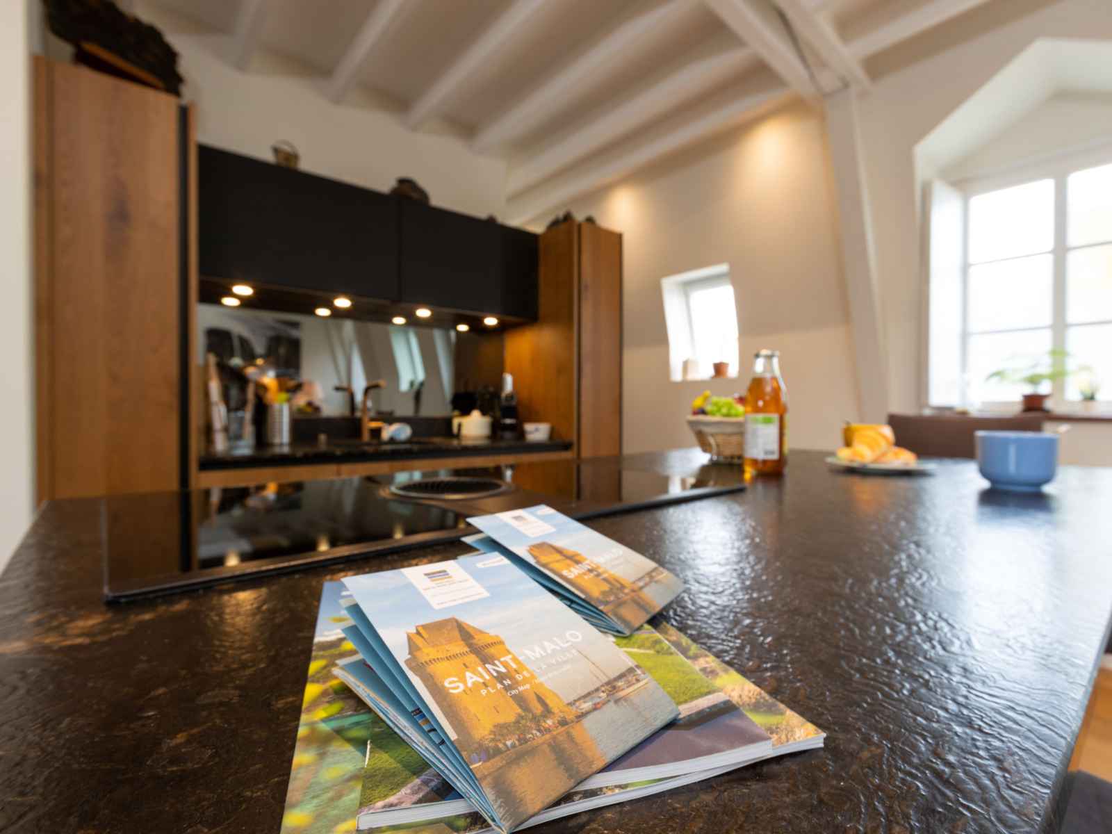 "le grand bé", apt 3 pièces 90 m2 au 3ème étage. spacieux et clair, complètement rénové, aménagement agréable et moderne: grand séjour avec tv (écran plat). 1 chambre avec 1 grand-lit (1 x 140 cm, longueur 190 cm), douche. 1 chambre, fenêtre donnant sur la cour avec 1 grand-lit (1 x 140 cm, longueur 190 cm). grande cuisine ouverte