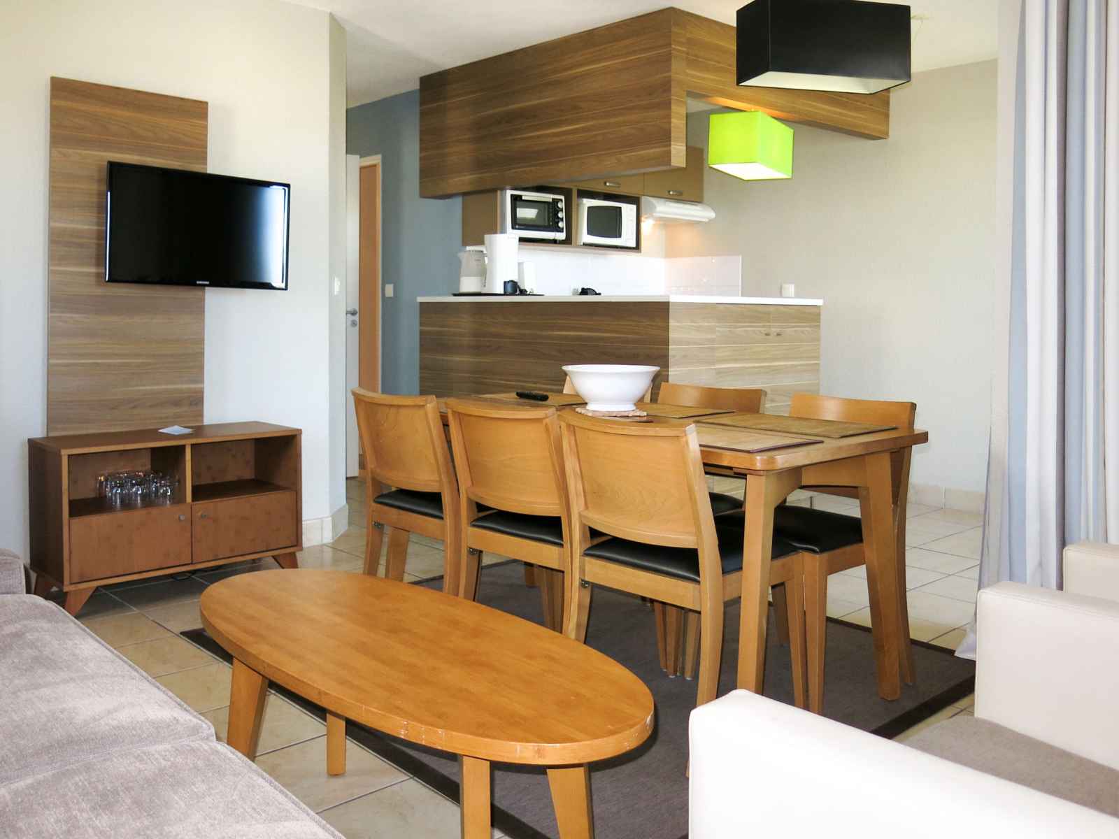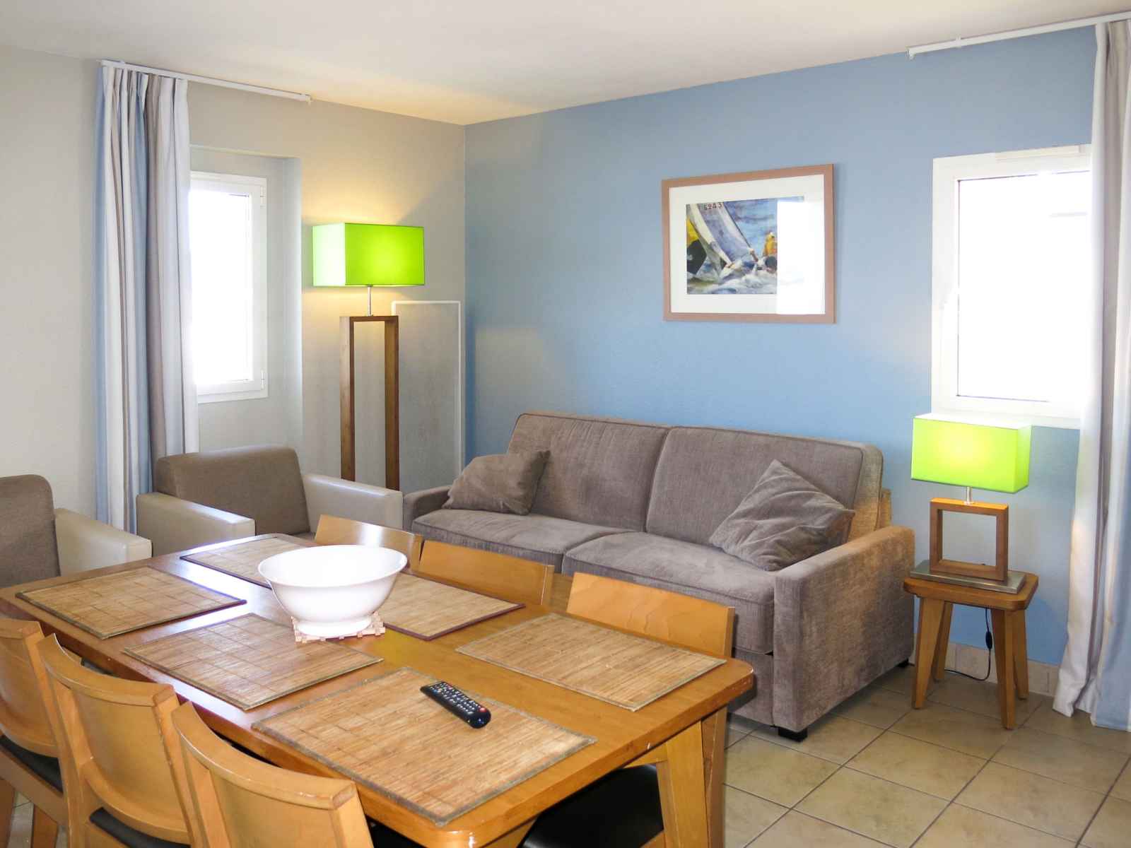 "reine marine - t3 balcon lat. mer", apt 3 pièces 54 m2. aménagement confortable et agréable: séjour/chambre à coucher avec 1 divan-lit double (140 cm, longueur 200 cm), table pour les repas et tv (satellite). sortie sur le balcon, sur la terrasse. 2 chambres, chaque chambre avec: 2 lits (90 cm, longueur 200 cm). coin cuisine (four,