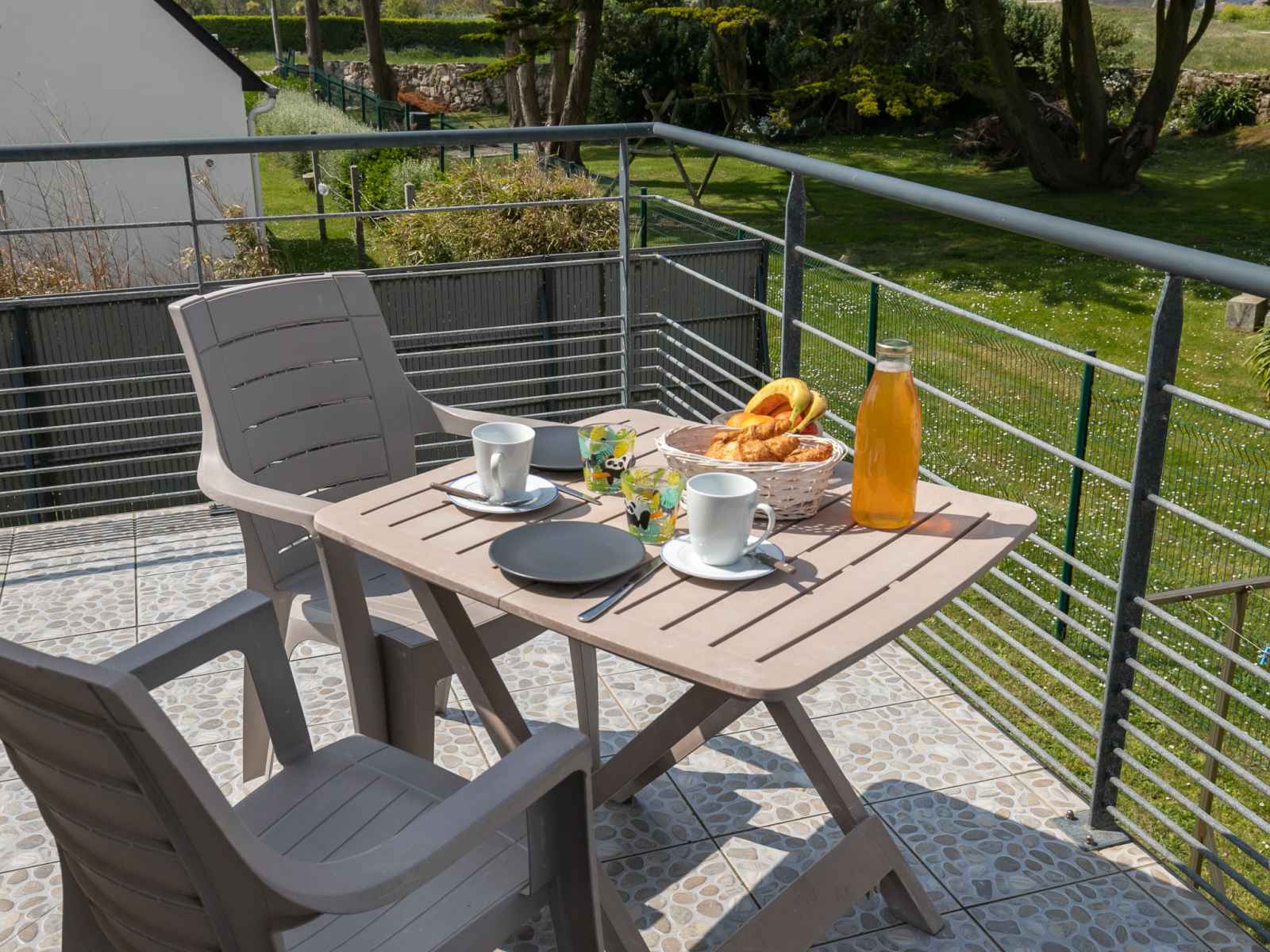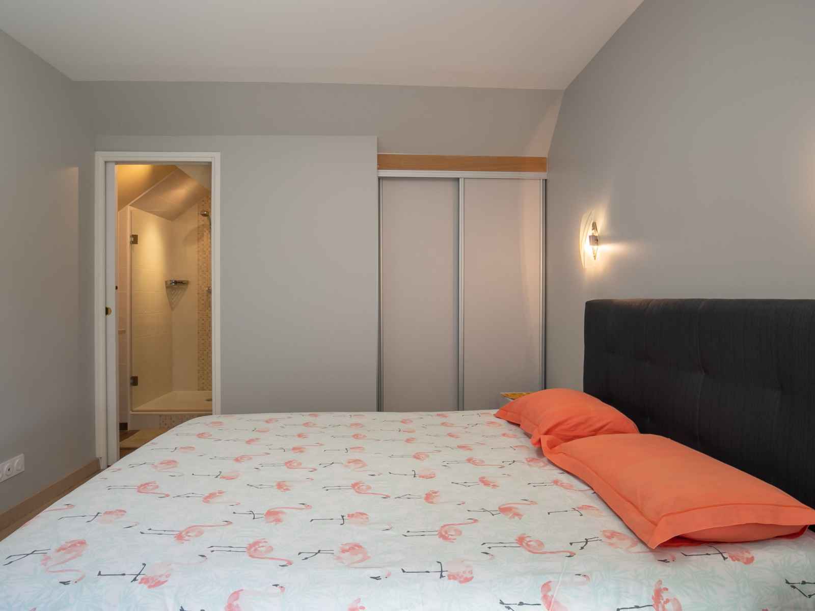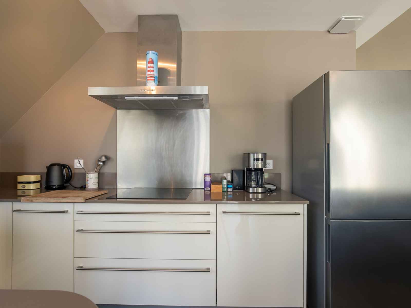 lave-vaisselle, 3 plaques à induction, grille-pain, bouilloire électrique, micro-ondes, congélateur, cafetière électrique). Douche, WC séparé, double vasque. Chauffage électrique. Grand balcon 30 m2, pelouse 300 m2. Mobilier de balcon, barbecue (portable), chaises longues (3). Vue latérale sur l'océan. A disposition: lave-linge, fer à repasser. Internet (Connexion WIFI, gratuit). Veuillez noter: logement non-fumeur. Entrée privée, détecteur de fumée. Possibilité de réserver une chambre pour max. 2 personnes avec un lit 1,60m x 2,00m et douche/WC privative, voir frais supplémentaires.