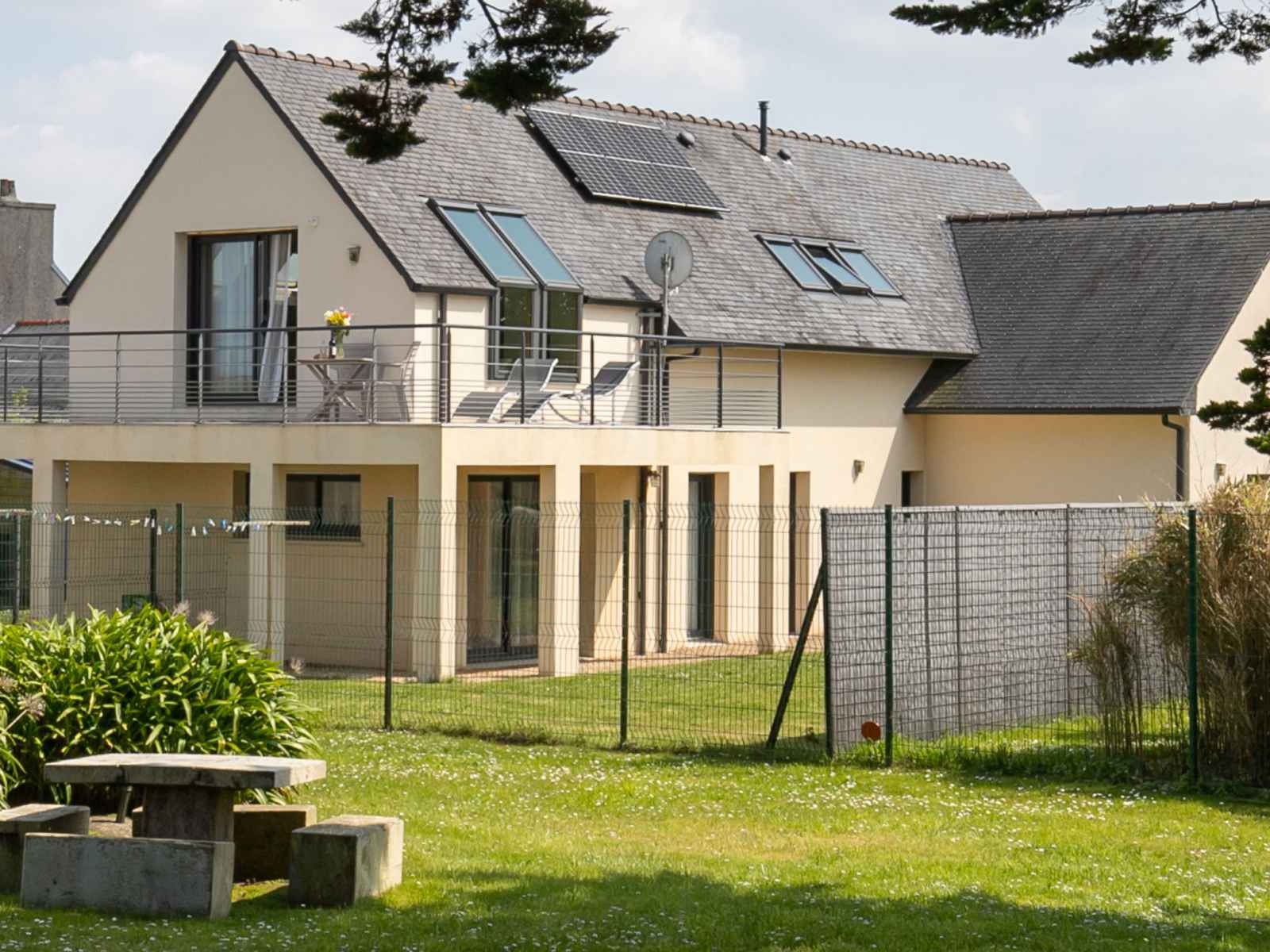 Maison à 2 apts moderne "les chardons bleus", année de construction 2015. dans le quartier de les chardons bleus, à 2.3 km du centre de brignogan-plage, à 5.5 km du centre de kerlouan, à 14 km du centre de lesneven, dans un quartier résidentiel, à 180 m de la mer, à 180 m de la plage. en commun: terrain 900 m2, jardin entretenu avec