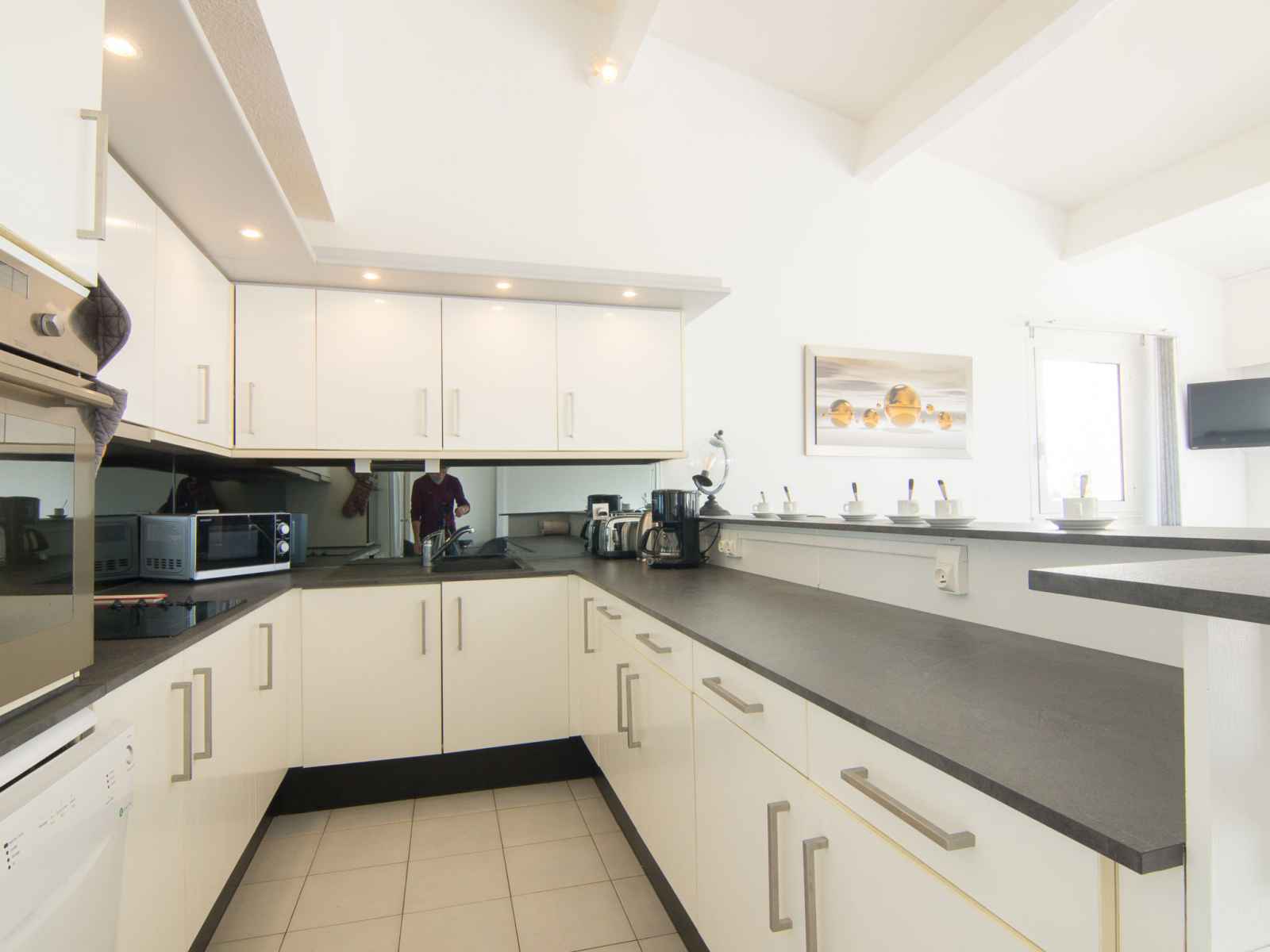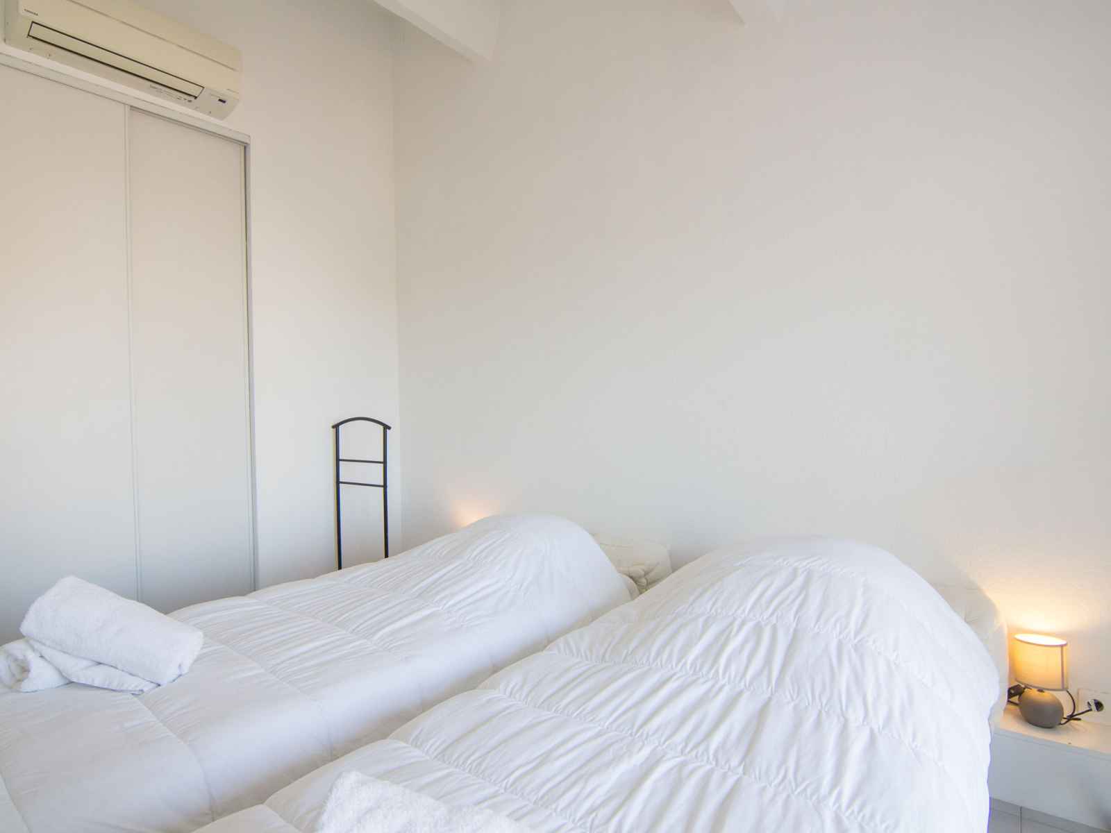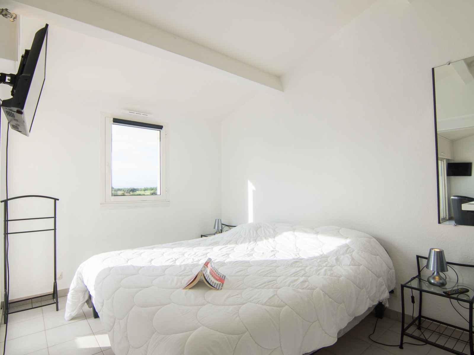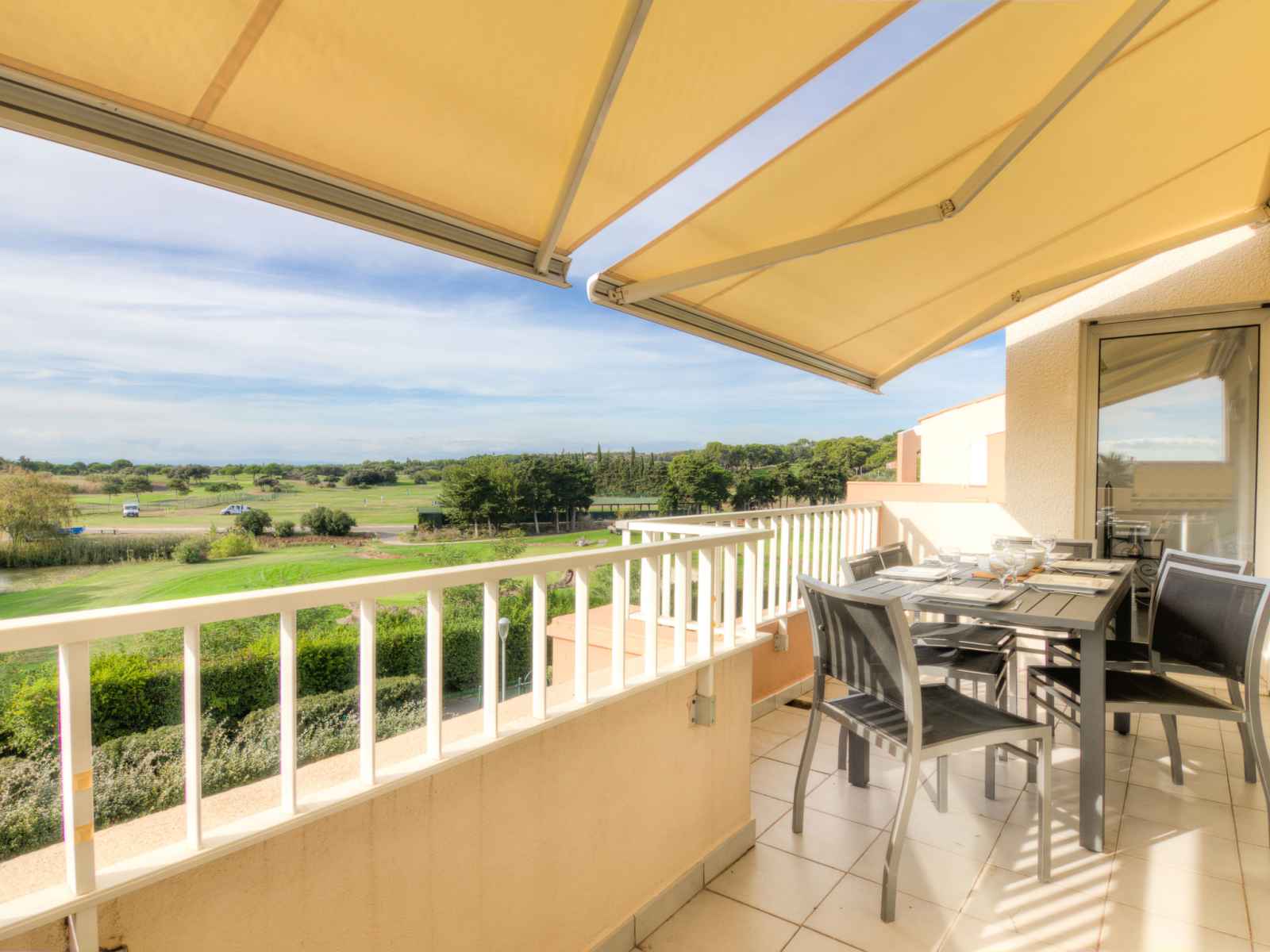 longueur 200 cm), TV (écran plat), air-conditionné. Sortie sur le balcon. 1 chambre avec 1 grand-lit (180 cm, longueur 200 cm), TV (écran plat), air-conditionné. Sortie sur le balcon. Grande cuisine ouverte (four, lave-vaisselle, 4 plaques vitrocéramiques, micro-ondes, congélateur, cafetière électrique) avec bar. Douche, WC séparé, double vasque. Chauffage électrique. Terrasse. Meubles de terrasse, chaises longues (2). Très belle vue panoramique sur Terrain de golf. A disposition: lave-linge, sèche-linge, sèche-cheveux. Internet (Connexion WIFI, gratuit). Place de parking No 2. Veuillez noter: adapté(e) aux familles. Logement non-fumeur. Détecteur de fumée. Le linge de lit et les serviettes de toilette sont fournis dans la location. Les lits ne sont pas dressés. Plancha électrique.