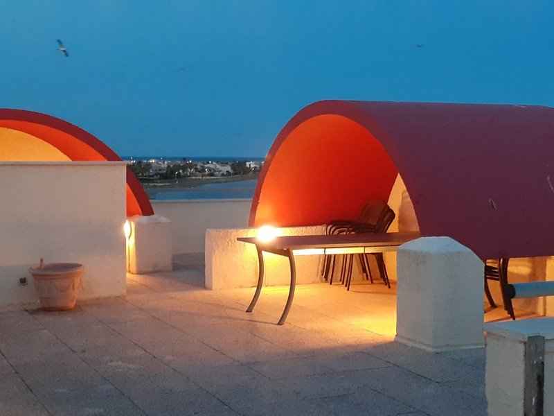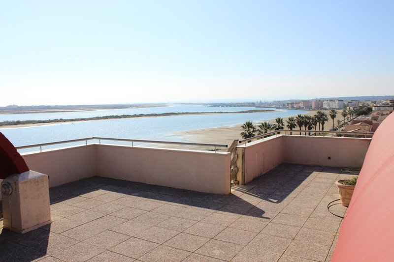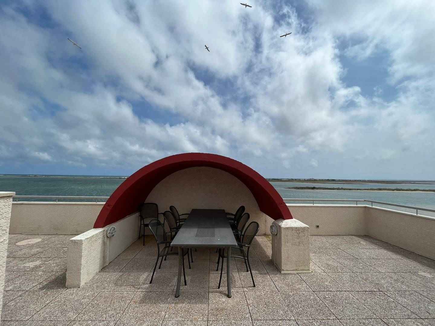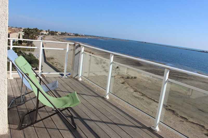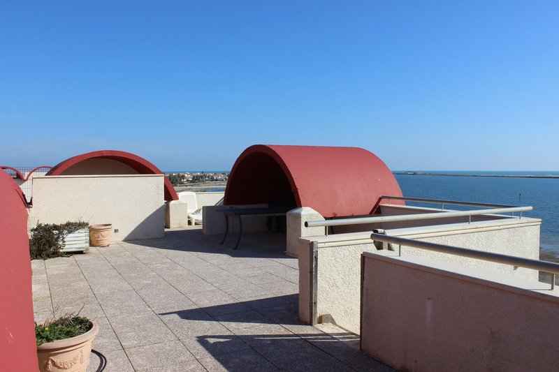 Une terrasse vue Mer de 15m² et un toit terrasse de 50m² avec une vue imprenable sur Gruissan, les chalets et la plage du Grazel. 2 Places de Parking. Piscine collective.