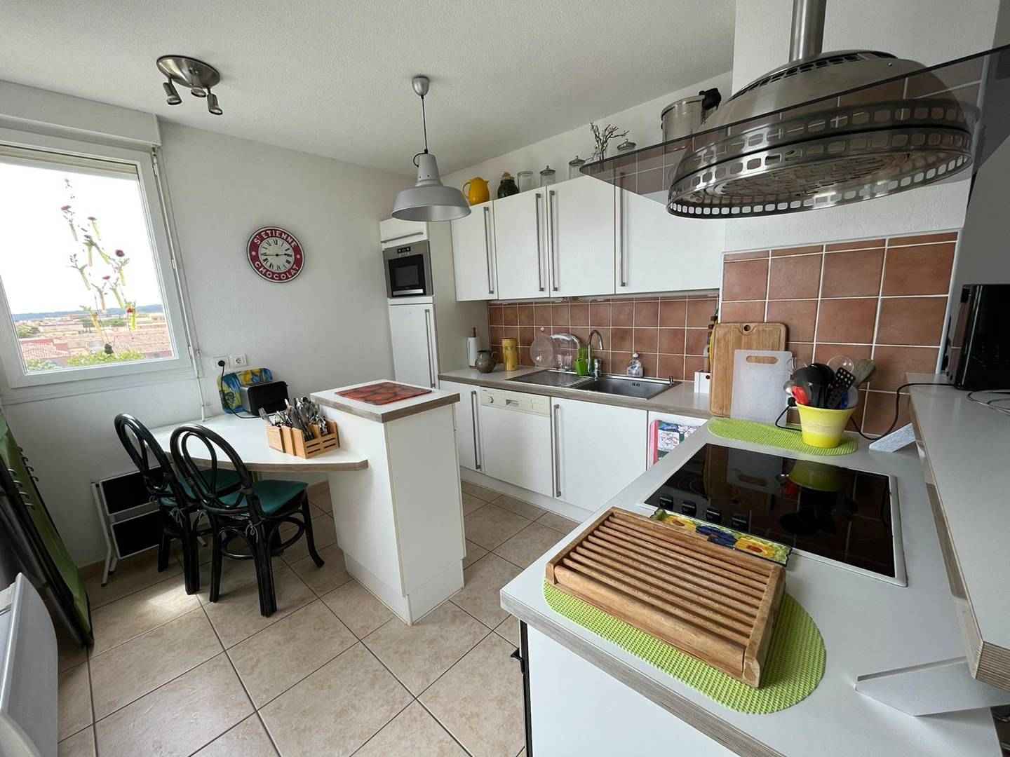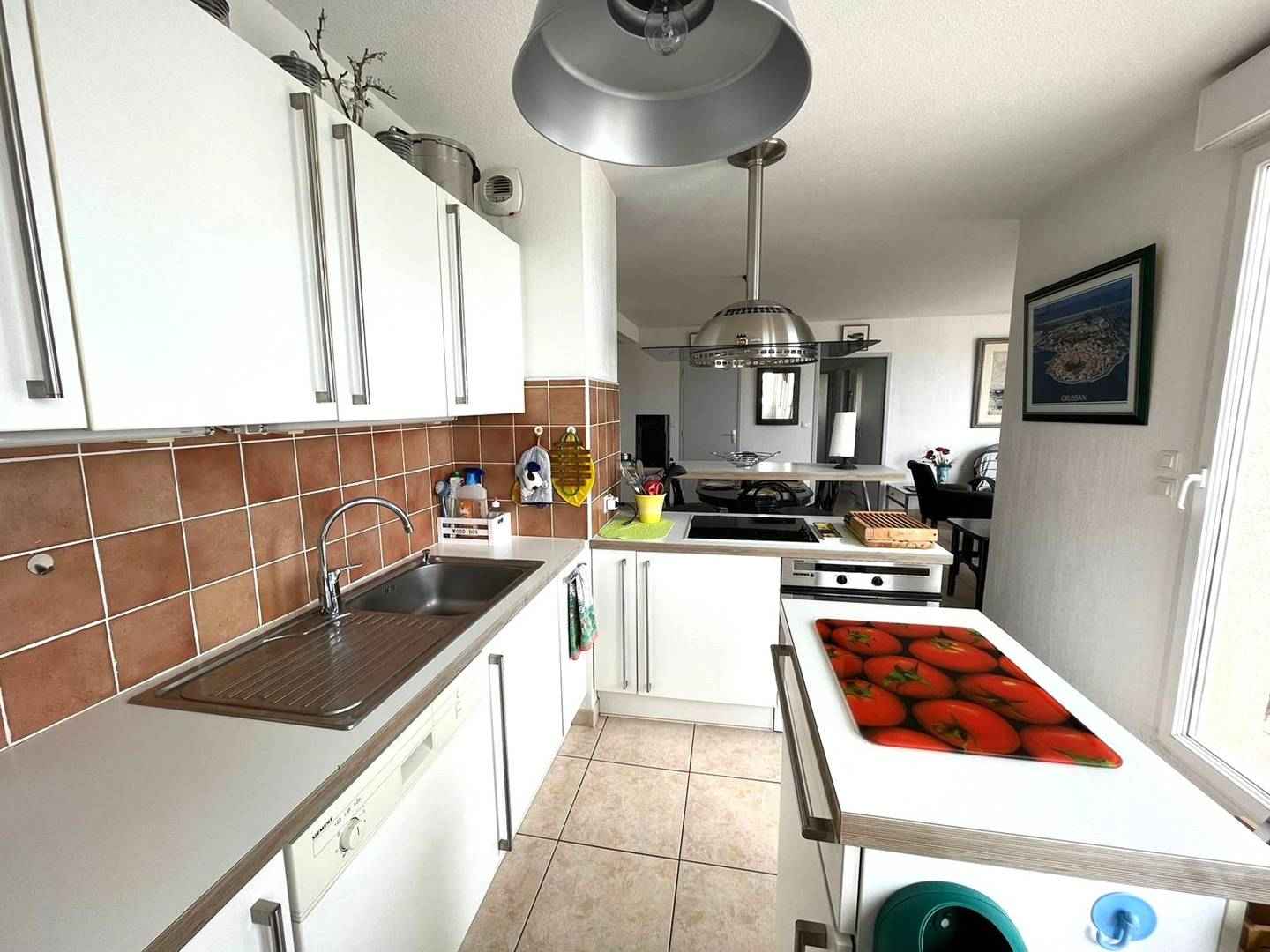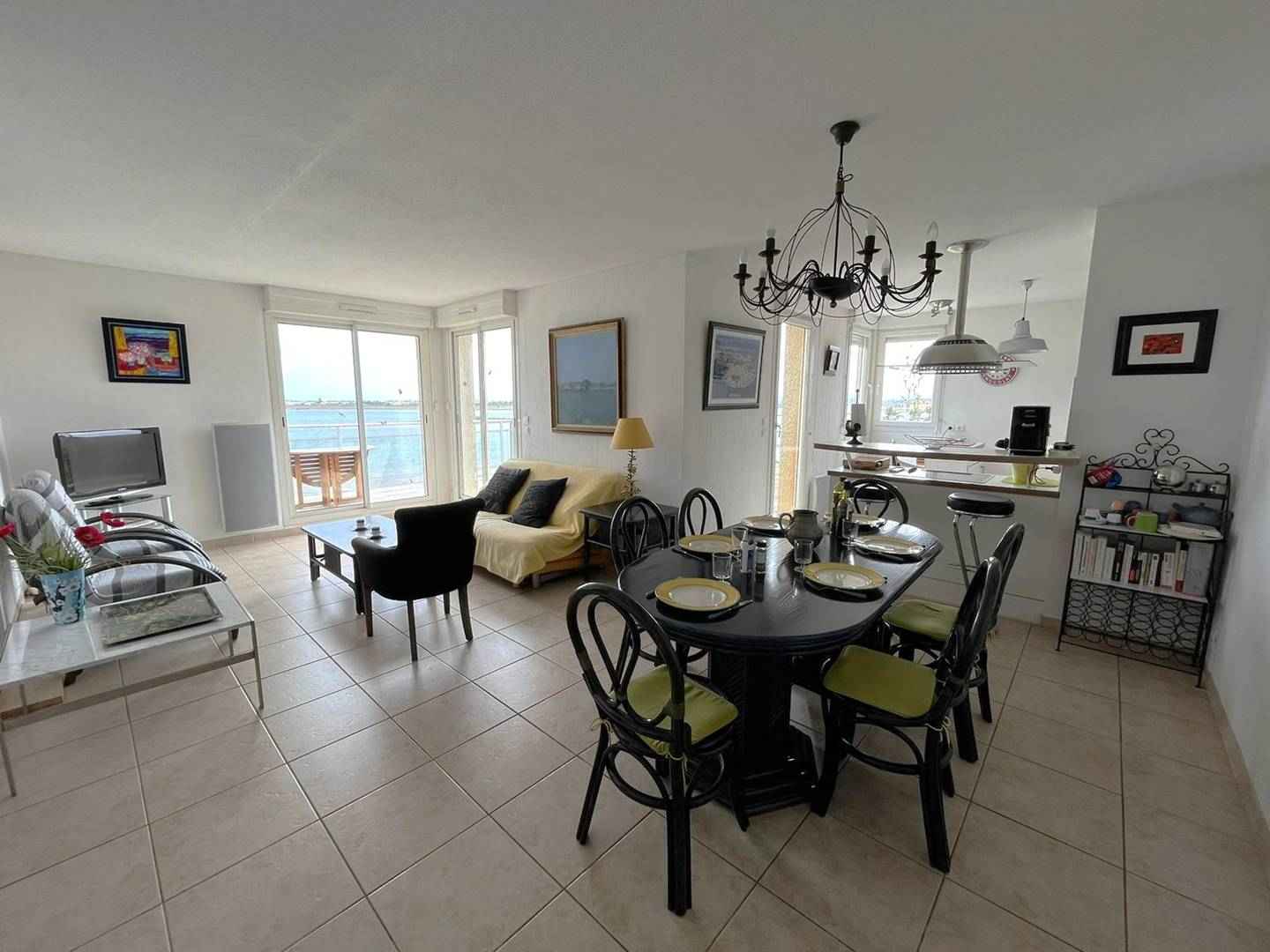 ascenseur, il est composé d’une cuisine entièrement équipée (Senseo, lave-vaisselle, lave-linge, plaque 4 feux, d’un réfrigérateur-congélateur, micro-ondes. La pièce de vie principale dispose d’un coin repas et d’un coin salon avec tv, vue mer et accès direct à la terrasse depuis le séjour cuisine.