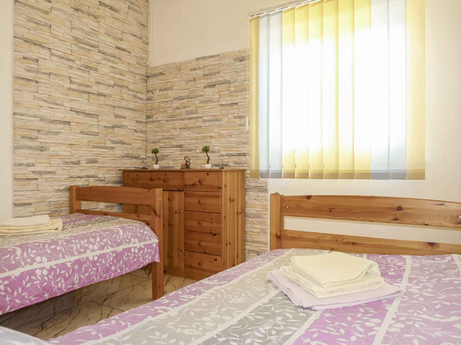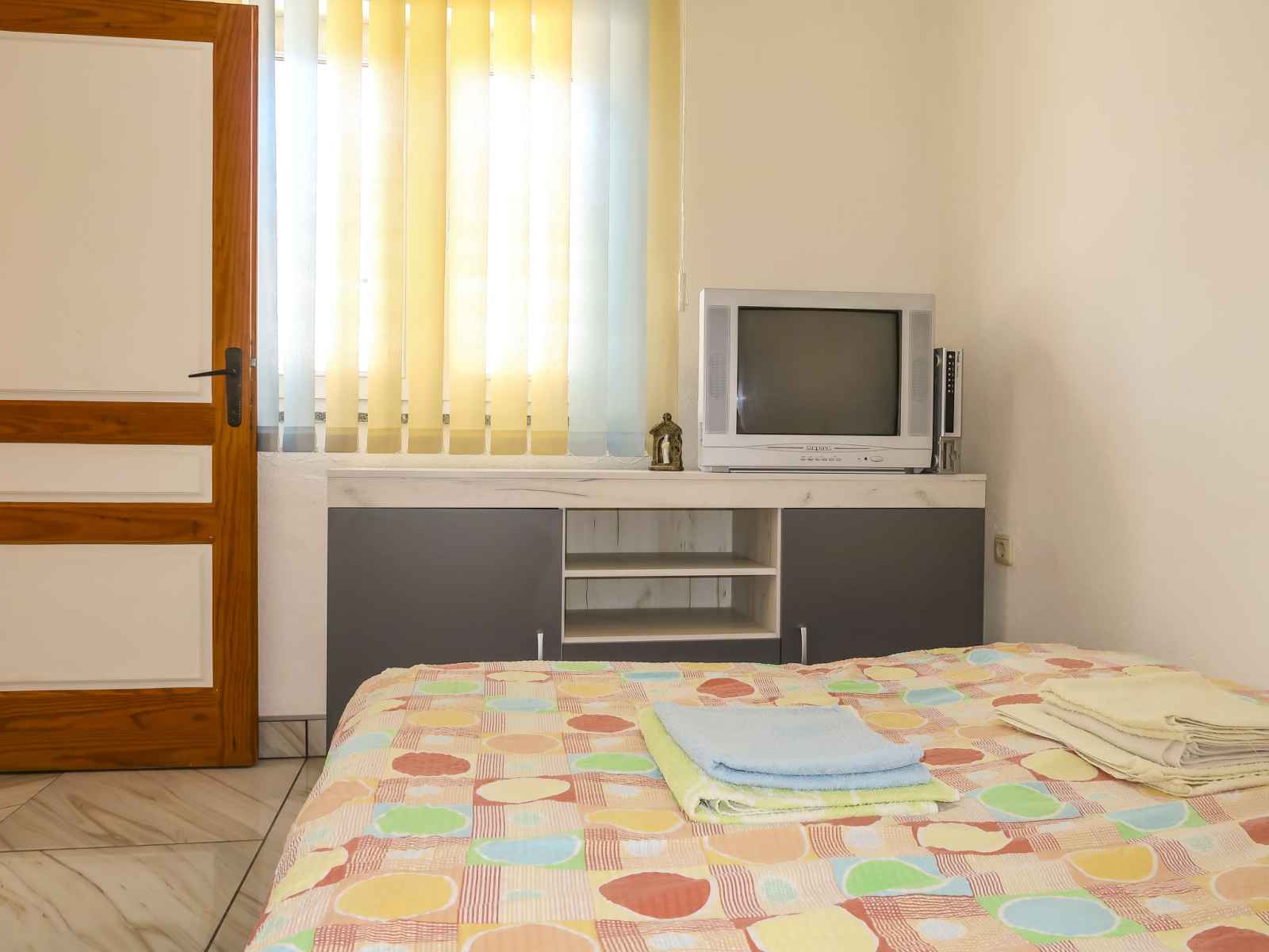 Apt 4 pièces 80 m2, au rez-de-chaussée. entrée avec air-conditionné. 1 chambre avec 1 divan-lit double (150 cm, longueur 190 cm), tv (satellite). 1 chambre avec 2 lits. salle à manger avec coin-cuisine. 1 chambre avec 1 grand-lit et tv (satellite). 1 chambre avec 1 x 2 lits superposés. salle à manger avec air-conditionné. sortie sur la