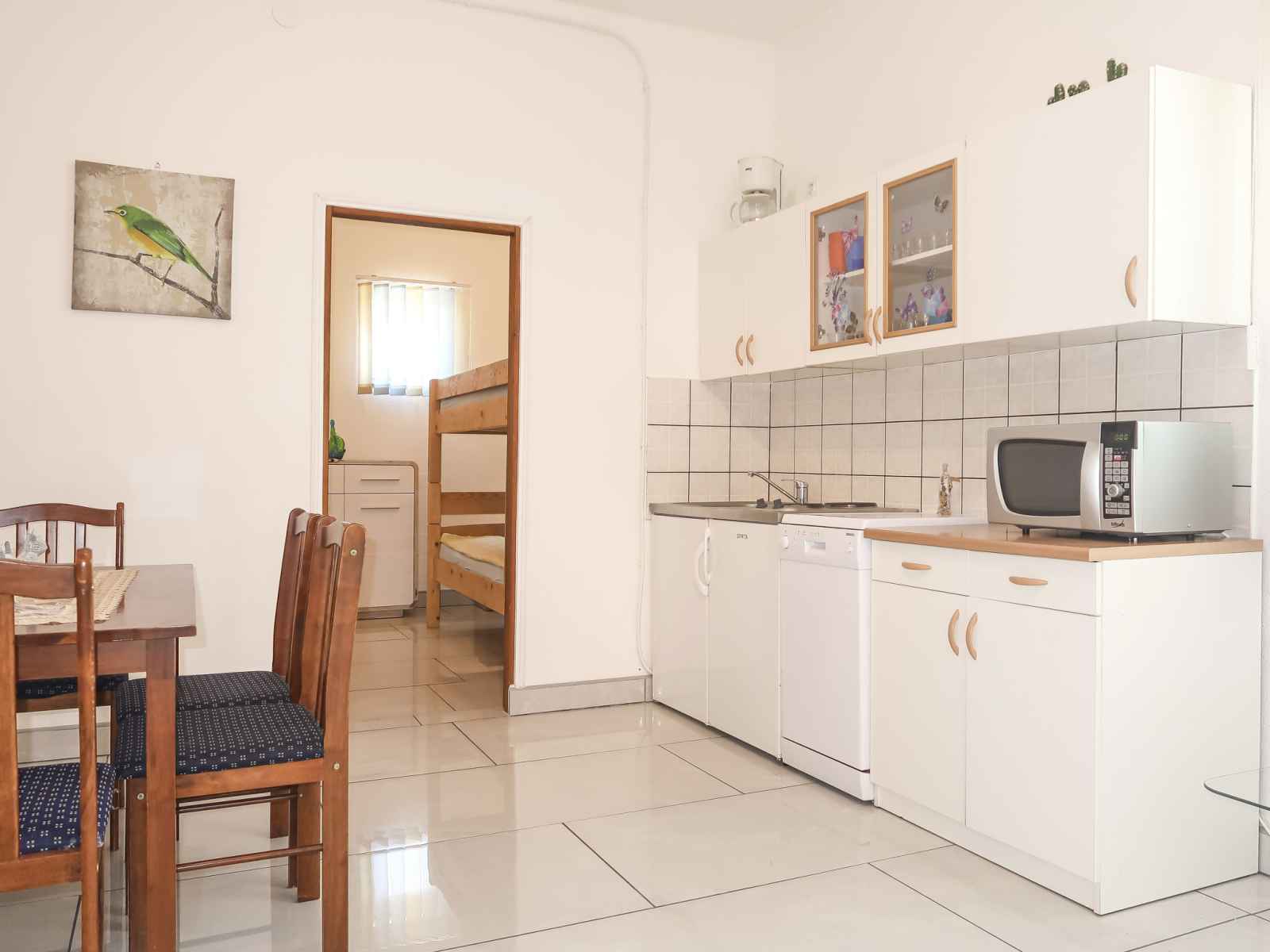terrasse. Cuisine ouverte (2 plaques de cuisson, lave-vaisselle, grille-pain, bouilloire électrique, micro-ondes, cafetière électrique). Douche, douche/WC, WC séparé. Pas de chauffage. Terrasse 20 m2. Meubles de terrasse. A disposition: lave-linge. Internet (Connexion WIFI, gratuit). Veuillez noter: maison non-fumeur. Pas de liaison interne entre les différentes unités. L'appartement est constitué de 2 appartements loués comme un seul appartement.