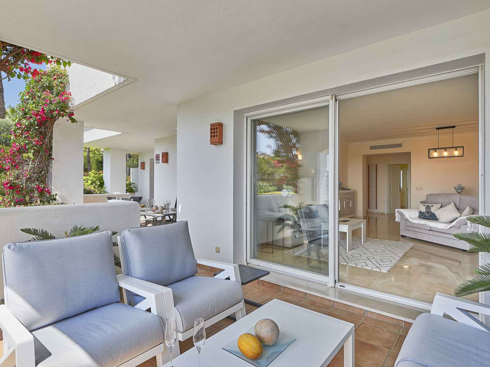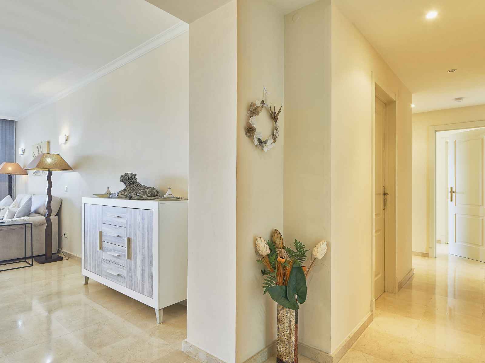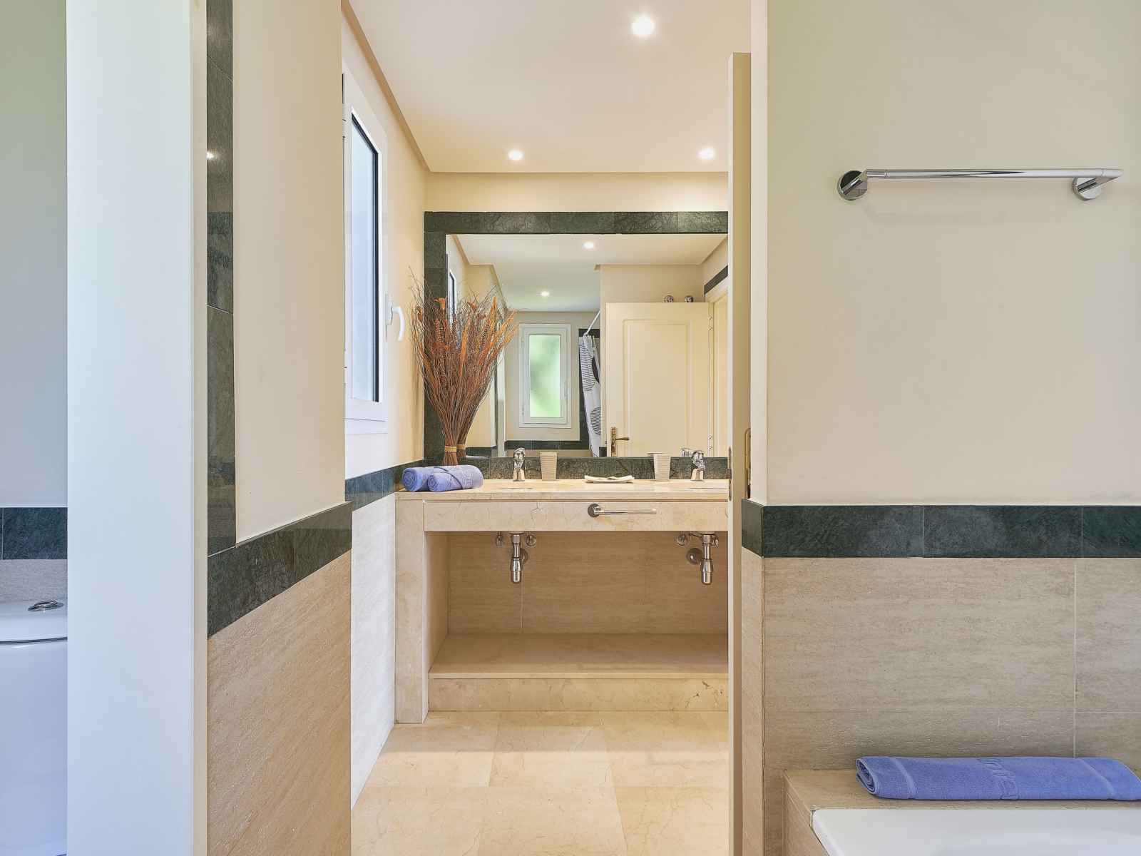"altos de la quinta", apt 4 pièces 150 m2, situation sud-ouest. aménagement confortable et agréable: séjour/salle à manger avec tv (satellite), dvd, air-conditionné et chauffage à air chaud. sortie sur la terrasse. 1 chambre avec 1 grand-lit (150 cm, longueur 200 cm), bain/bidet/wc et double vasque (privé). 1 chambre avec 2 lits (80 cm,