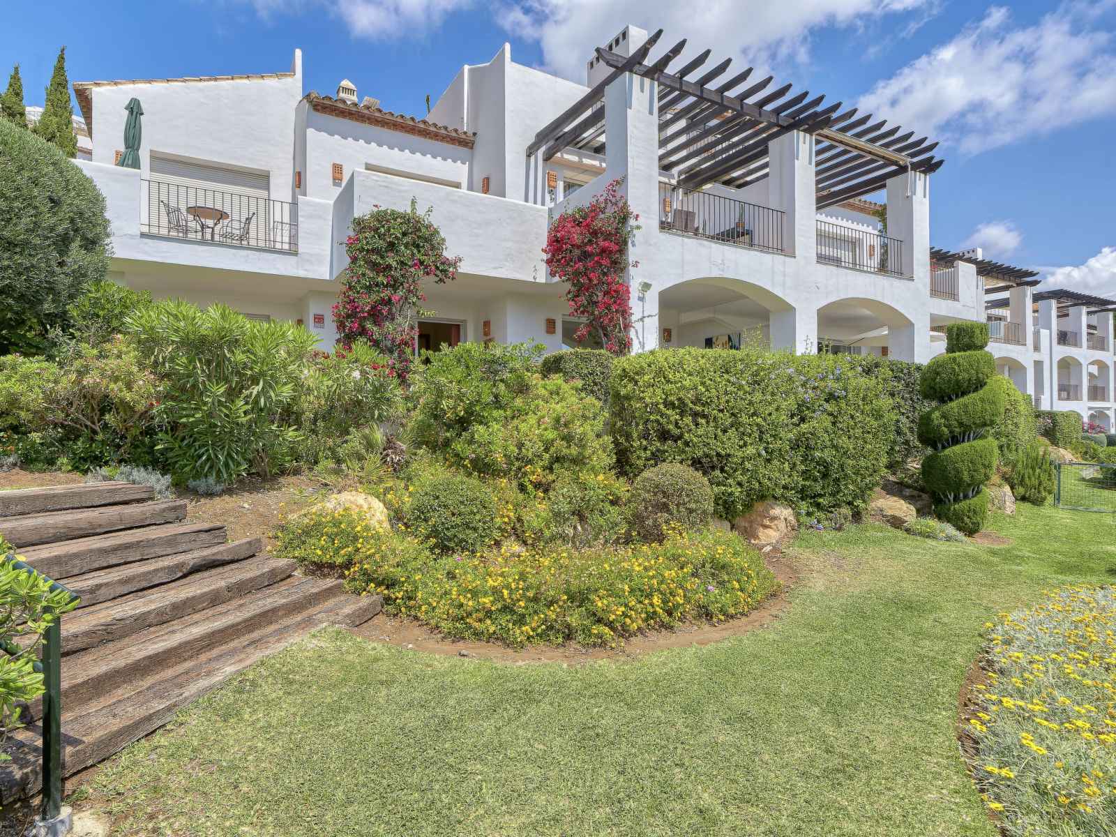 Petite résidence "altos de la quinta", année de construction 2005. À 15 km du centre de marbella en-dehors de la localité, à 7 km du centre de puerto banús, à 6 km de la mer, en bordure du terrain de golf. en commun: jardin avec pelouse, piscine (disponibilité saisonnière: 01.jan. - 31.dec.). place de parking no 2701. supermarché 3 km,