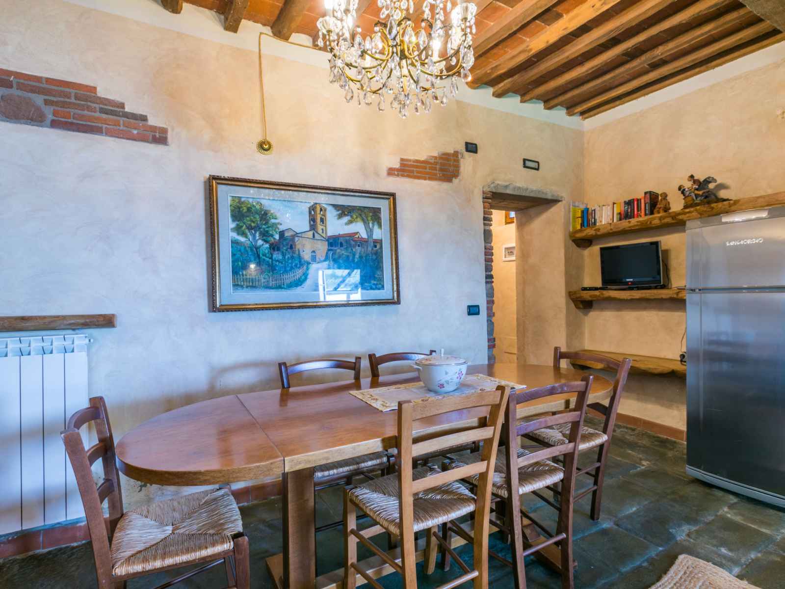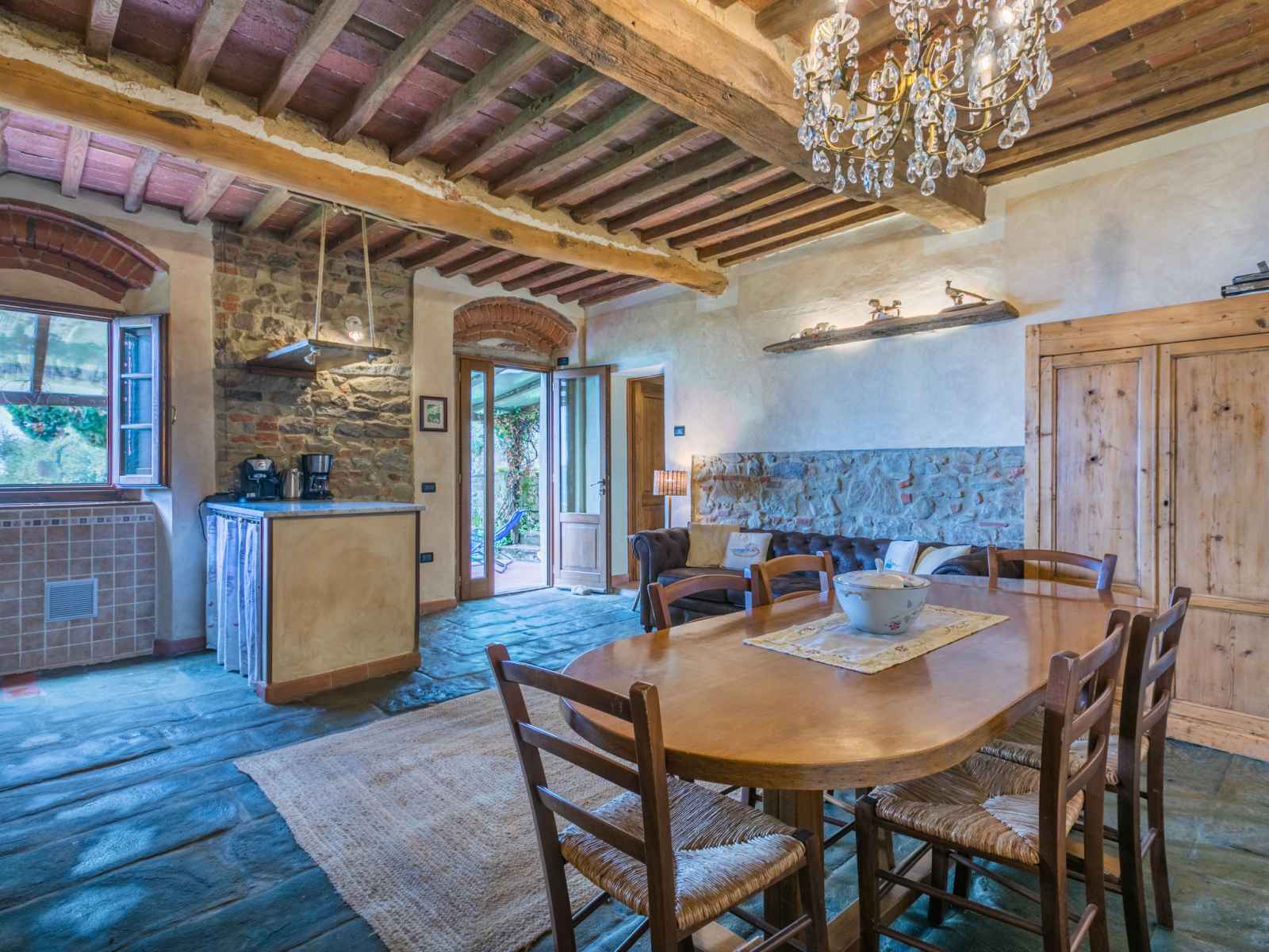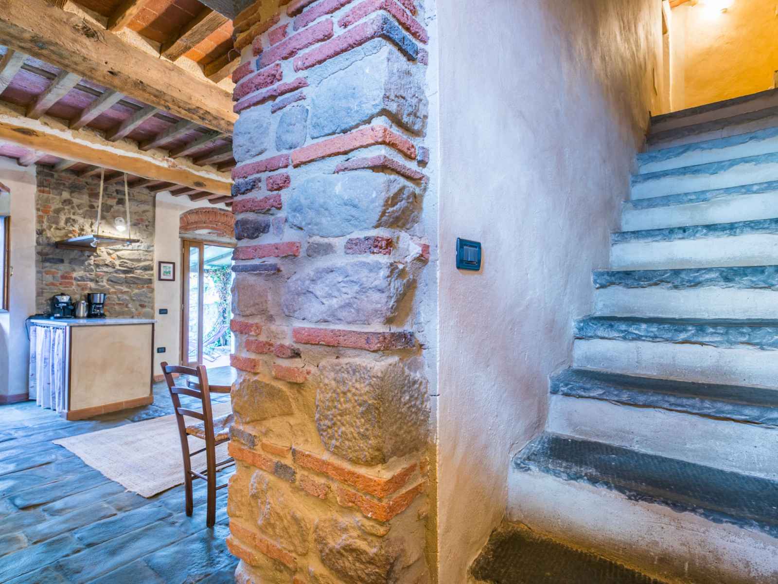"la cupola: tulipano", apt 4 pièces 88 m2 sur 2 niveaux. rénové en 2016, aménagement agréable et rustique: séjour avec cheminée, table pour les repas et tv (satellite). 1 chambre avec 1 grand-lit (160 cm), douche/wc. cuisine ouverte (mini-four, lave-vaisselle, 4 feux, congélateur, cafetière électrique). À l'étage supérieur: 2