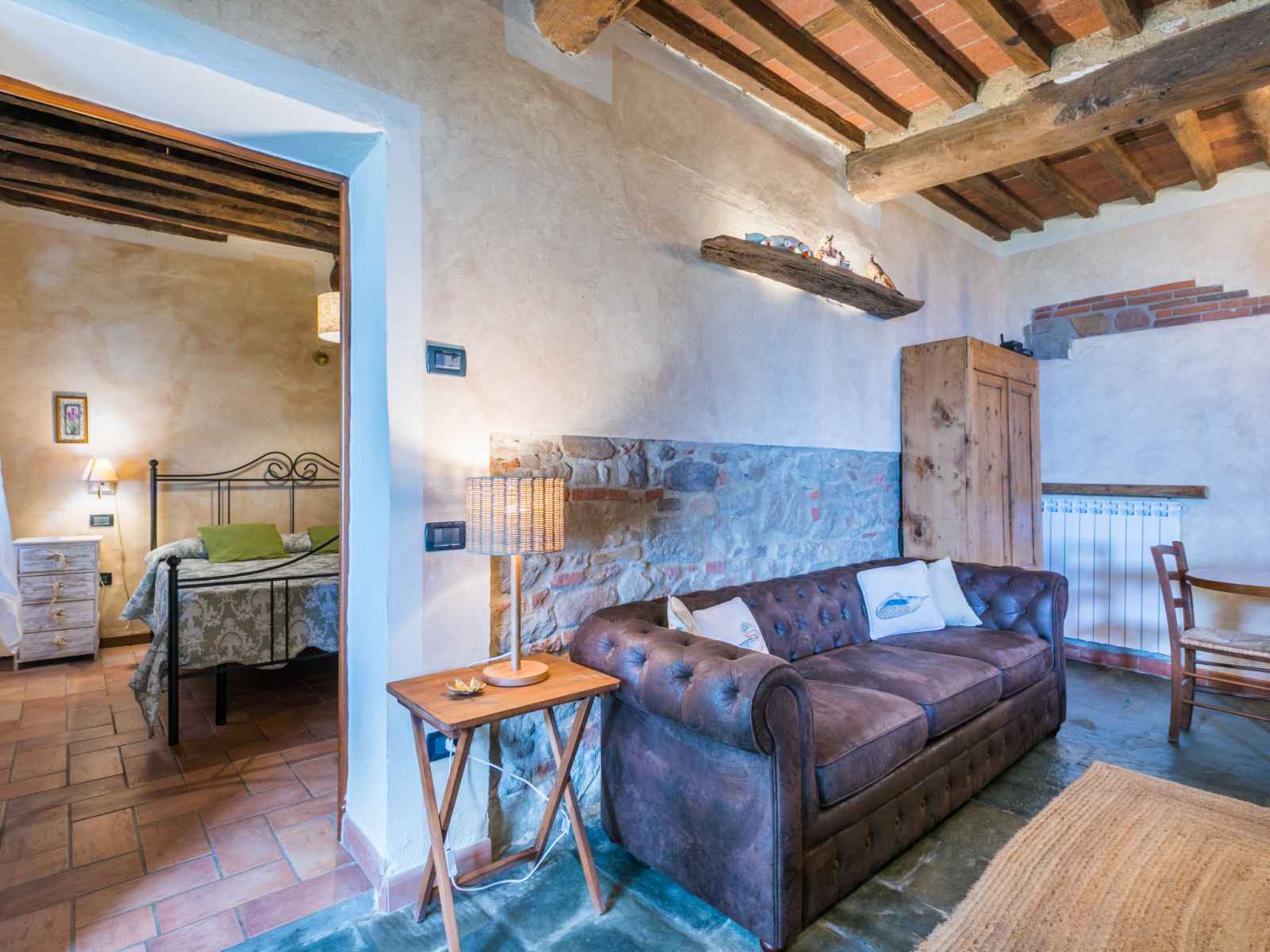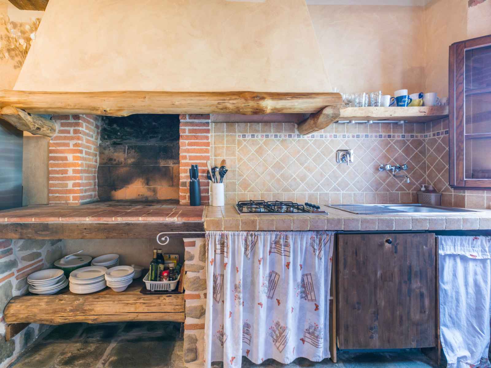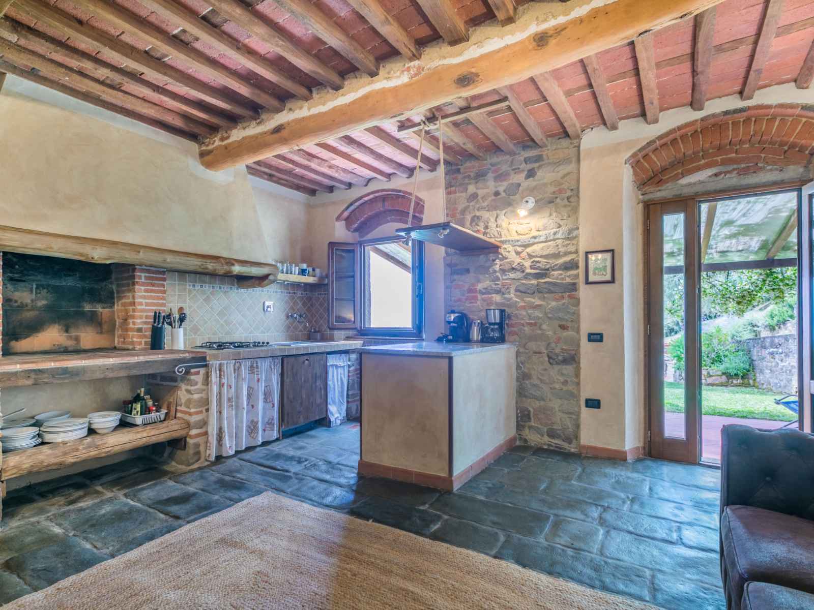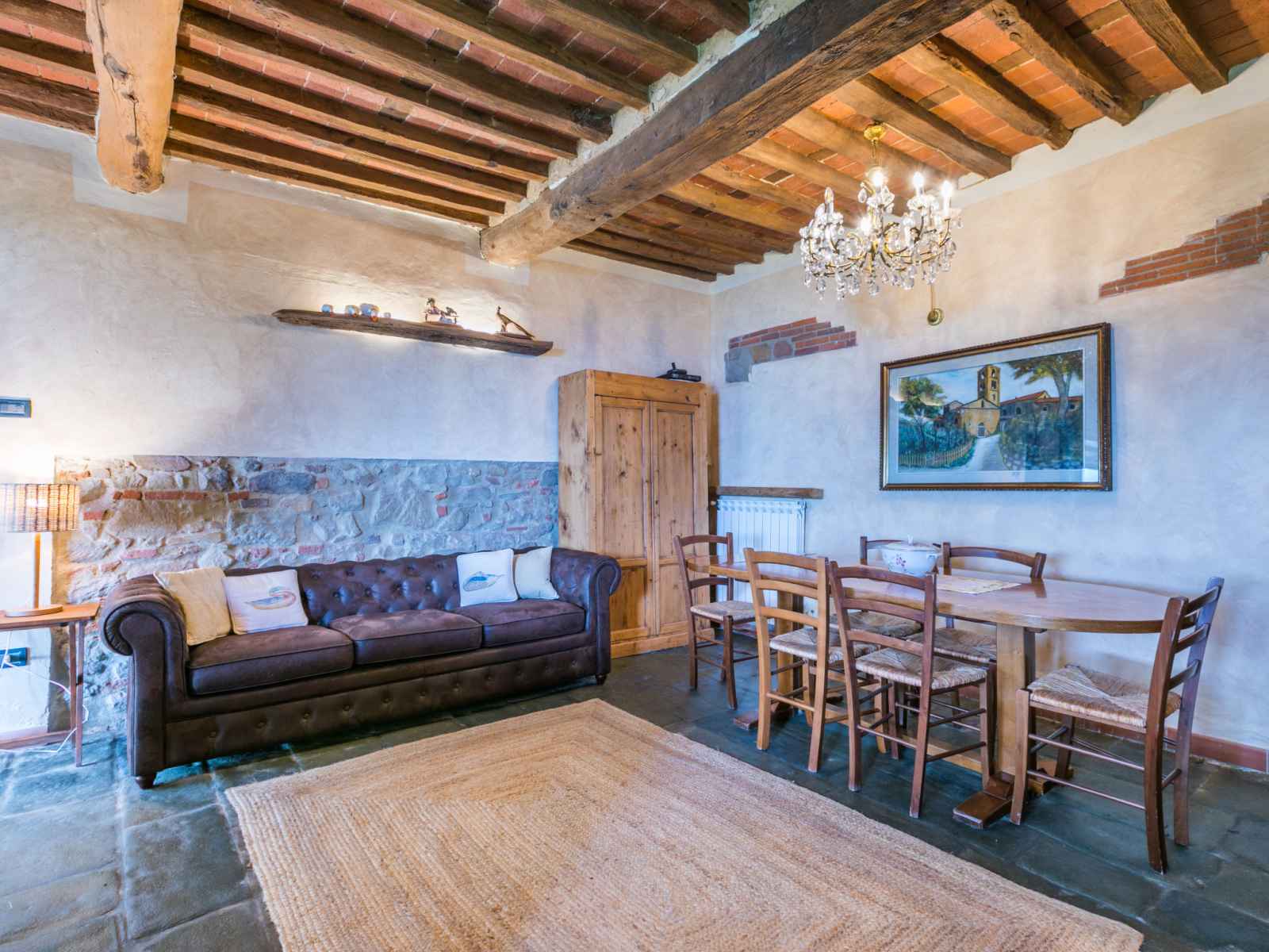 "la cupola: tulipano", apt 4 pièces 88 m2 sur 2 niveaux. rénové en 2016, aménagement agréable et rustique: séjour avec cheminée, table pour les repas et tv (satellite). 1 chambre avec 1 grand-lit (160 cm), douche/wc. cuisine ouverte (mini-four, lave-vaisselle, 4 feux, congélateur, cafetière électrique). À l'étage supérieur: 2
