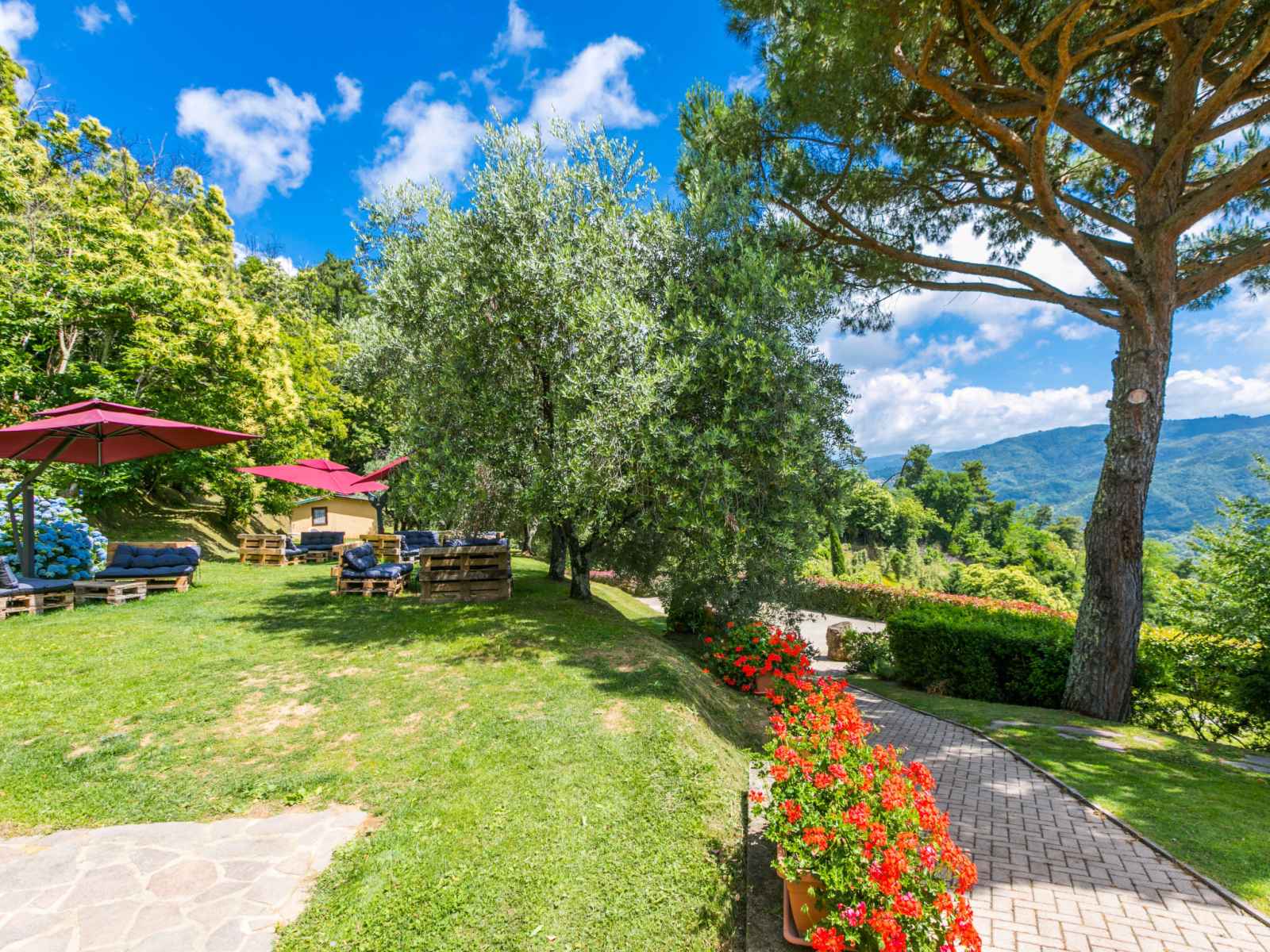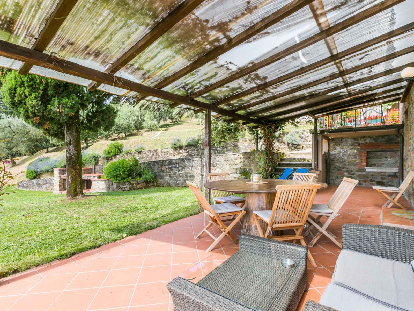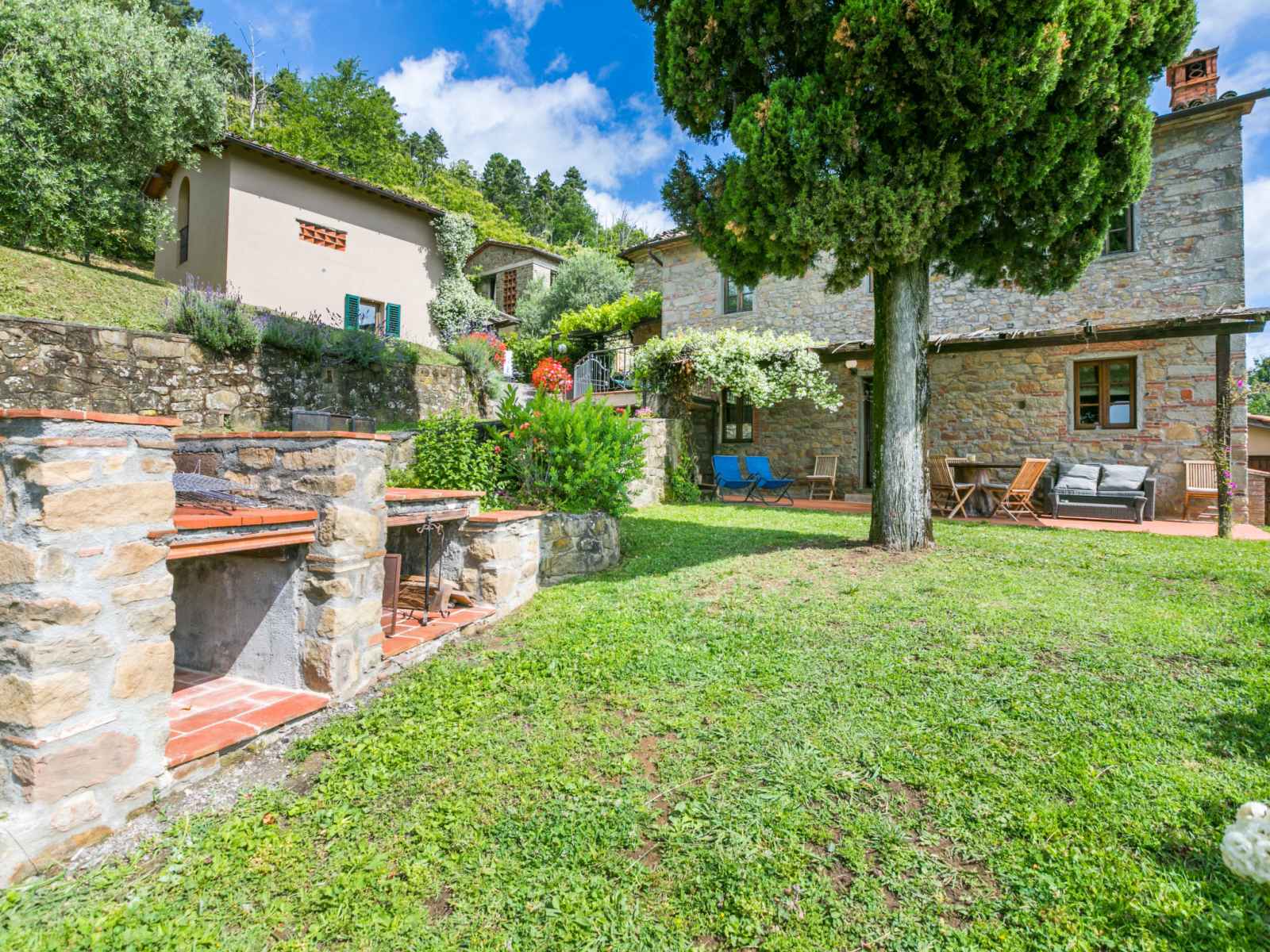 40'000 m2, jardin sur plusieurs niveaux (pas clôturé) avec plantes, champ, piscine (19 x 8 m, profondeur 120 - 160 cm, disponibilité saisonnière: 26.avr. - 27.sep.). bassin pour les enfants, pergola, meubles de jardin, barbecue. infrastructures de la maison: connexion wifi, chauffage central, lave-linge (en commun), chauffage payable localement, possibilité de chauffage uniquement du 01.nov. - 30.mar.. accès en voiture par un chemin raide de 600 m de long (chemin non goudronné). place de parking sur le terrain. borne de recharge électrique. supermarché 5.5 km, arrêt de bus 3 km, plage de sable "viareggio" 57 km. terrain de golf (18 trous) 14 km. attractions à proximité: collodi 9 km, montecarlo 11 km, montecatini terme 13 km, vinci, pistoia 32 km, san miniato 38 km. résidence avec portail électrique.