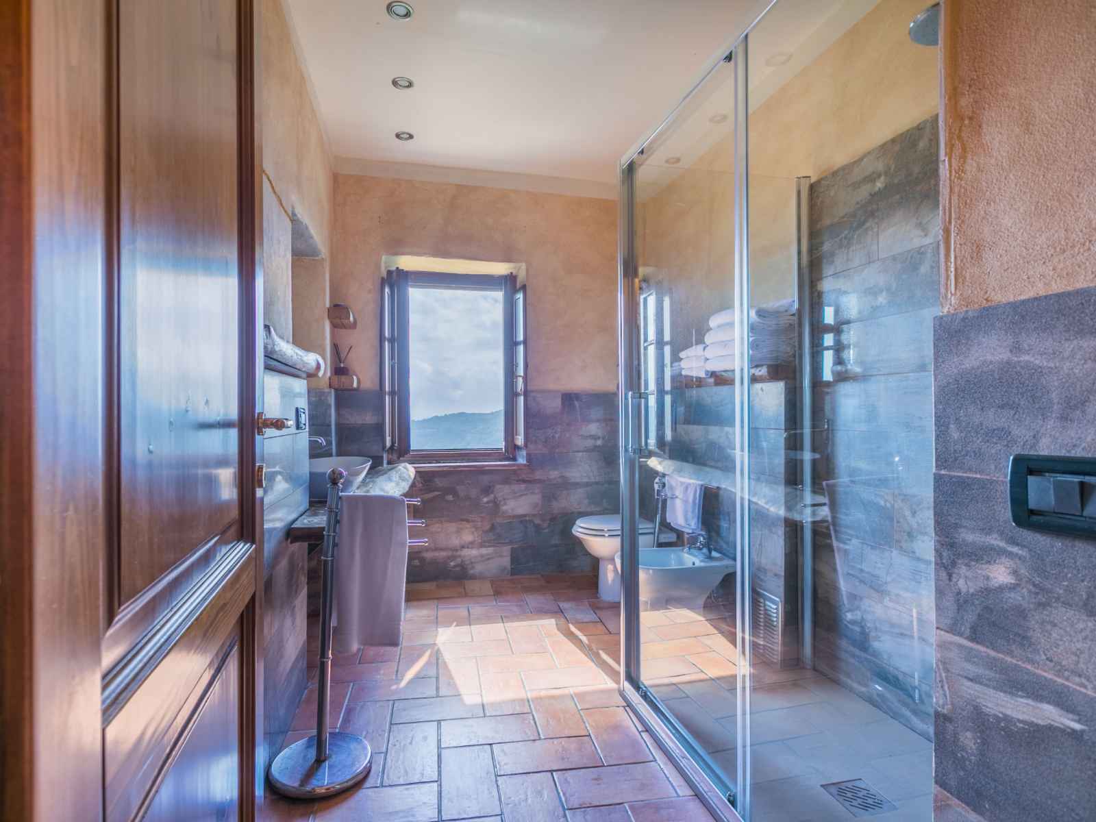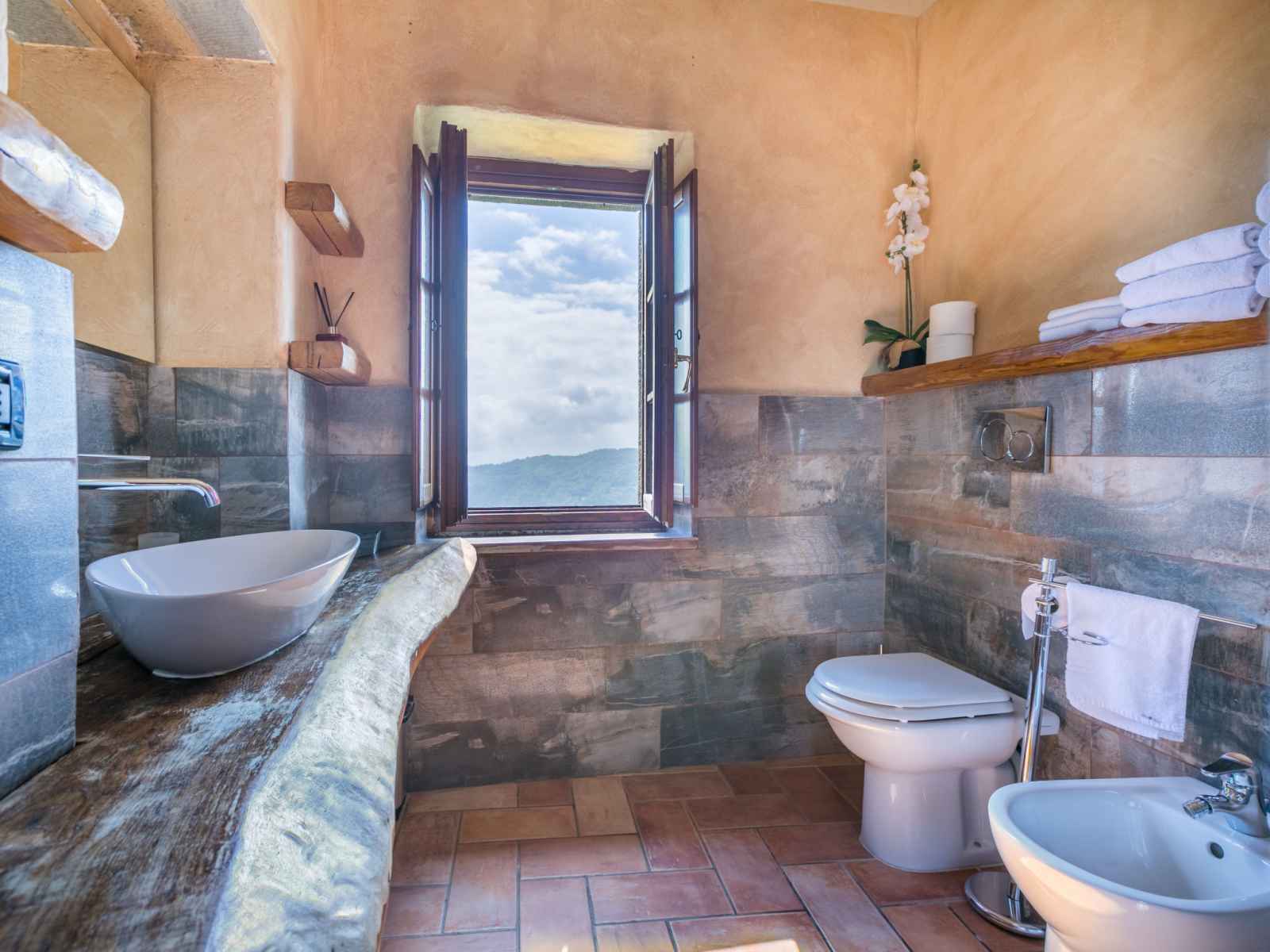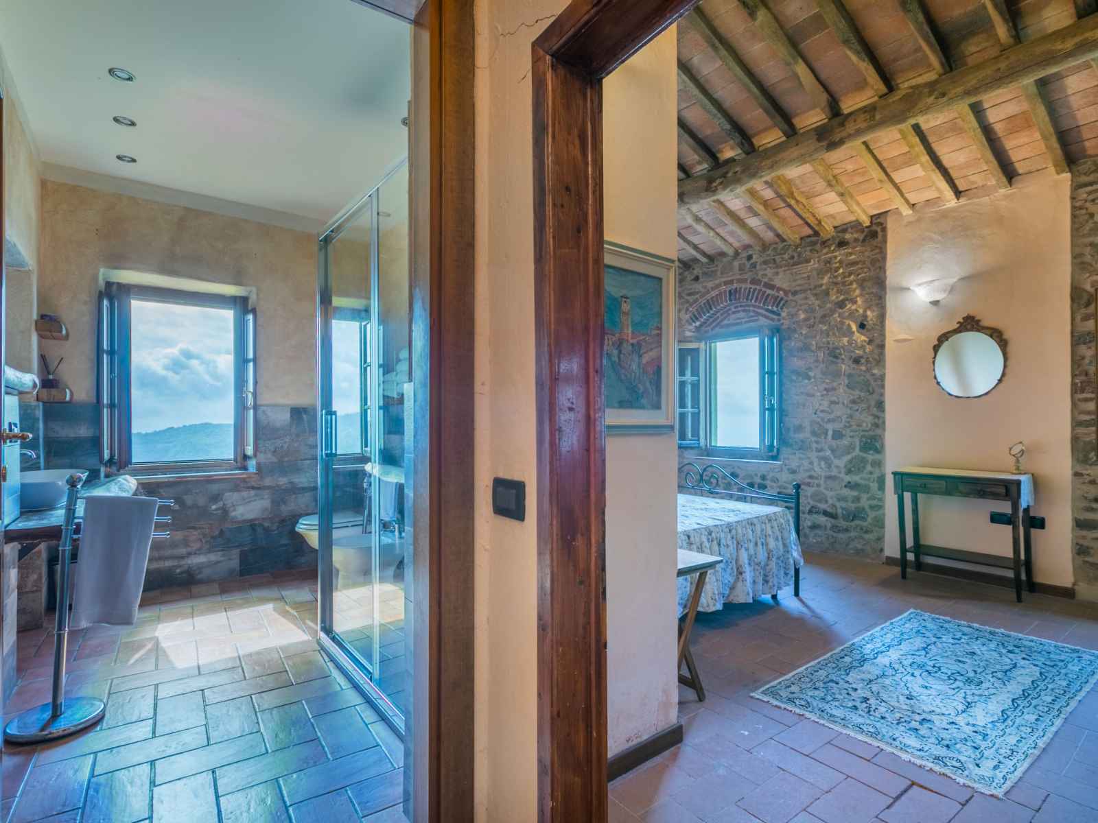 chambres, chaque chambre avec: 1 grand-lit (160 cm). Douche/WC. Chauffage au gaz. Terrasse couverte, jardinet. Meubles de terrasse. Très belle vue panoramique. A disposition: chaise haute pour enfant, lit bébé jusqu'à 2 ans. Internet (Connexion WIFI, gratuit). Veuillez noter: logement non-fumeur. Entrée privée, détecteur de fumée, extincteur. La chambre et la salle de bain du rez-de-chaussée sont adaptées aux personnes à mobilité réduite. IT047012B5NFRBJ2HH