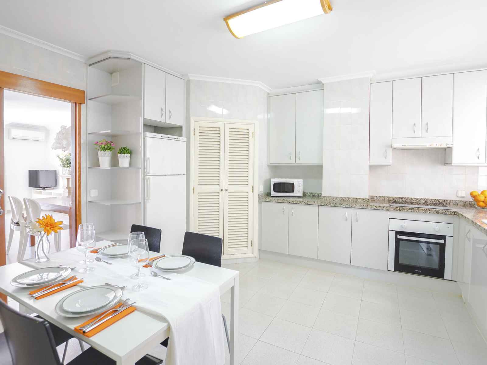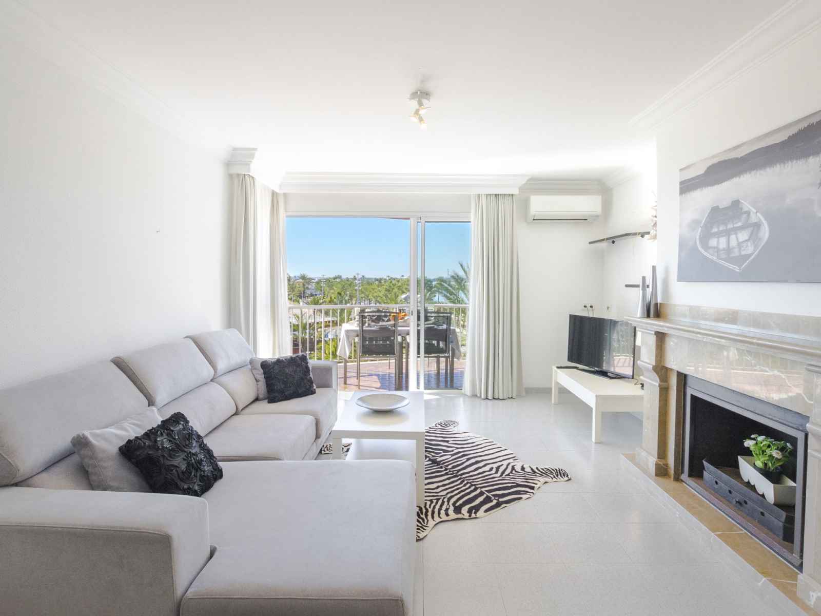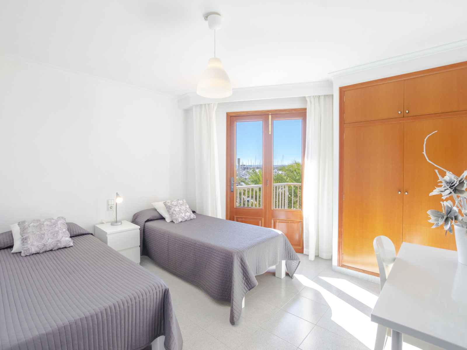 terrasse. 1 chambre double avec 1 grand-lit (140 cm, longueur 190 cm). 1 chambre double avec 2 lits (90 cm, longueur 190 cm), air-conditionné et chauffage à air chaud. Cuisine (four, lave-vaisselle, 3 plaques vitrocéramiques, micro-ondes, congélateur) avec table pour les repas. Bain/bidet/WC, douche/WC. Air-conditionné. Pas de chauffage. Grand balcon. Meubles de terrasse. Superbe vue sur la mer, le port et la baie. A disposition: lave-linge, fer à repasser, sèche-cheveux. Internet (Connexion WIFI, gratuit). Adapté(e) aux familles. ETVPL12536 // Reg. Nr.: ESFCTU00000704300011087700000000000000000ETVPL/125367
