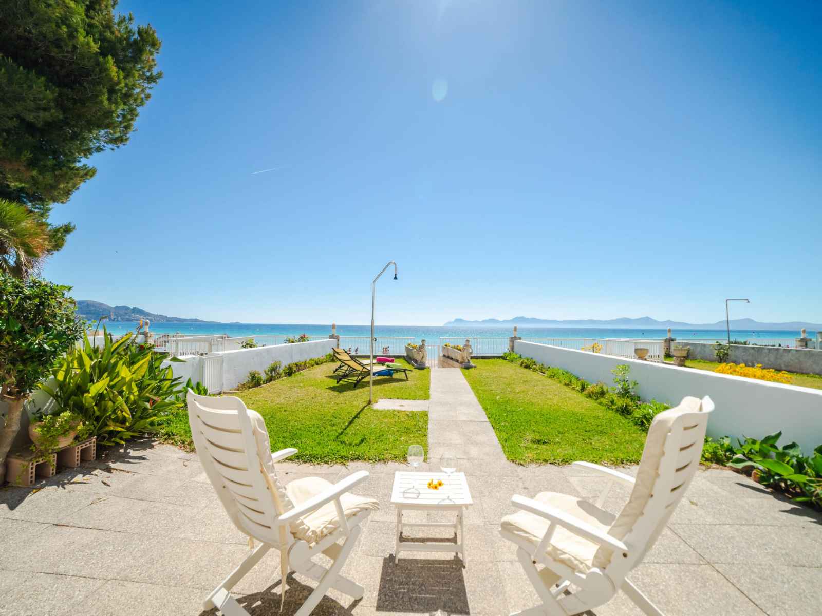 Port d'alcúdia: grande petite résidence accueillante "sa mirada". dans la localité, à 2.5 km du centre, situation tranquille, ensoleillée, à 2.5 km de la forêt, à 3 m de la mer, à, de la plage, accès direct à la plage. a usage privé: jardin avec pelouse et plantes. douche extérieure, jardinet, tonnelle, pergola, meubles de jardin.