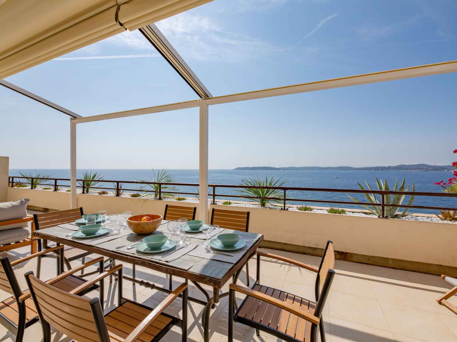 Cuisine ouverte (four, lave-vaisselle, 4 plaques vitrocéramiques, grille-pain, bouilloire électrique, micro-ondes, congélateur, cafetière électrique). Douche, WC séparé. Air-conditionné, chauffage à air chaud. À l'étage supérieur: 1 chambre, sans fenêtre avec 1 grand-lit (1 x 160 cm, longueur 200 cm), douche/bidet/WC. Grande terrasse 50 m2, situation sud. Meubles de terrasse. Vue panoramique sur la mer. A disposition: lave-linge, fer à repasser, sèche-cheveux. Internet (Connexion WIFI, en sus). Place de parking à 750 m. Veuillez noter: logement non-fumeur parking pour 1 petite voiture. Maximum 1 animal/ chien autorisé. Détecteur de fumée. Annonce d'un particulier (art 155, IV du CGI). 83115005138HT