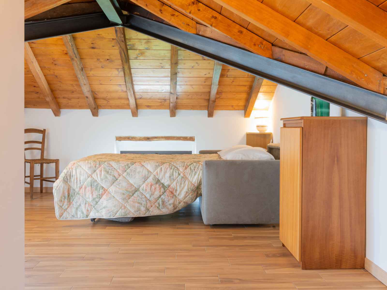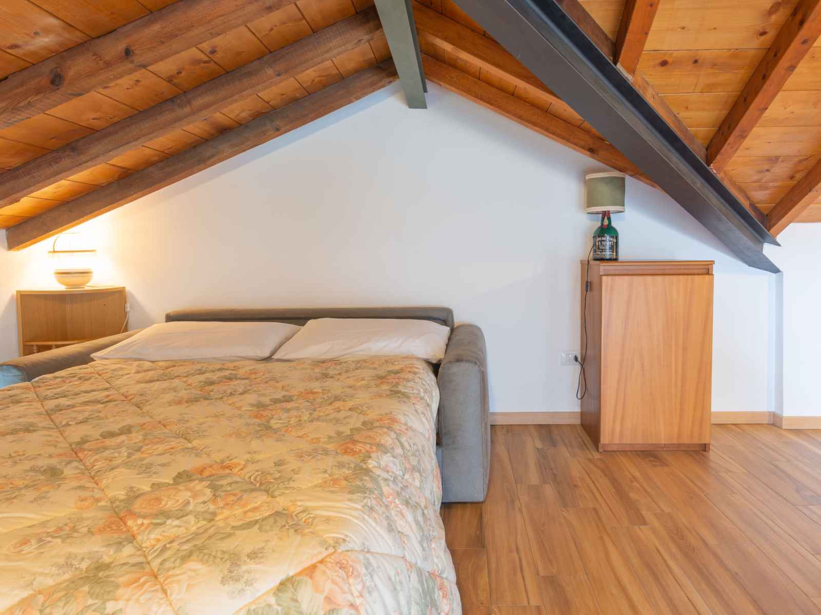 repas, TV (satellite). Sortie sur le balcon. Douche/WC. Sous le toit: 1 chambre, mansardée, ouverte, sans armoire avec 1 divan-lit double. Sortie sur la terrasse. WC séparé. Chauffage au gaz. Balcon 6 m2, terrasse 10 m2. Mobilier de balcon, chaises longues (2). Superbe vue sur le lac et les montagnes. A disposition: lit bébé jusqu'à 2 ans. Internet (Connexion WIFI, gratuit). Veuillez noter: logement non-fumeur. IT097067C2CFQLOTSN