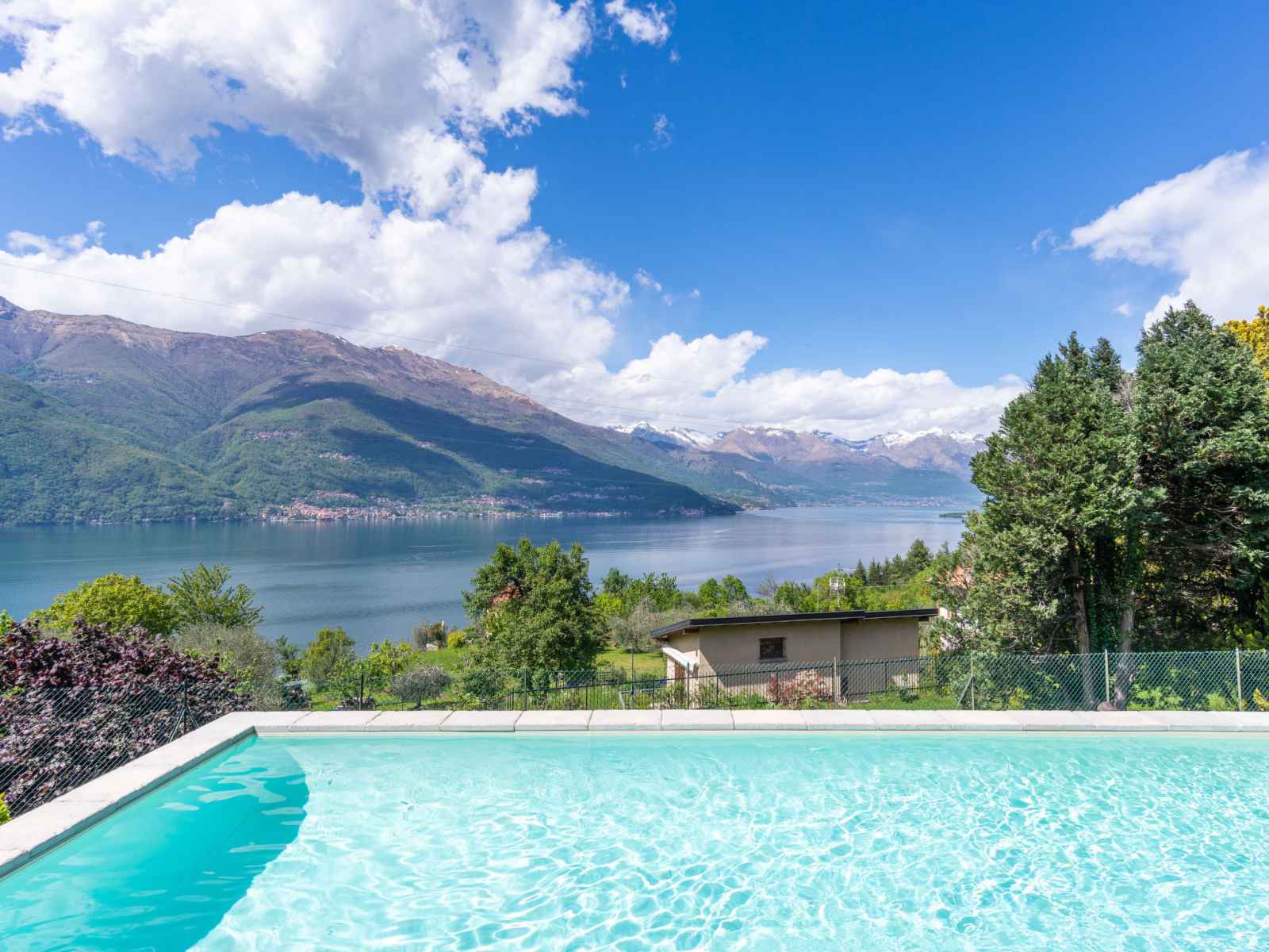 saisonnière: 30.avr. - 31.oct.) avec systeme d'électolyseur au sel. terrasse, meubles de jardin, barbecue. entretien de la piscine par le propriétaire/jardinier. infrastructures de la maison: réduit pour bicyclettes, lave-linge, sèche-linge (en commun). accès en voiture par un chemin étroite de 2.5 km de long (route de montagne). 20 m sentier (15 marches) jusqu'à la maison. parking public 20 m. magasins 2.5 km, supermarché 3.5 km, arrêt de bus "perledo" 2.8 km, gare ferroviaire "varenna" 3.5 km, plage de graviers "lido di gittana" 1.3 km (petit[e]), plage de gazon "bellano" 3.5 km. terrain de golf (18 trous) 12 km, chemins de randonnées pédestres depuis la maison 100 m. région de randonnées: sentiero del viandante.