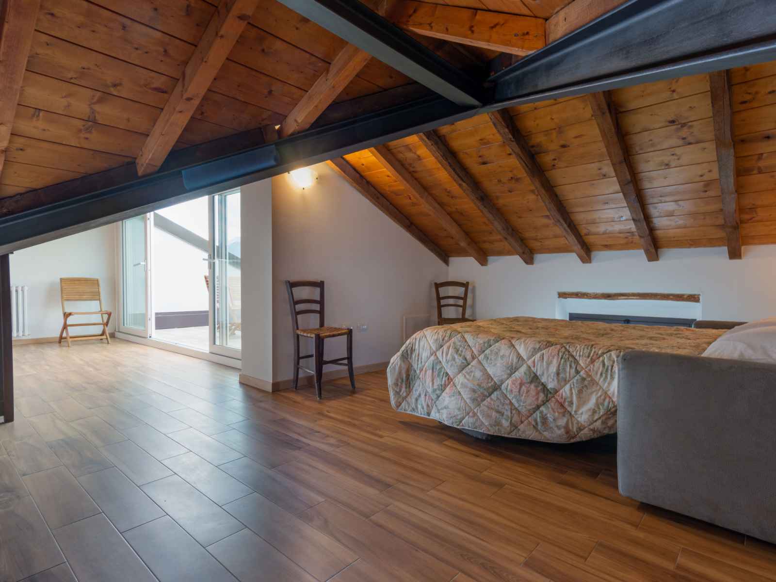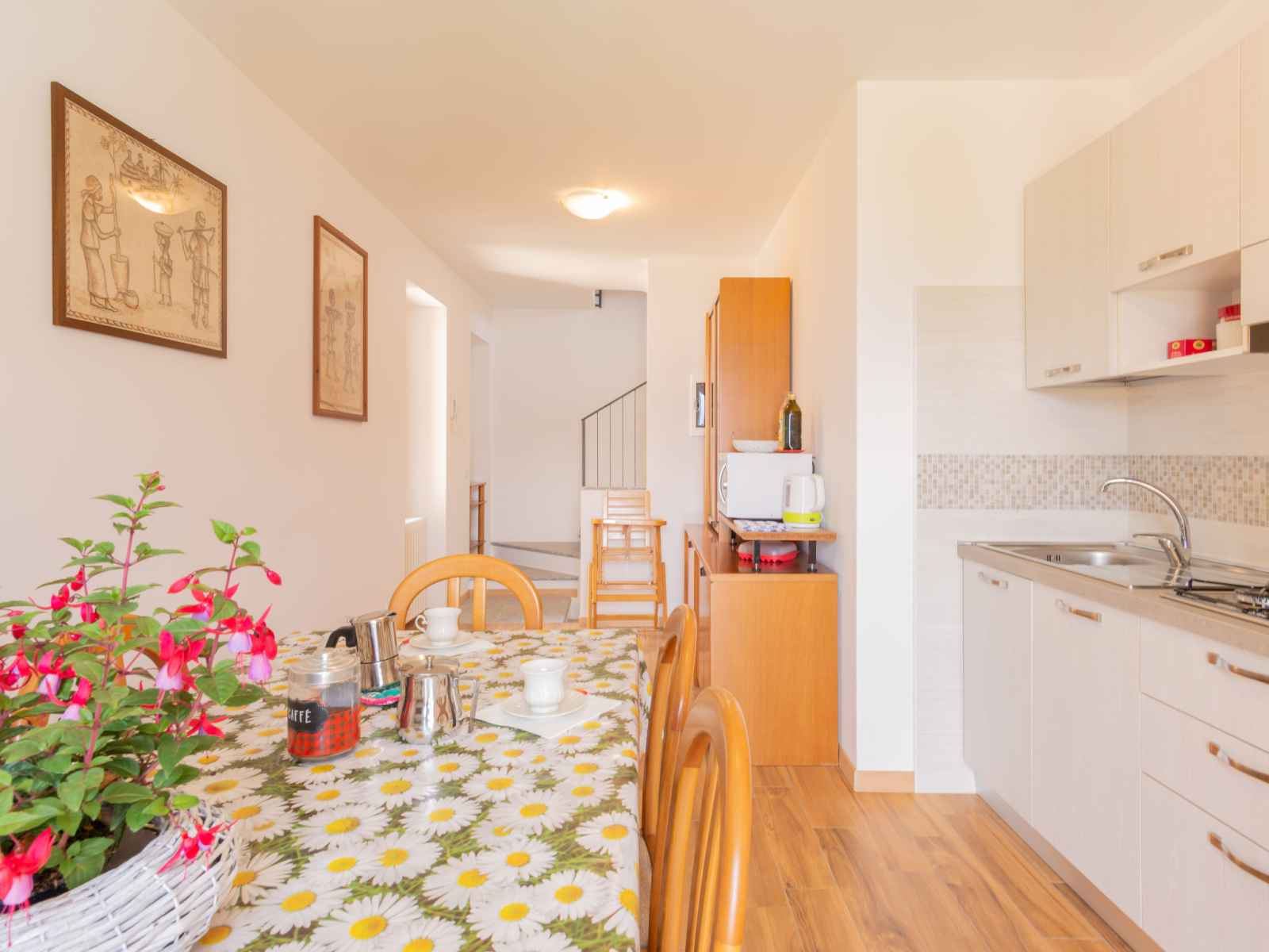 "alloro", apt 4 pièces sur 2 niveaux au 2ème étage. spacieux et clair, aménagement confortable: 2ème étage: 1 chambre double avec 1 lit double. sortie sur le balcon. 1 chambre avec 1 x 2 lits superposés. cuisine/séjour (4 plaques de cuisson, lave-vaisselle, grille-pain, bouilloire électrique, micro-ondes, congélateur) avec table pour les