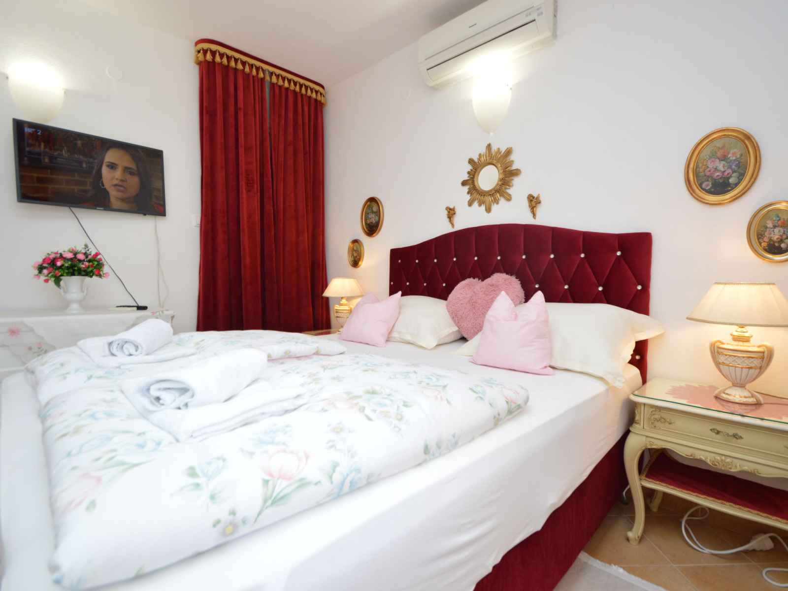 2 lits (90 cm, longueur 200 cm). Cuisine ouverte (four, lave-vaisselle, 4 plaques vitrocéramiques, bouilloire électrique, micro-ondes, congélateur, cafetière électrique). Bain/bidet/WC, WC séparé. Pas de chauffage. Terrasse 30 m2, couverte. Meubles de terrasse, barbecue. A disposition: lave-linge, lit bébé. Internet (Connexion WIFI, gratuit). Veuillez noter: entrée privée. 26017368543