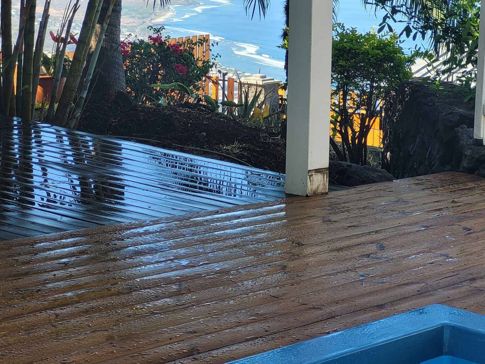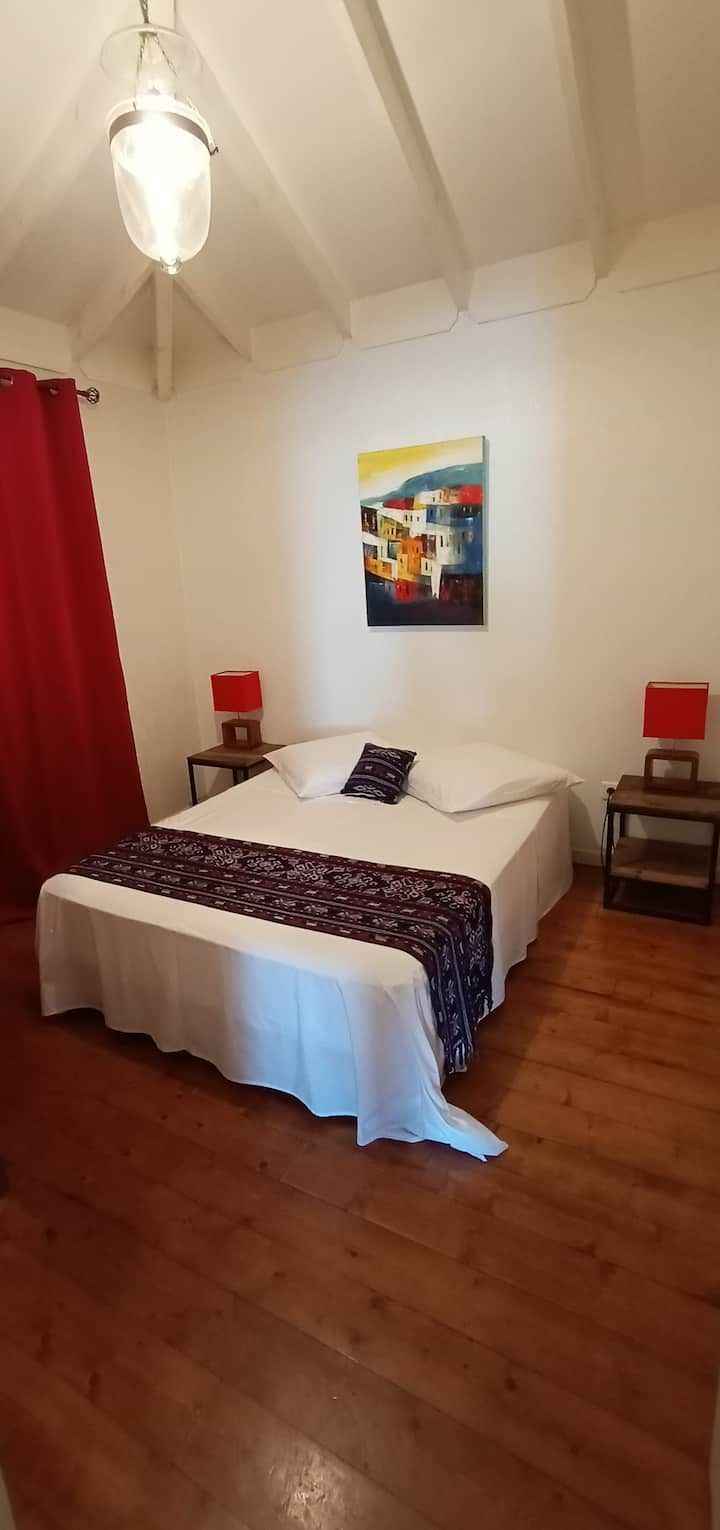centre ville. Vous apprécierez l’accès rapide à la route des Tamarins, l'axe routier principal de l'ouest de la Réunion. Un garage ouvert est réservé pour la maison. Animaux acceptés L'accès se fait par un escalier muni d'une main courante.