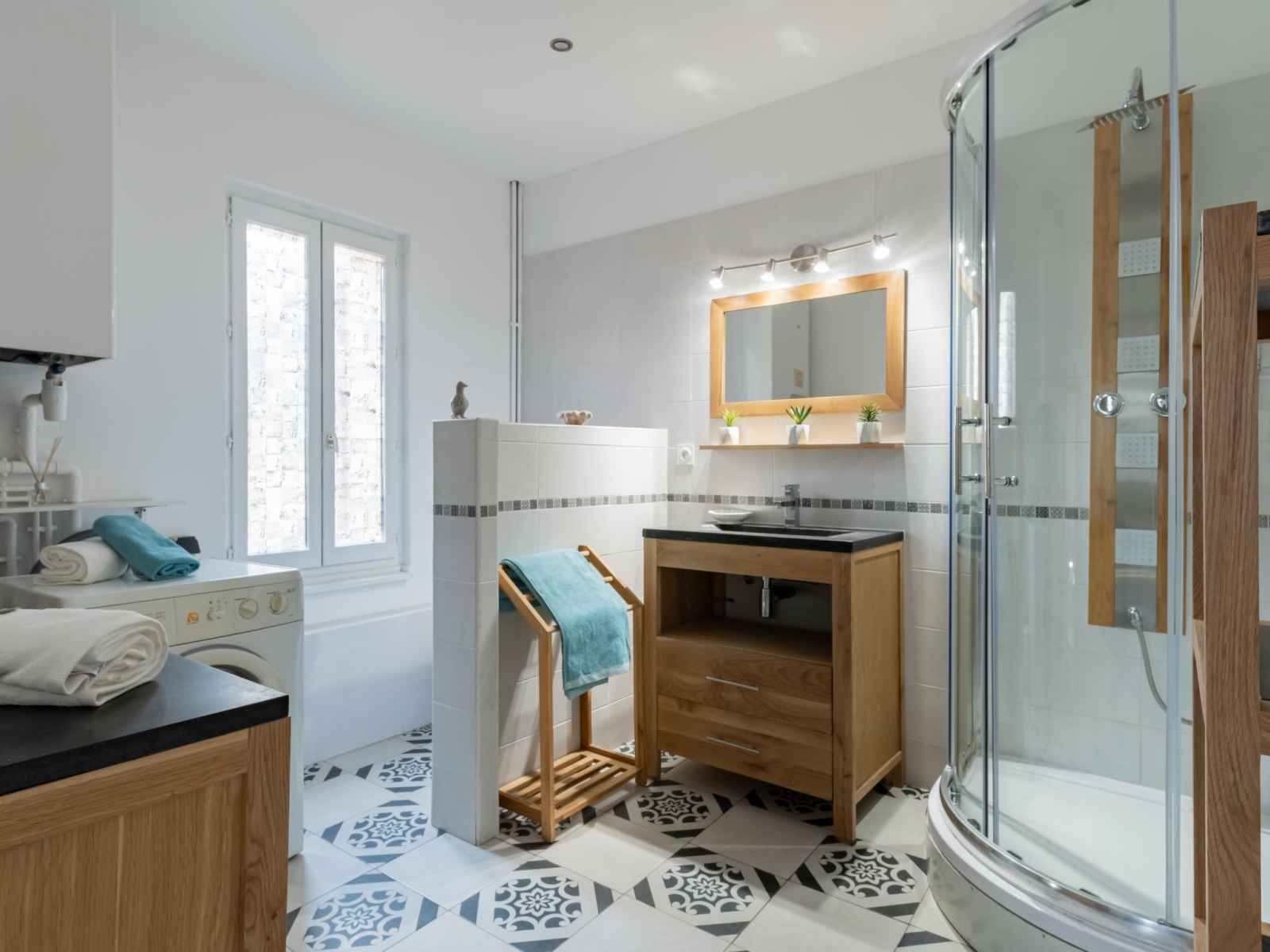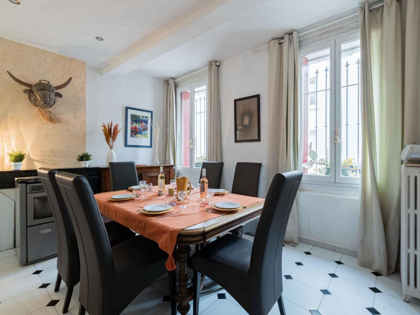 Maison 5 pièces 130 m2 sur 2 niveaux, situation sud-ouest. aménagement plaisant: séjour/salle à manger avec tv (écran plat). sortie sur le jardinet. coin cuisine (four, lave-vaisselle, 3 plaques vitrocéramiques, grille-pain, bouilloire électrique, micro-ondes, congélateur, cafetière électrique, capsules pour machine à café (nespresso)