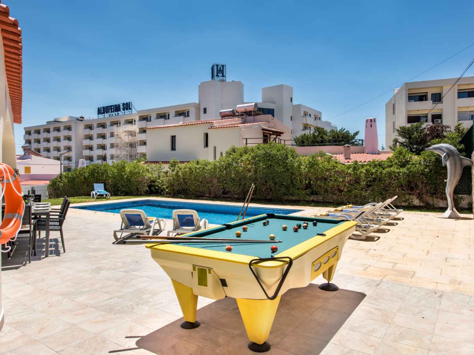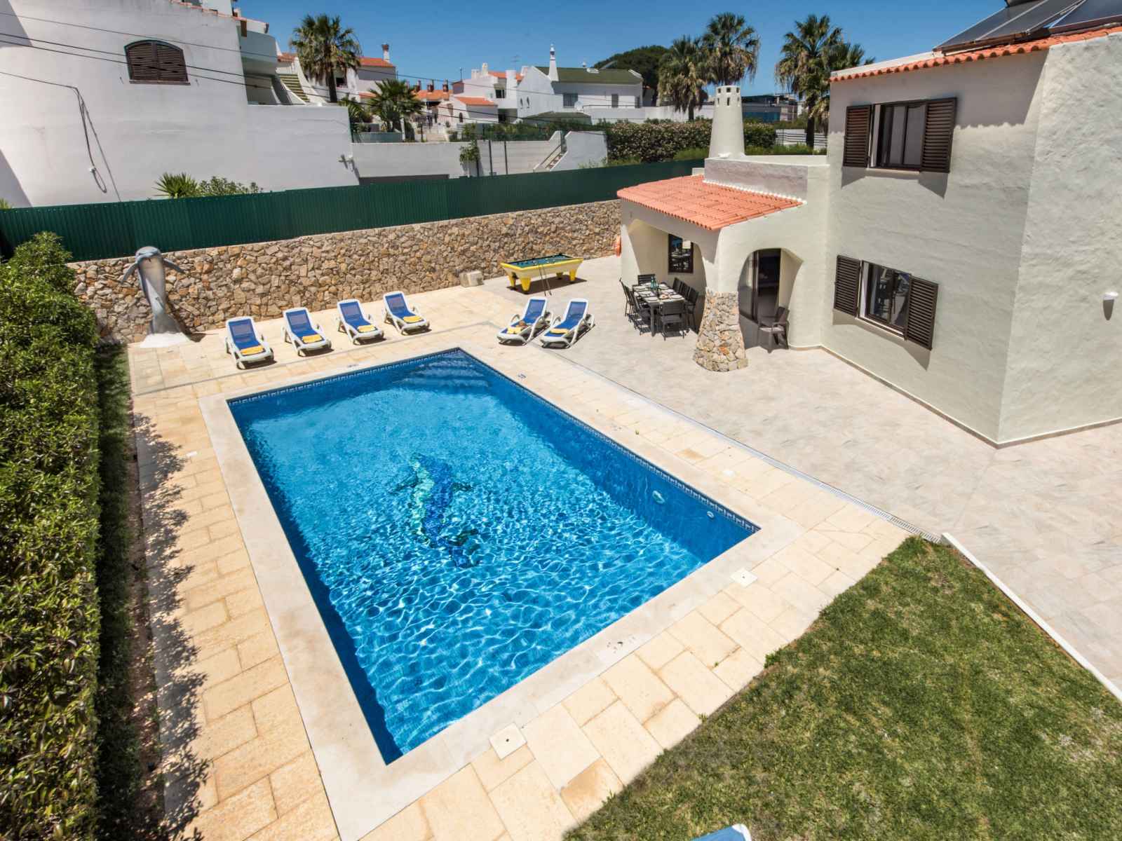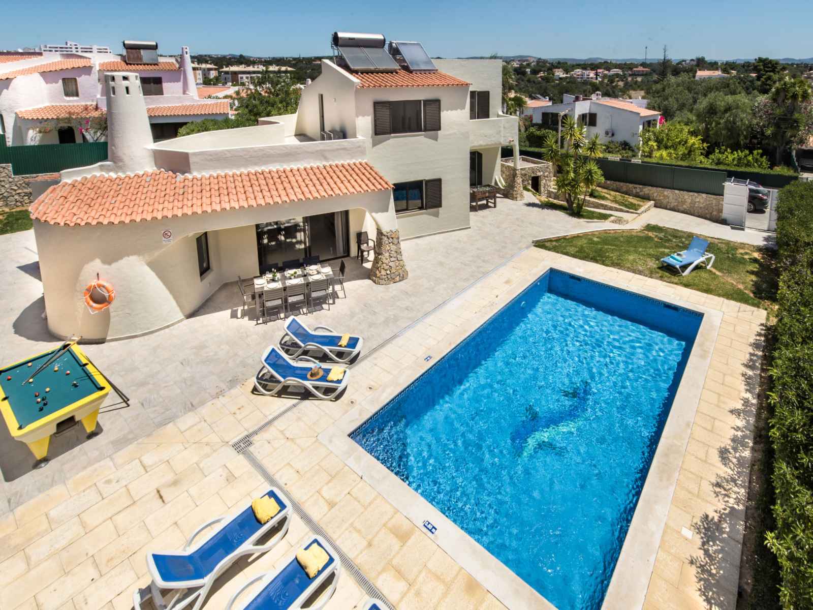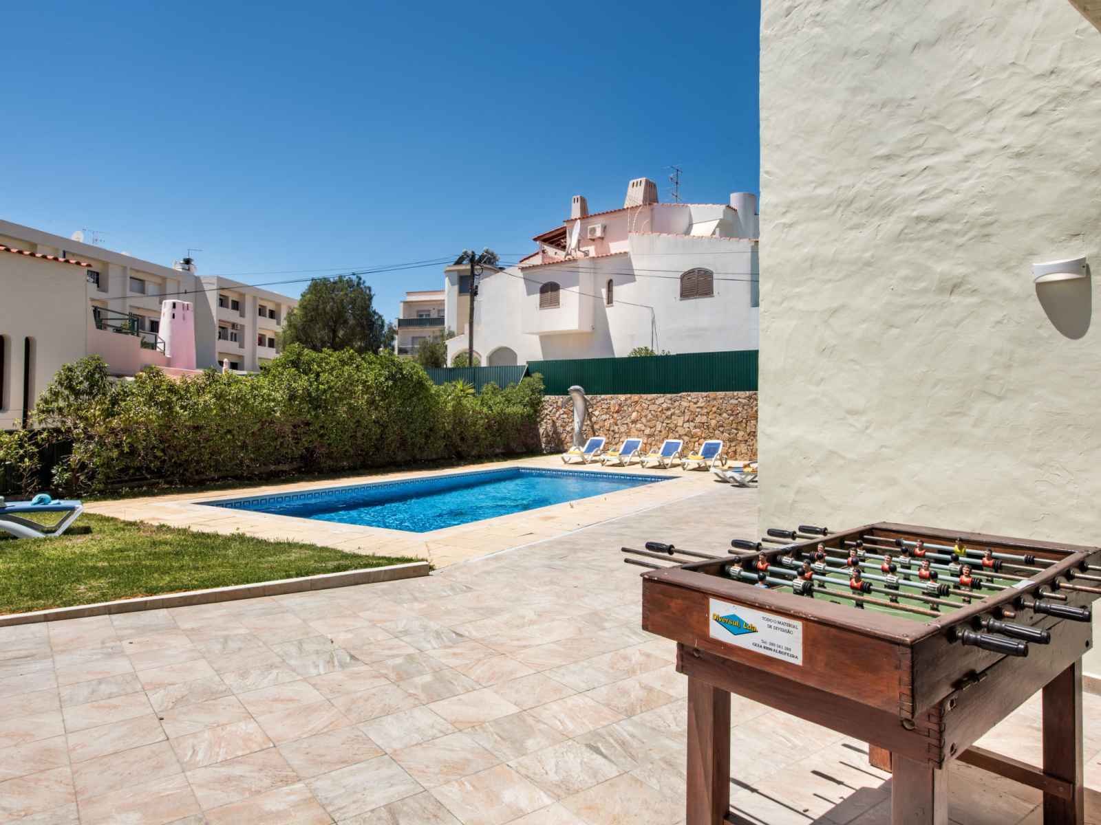 billard, baby foot, air-conditionné, lave-linge. place de parking près de la maison. magasins 800 m, magasin d'alimentation 400 m, supermarché 200 m, centre commercial 1.9 km, restaurant 190 m, bar 700 m, boulangerie, café 400 m, location de bicyclettes 3.4 km, arrêt de bus 290 m, gare ferroviaire 5.6 km, plage de sable "praia da oura" 1.4 km, centre de plongée 6.2 km. marina 5.3 km, terrain de golf (18 trous) 2.2 km, ecole de surf 10.8 km, ecole de voile 16 km, golf miniature 1.6 km, centre équestre 11.1 km. jeux pour enfants 2 km. attractions à proximité: adventure mini golf park 1.6 km, zebra safari tours 1 km, electric karting albufeira marina albuf 6.3 km, algarve shopping in guia 10.2 km, zoomarine 11.7 km, faro airport 39 km. les lacs connus sont facilement accessibles: lagoa dos salgados 14.1 km.