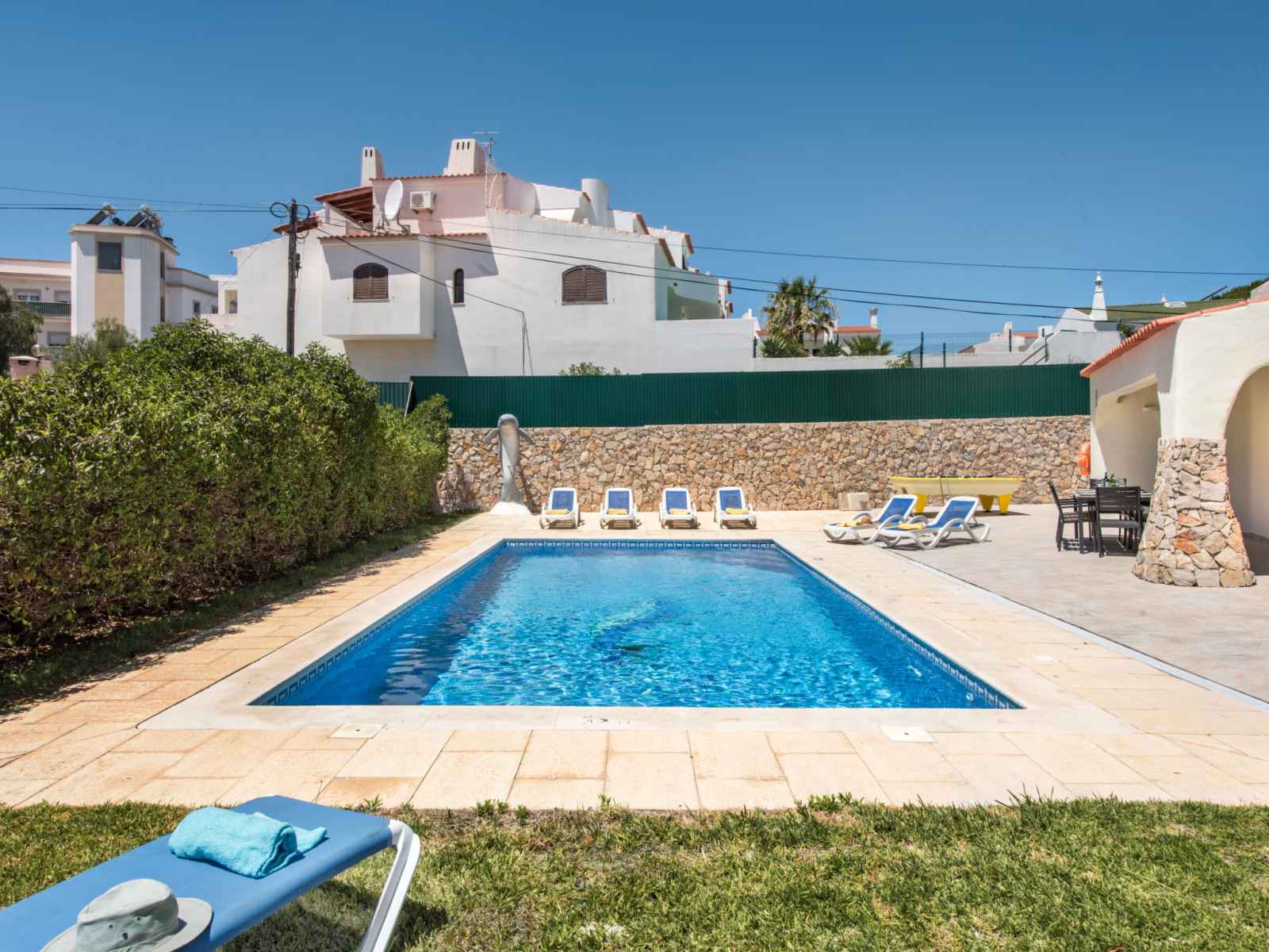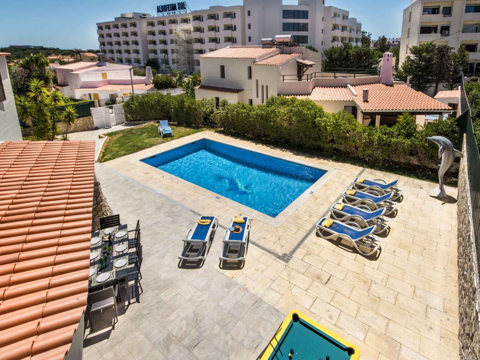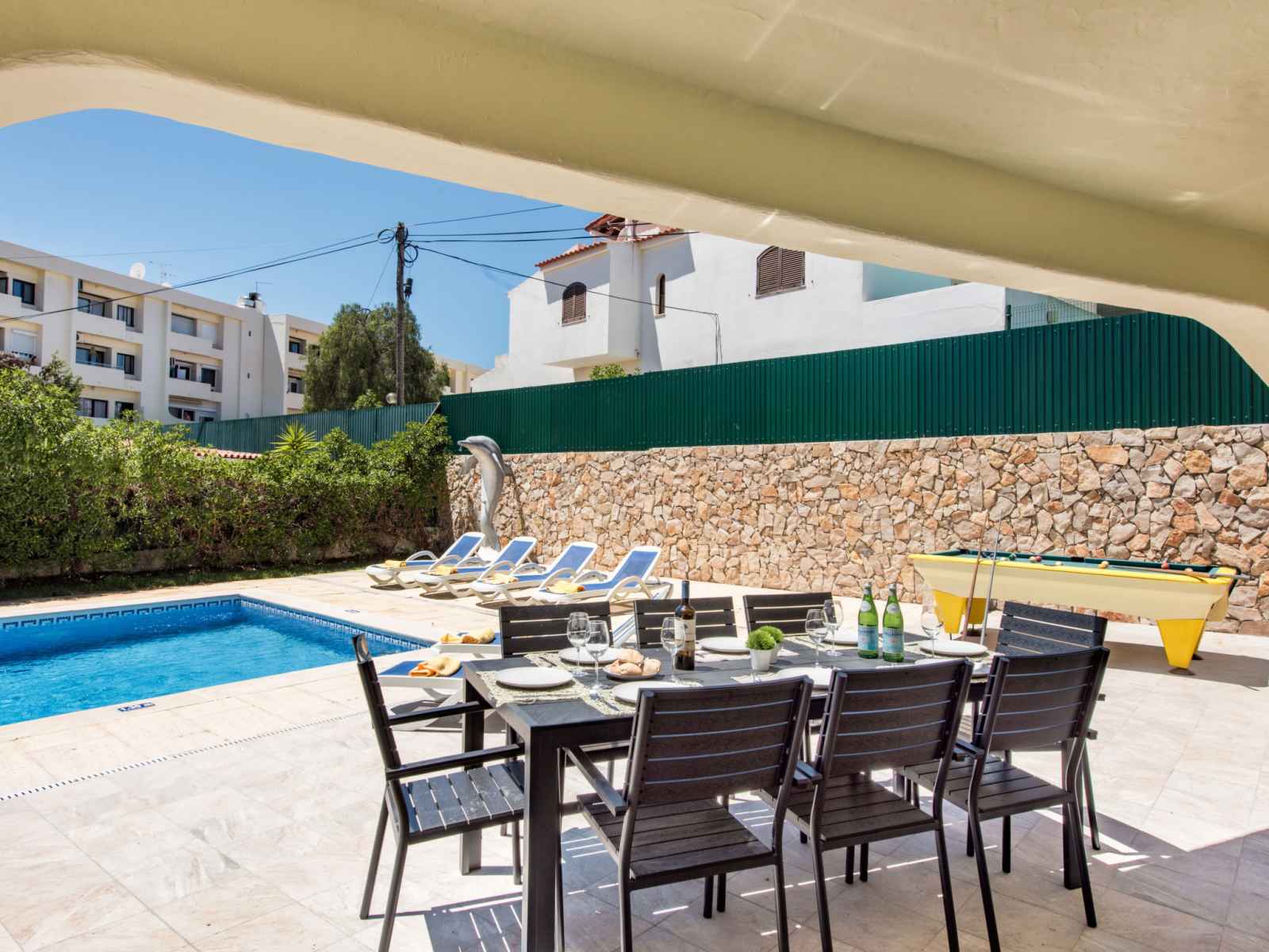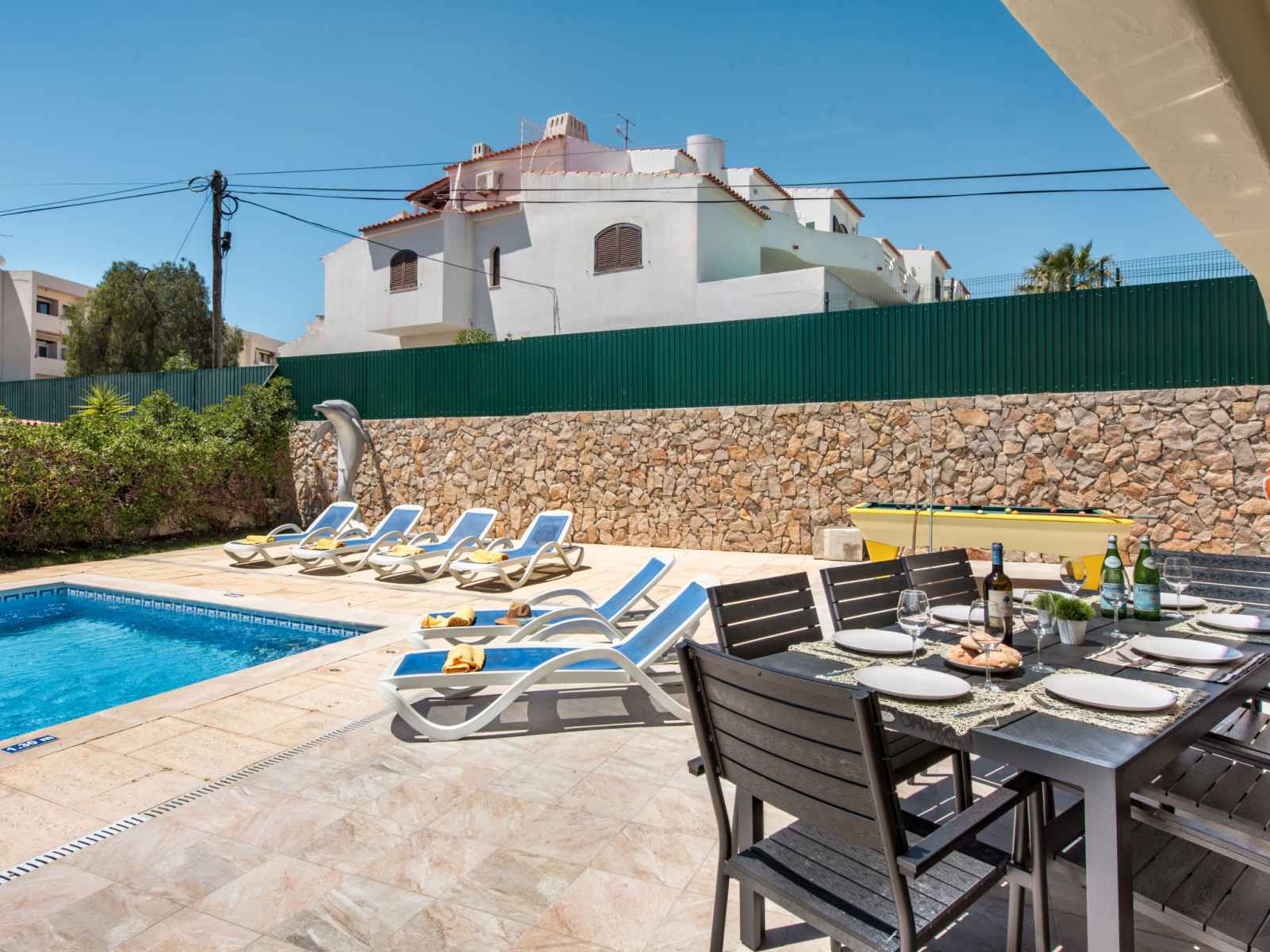 billard, baby foot, air-conditionné, lave-linge. place de parking près de la maison. magasins 800 m, magasin d'alimentation 400 m, supermarché 200 m, centre commercial 1.9 km, restaurant 190 m, bar 700 m, boulangerie, café 400 m, location de bicyclettes 3.4 km, arrêt de bus 290 m, gare ferroviaire 5.6 km, plage de sable "praia da oura" 1.4 km, centre de plongée 6.2 km. marina 5.3 km, terrain de golf (18 trous) 2.2 km, ecole de surf 10.8 km, ecole de voile 16 km, golf miniature 1.6 km, centre équestre 11.1 km. jeux pour enfants 2 km. attractions à proximité: adventure mini golf park 1.6 km, zebra safari tours 1 km, electric karting albufeira marina albuf 6.3 km, algarve shopping in guia 10.2 km, zoomarine 11.7 km, faro airport 39 km. les lacs connus sont facilement accessibles: lagoa dos salgados 14.1 km.